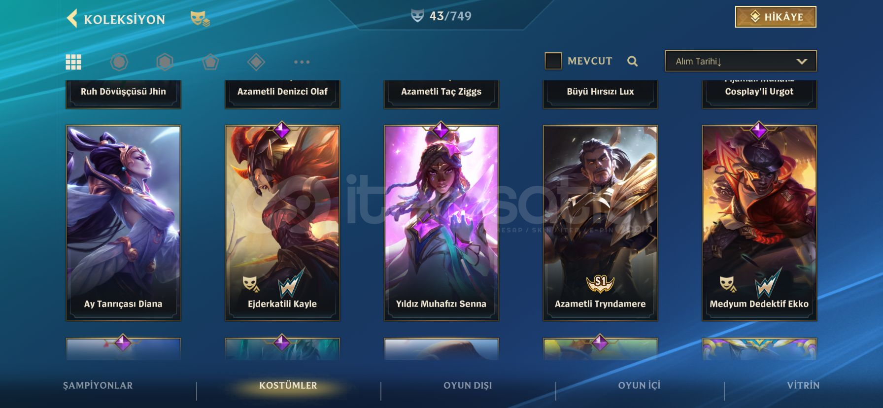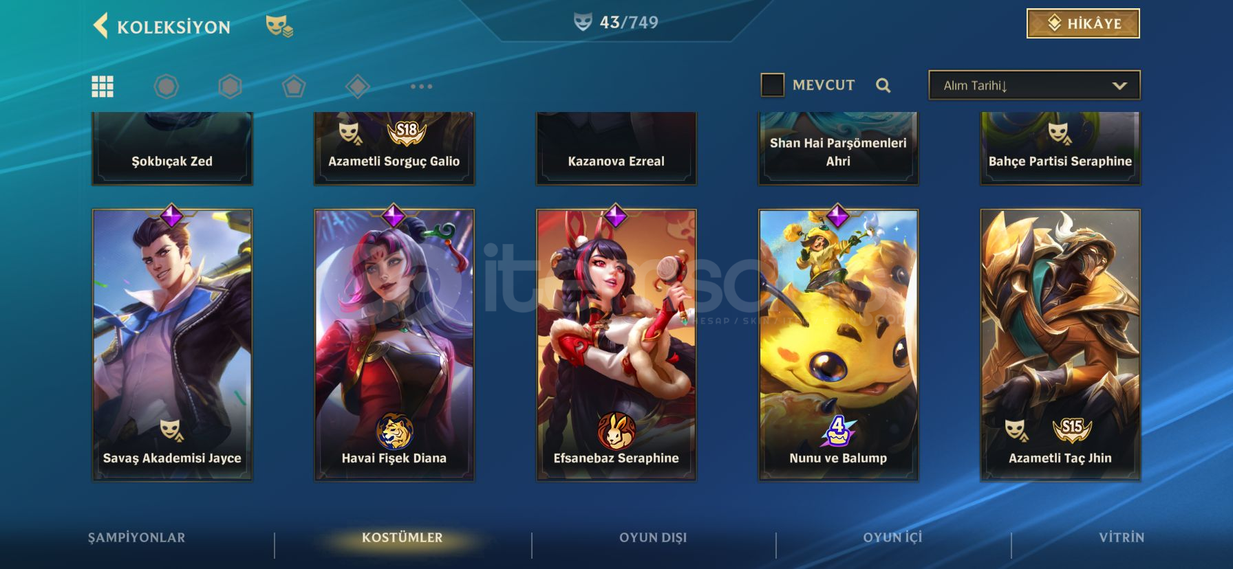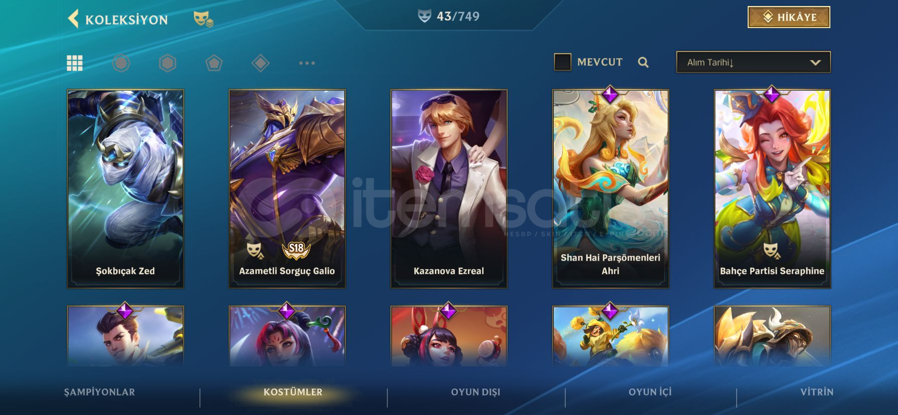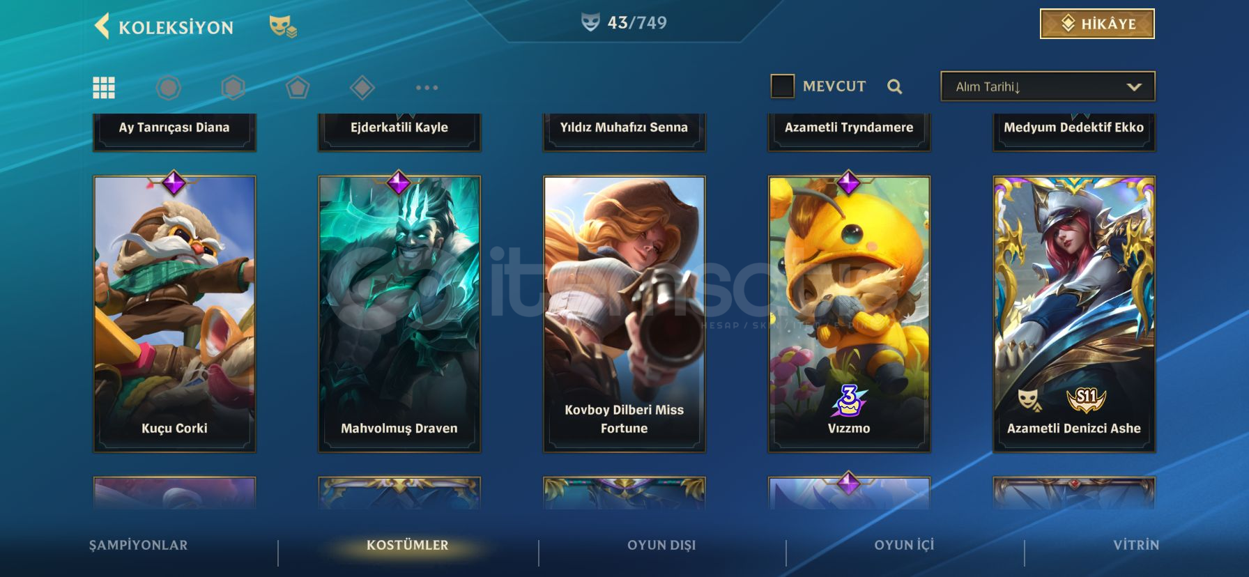 -43 kostüm Dünyalar YIkan Nasus Asi Denizci Garen Azametli Lulu ek olarak vardır-Sezon2 den beri aktif hesap-Master Peak-102 simge vardır-74 ifade-Ufak bir pazarlık payı vardır