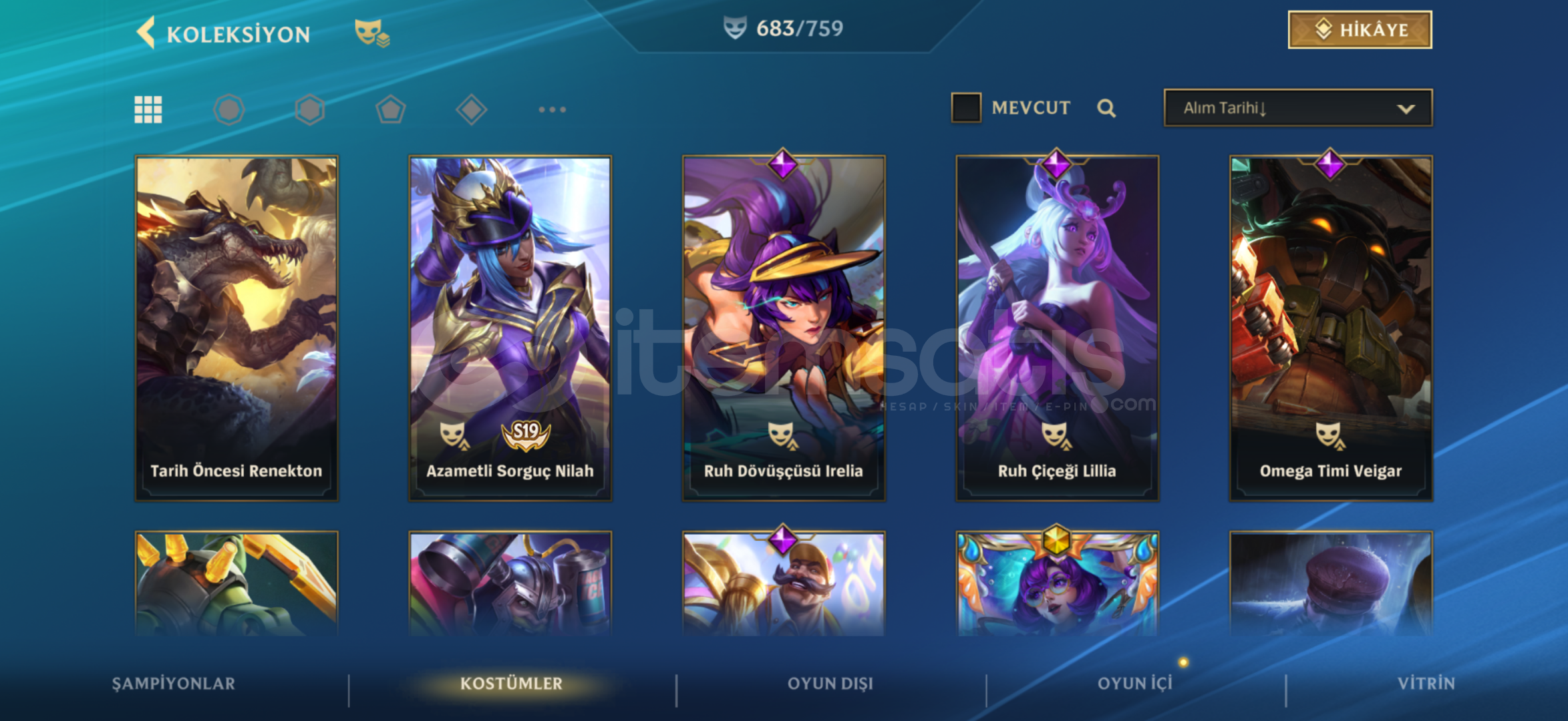685 kostüm vardır başka hesabım olduğu için satıyorum mağazada 1 tane bile kostüm yoktur hepsi alınmıştır tr nin en iyi hesaplarından fiyatta biraz indirim yapılır