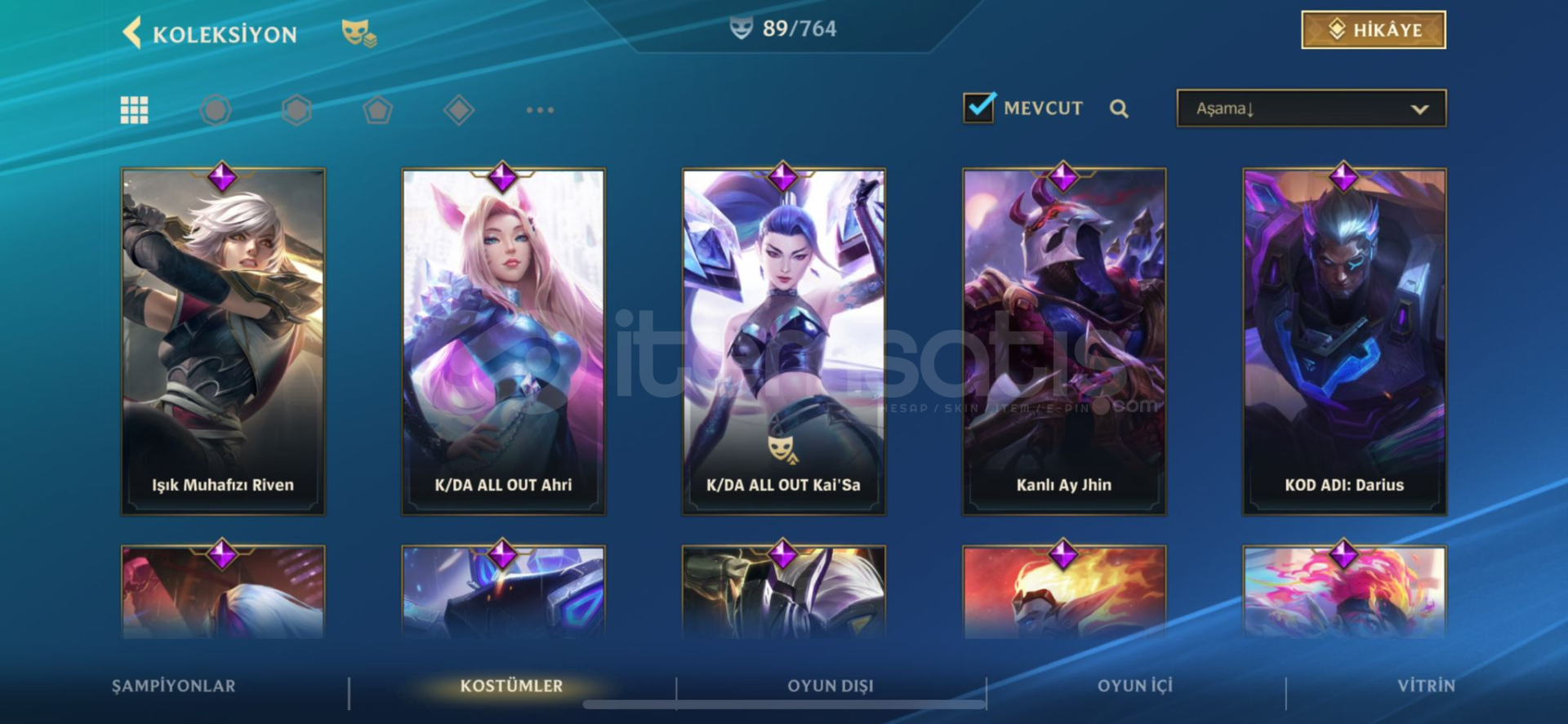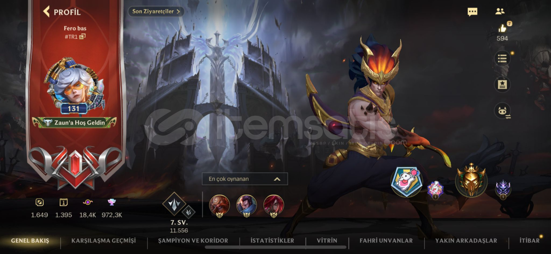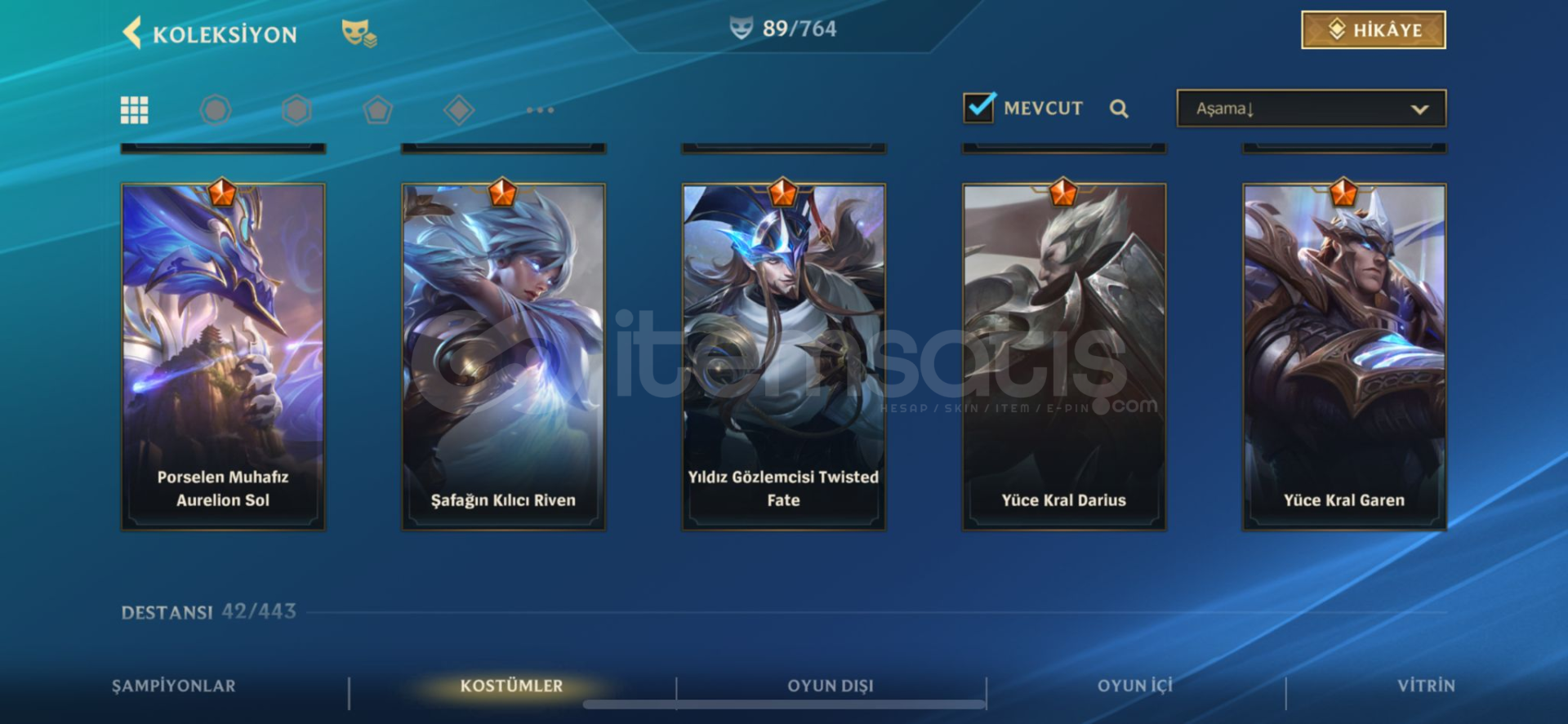 131 Level Elmas görmüş hesap. 3 ihtişamlı, 10 efsanevi, 42 destansı, 34 diğer kostüm var. 27 champ açık değil. 11.000 puan seviye 5 yıldız bağı. Gökboynuz hediyesi kalan gün 277.