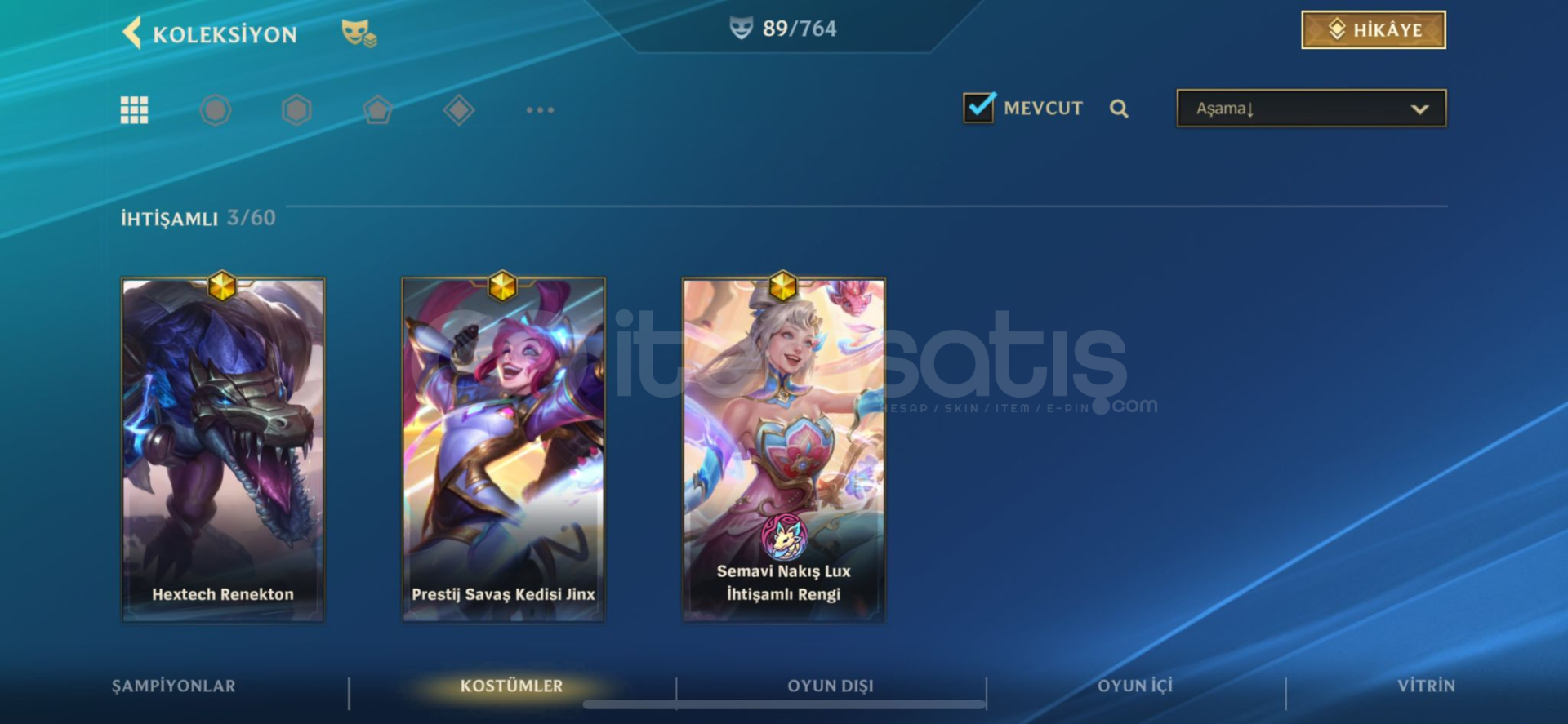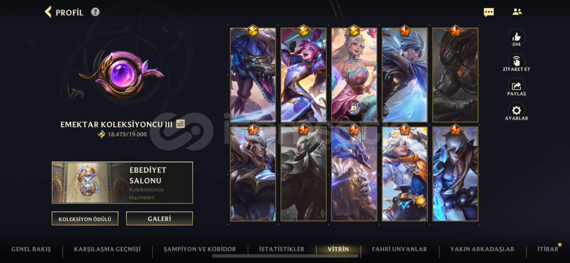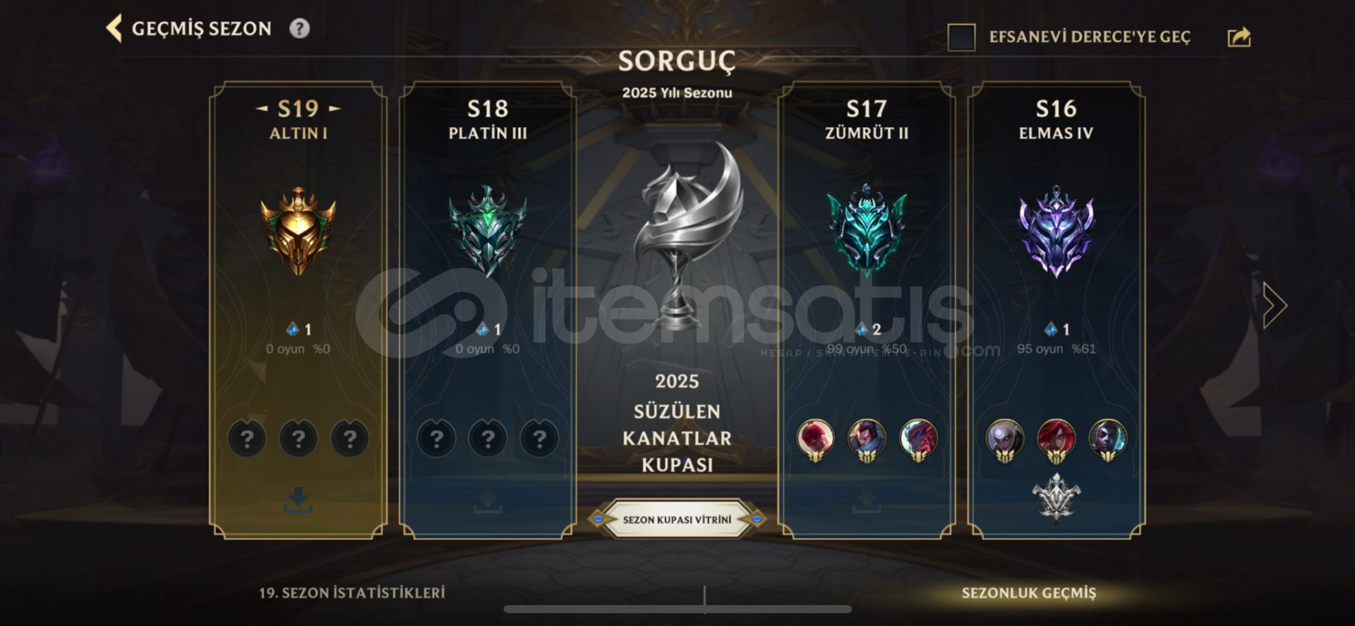 131 Level Elmas görmüş hesap. 3 ihtişamlı, 10 efsanevi, 42 destansı, 34 diğer kostüm var. 27 champ açık değil. 11.000 puan seviye 5 yıldız bağı. Gökboynuz hediyesi kalan gün 277.