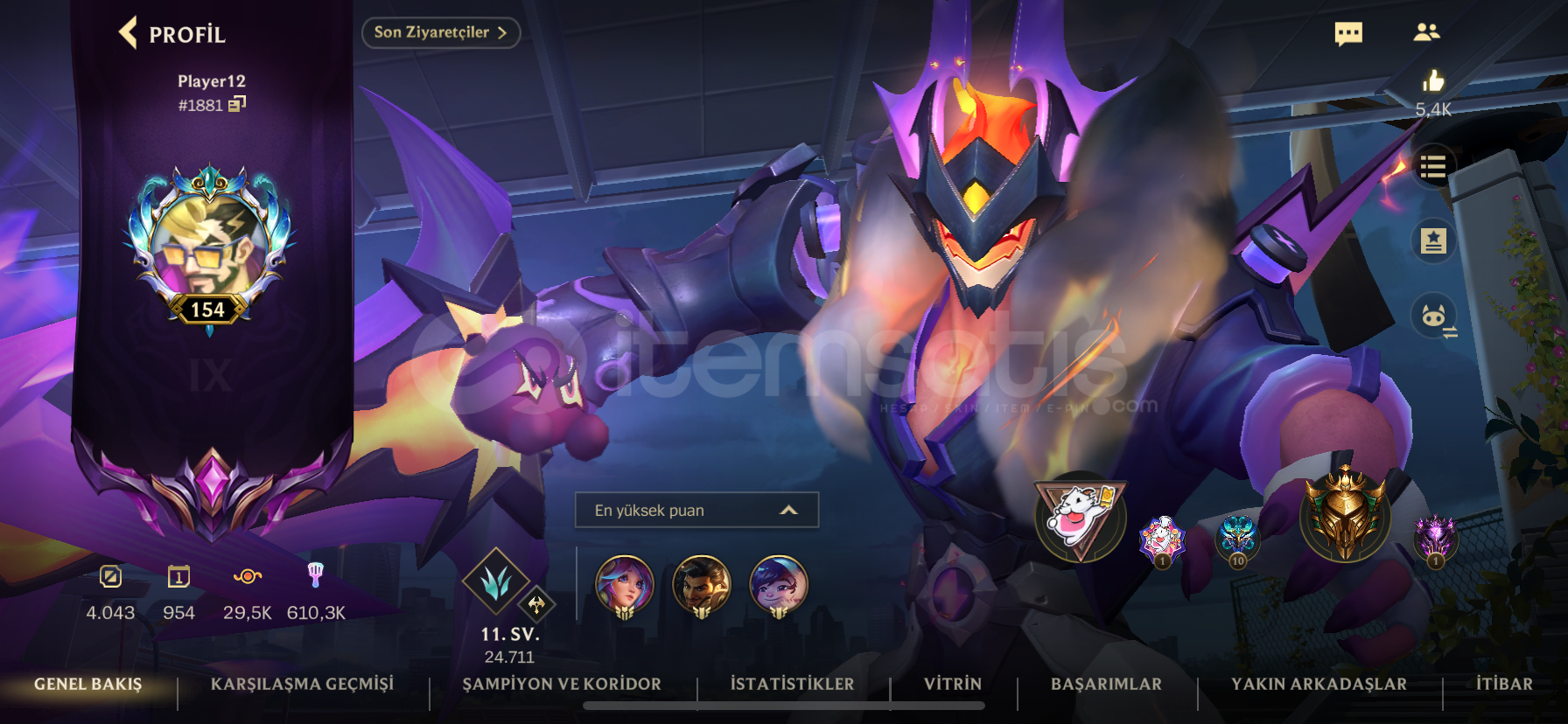 3 Hareketli Mini Profil Mevcuttur.Riot Games hesabına bağlı Valorant hesabı bulunmaktadır. Hesapta Özel Harekat Phantom ve Yıldız Belası Vandal mevcuttur.