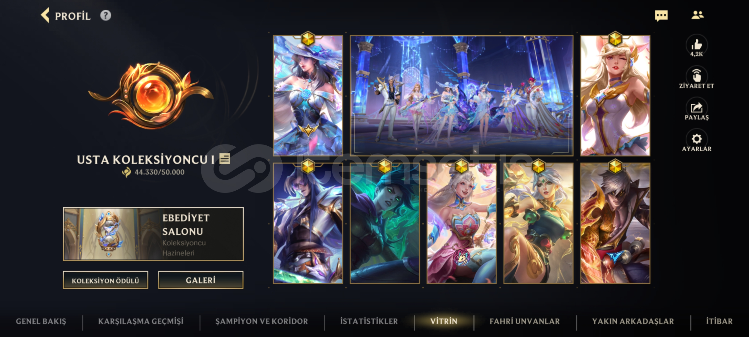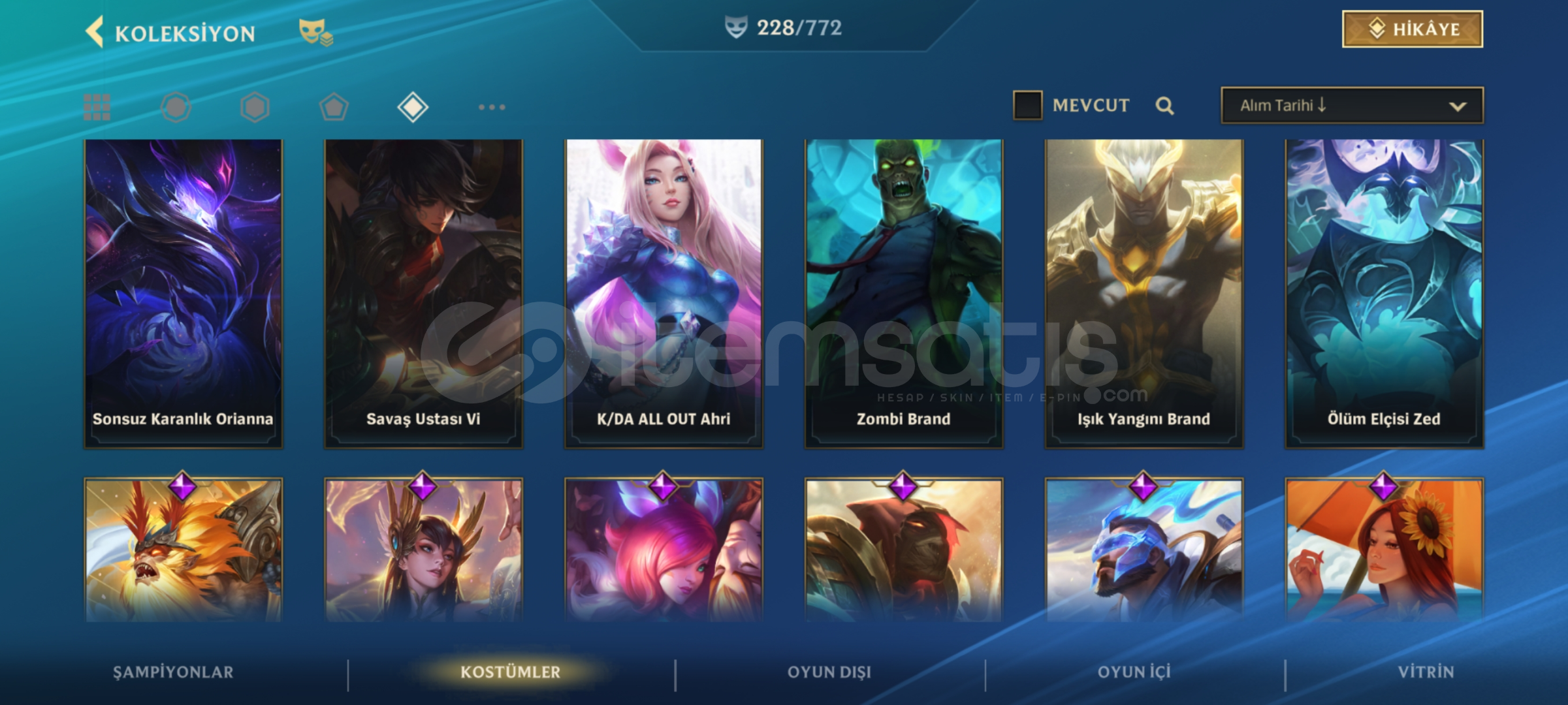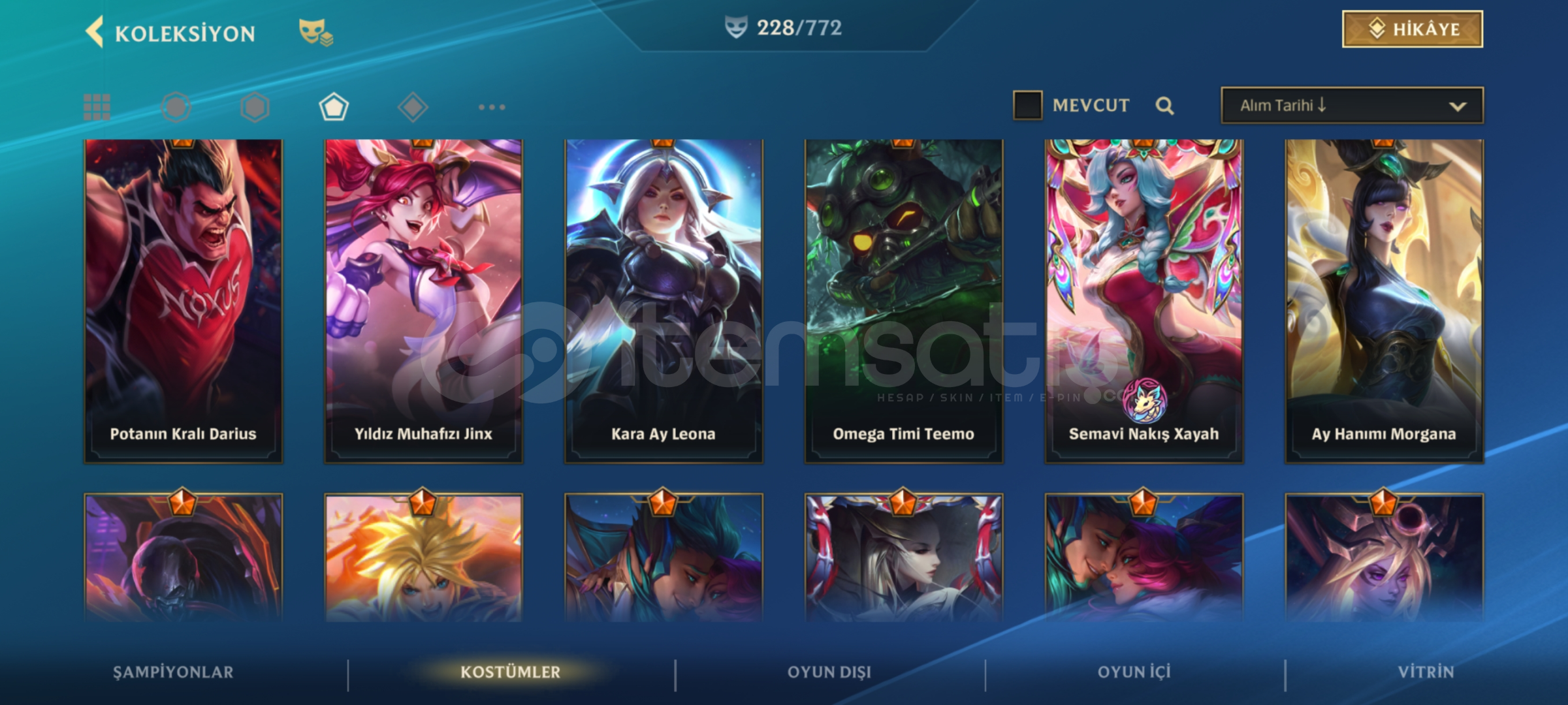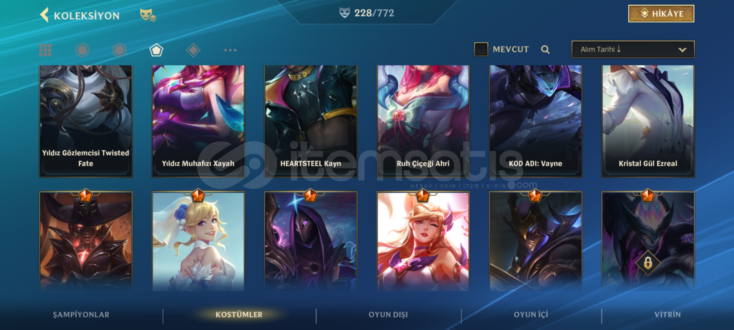 228 tane kostüm:9 prestij 35 efsanevi134 epik 50 normal Bütün kahramanlar açıktır ,65k mavi öz bulunmaktadır...