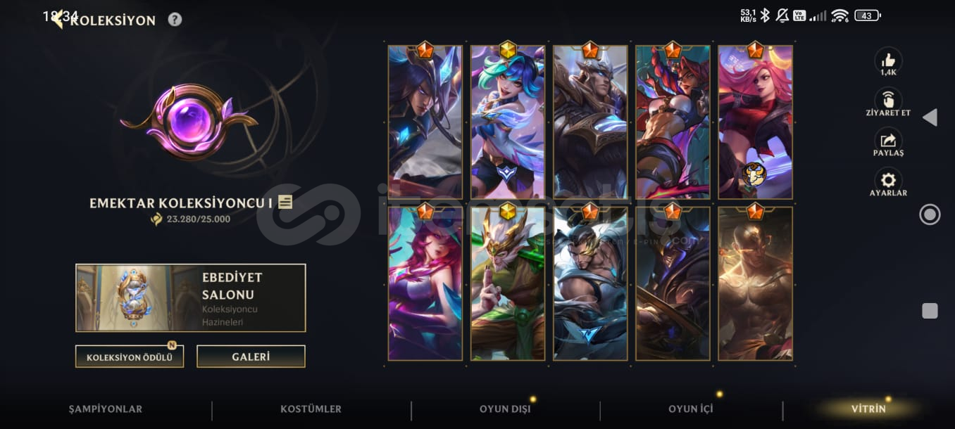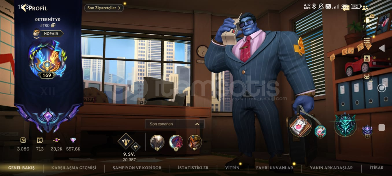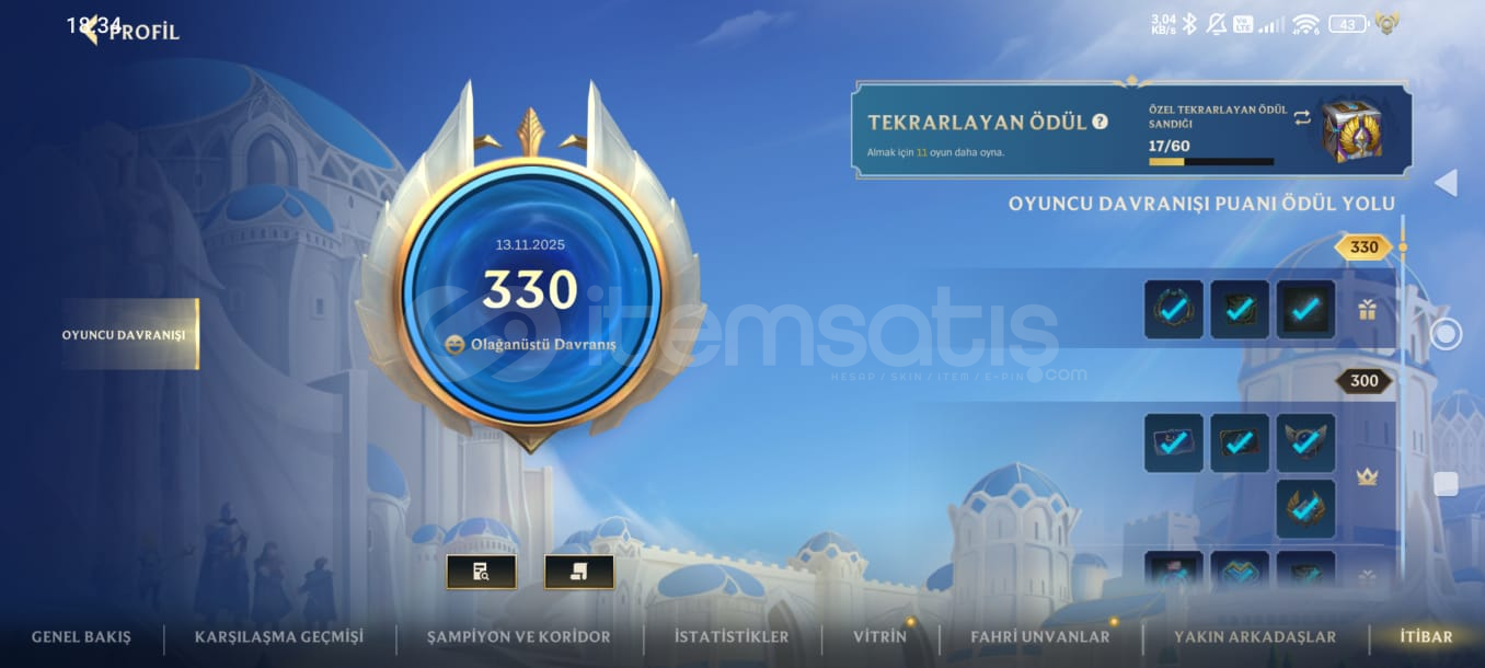 Merhaba hesap emek verilmiş bir hesap tamamen saygı davranışları içerisinde kullanılmıştır görseller de gözüküyor zaten.hesabın daha detaylı bilgisini almak isterseniz discordan bilgi verebilirim5 defa elmas olmuştur Hesapta toplam 121 kostüm 2 prestejli 25 efsanevi 59 epic 34 sıradan toplam 121 kostüm vardır.60k üzeri mavi öz 61k dereceli jetonu 2000 + yoğunlaşmı&#...