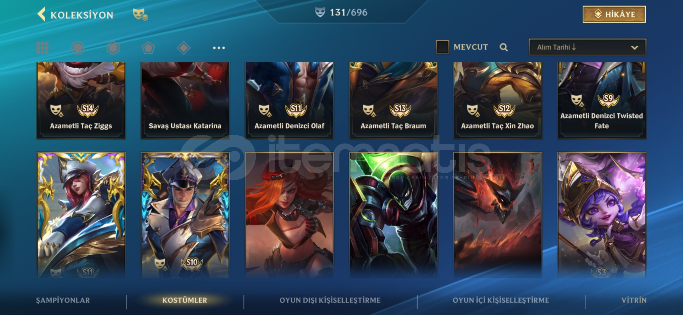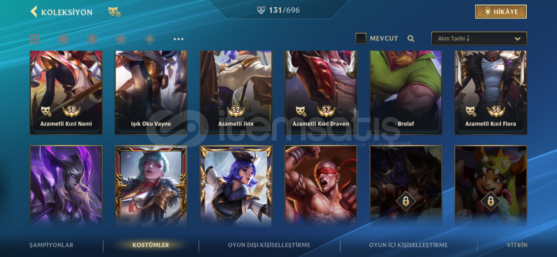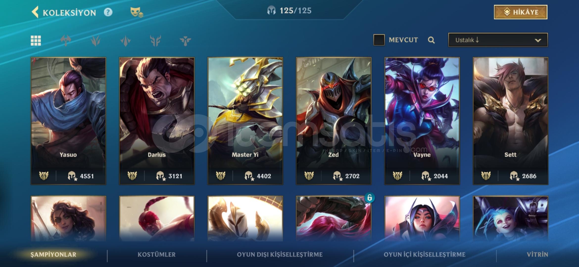 Hesap şu anda Ustalık 21 damgadadir tam mainlenecek hesap 134 skin ve bir cok kapalı kostüm vardır detaylı bilgi için yazabilirsiniz fiyat sabittir