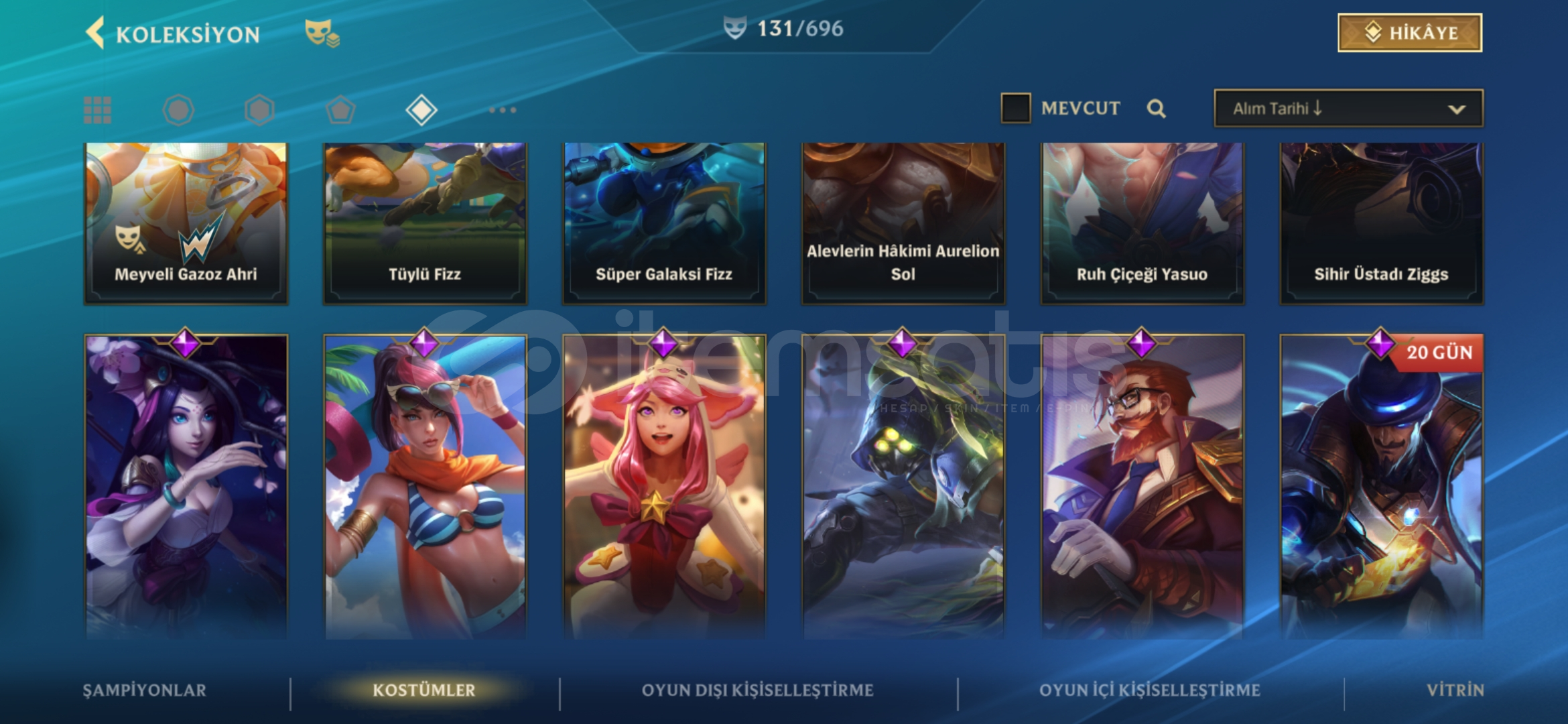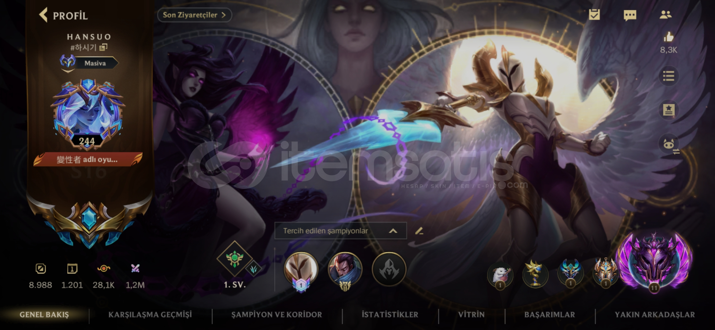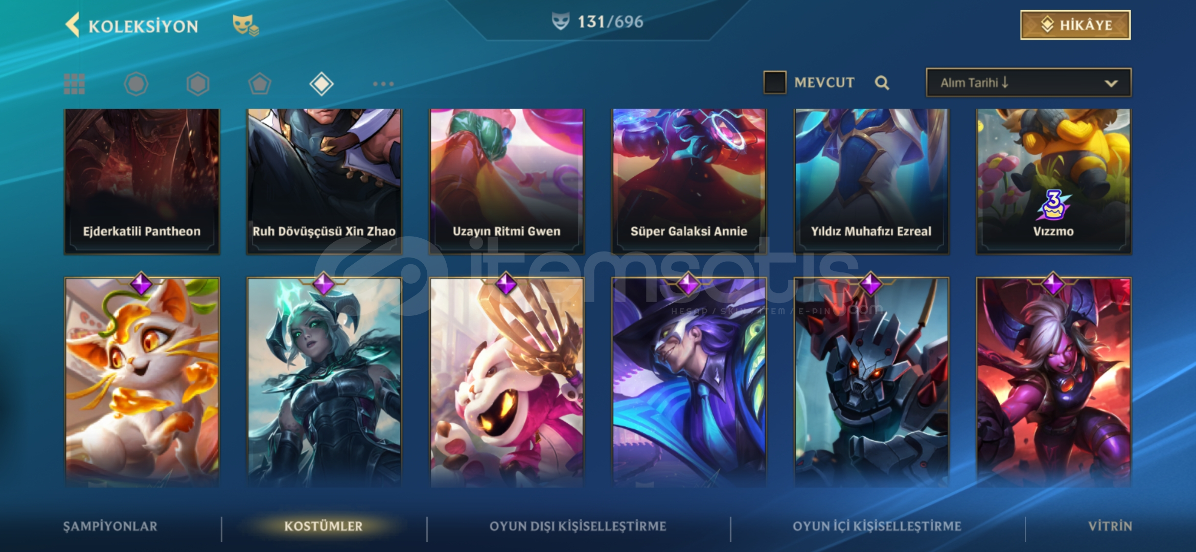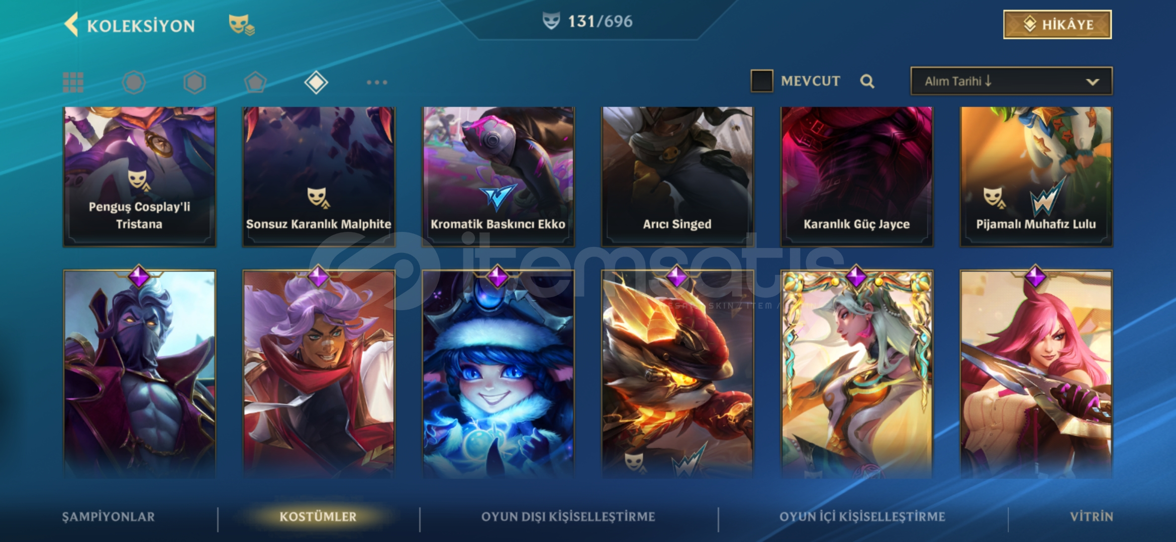 Hesap şu anda Ustalık 21 damgadadir tam mainlenecek hesap 134 skin ve bir cok kapalı kostüm vardır detaylı bilgi için yazabilirsiniz fiyat sabittir