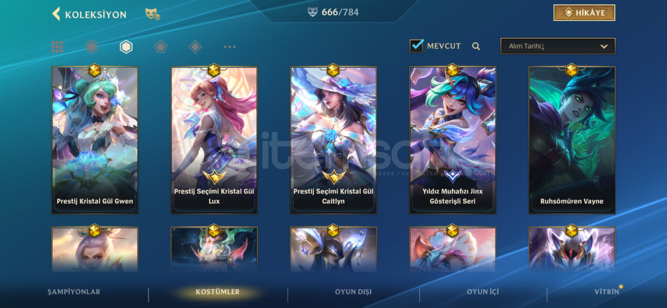 666 kostüm 120000 koleksiyon puanıhareketli profil simgeleri hareketli çerçeveler bütün ifadeler açık ayrıca league of Legends PC hesabı da bağlı