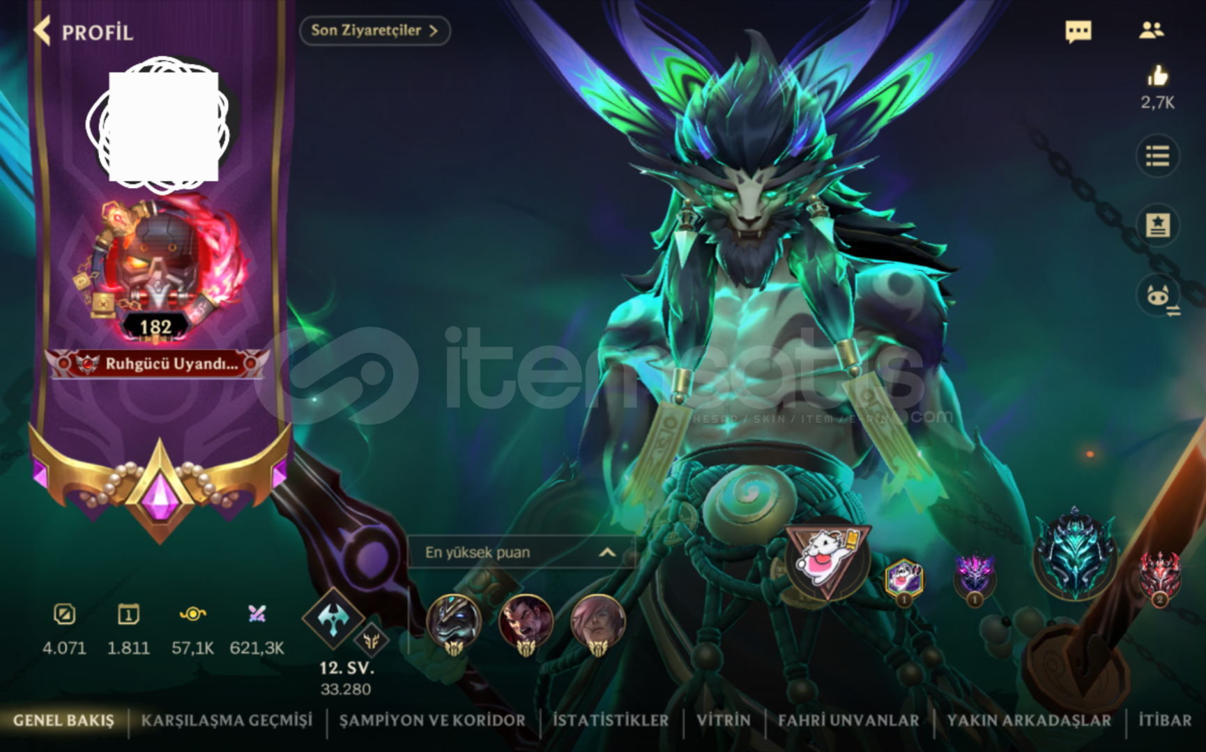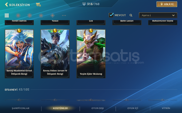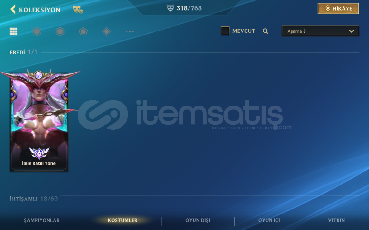 Selamun aleyküm, hesaba ciddi emek sarf ettim ve şimdi satıyorum. Fotoğraflardan da görebileceğiniz üzere en değerli kostümlerin çoğu bulunmaktadır. Hesapta benim wild rift oyunundaki en beğendiğim kostüm olan Üstün Birlik Zed kostümü de vardır. Şahsım adına konuşuyorum gitmesine üzüldüğüm tek kostüm bu, hem satın alınamıyor hem de...