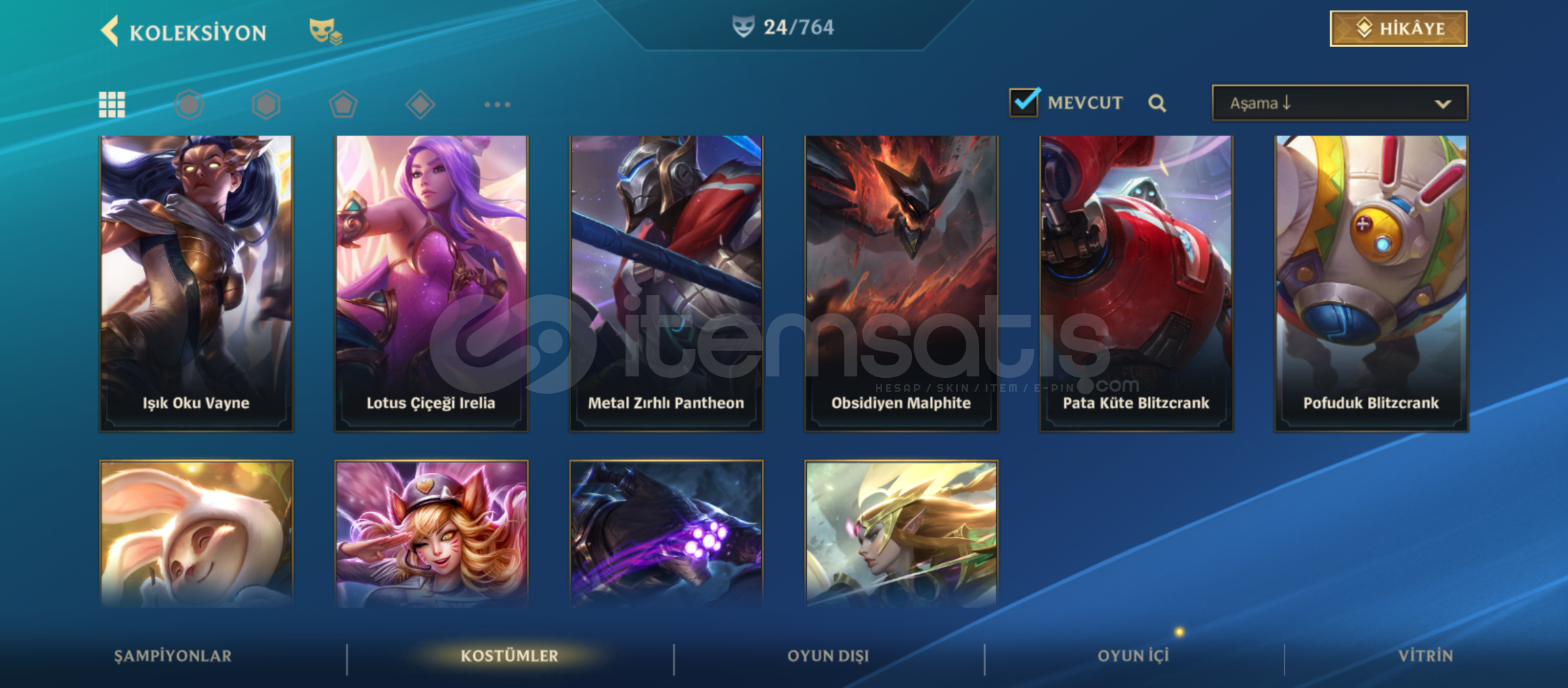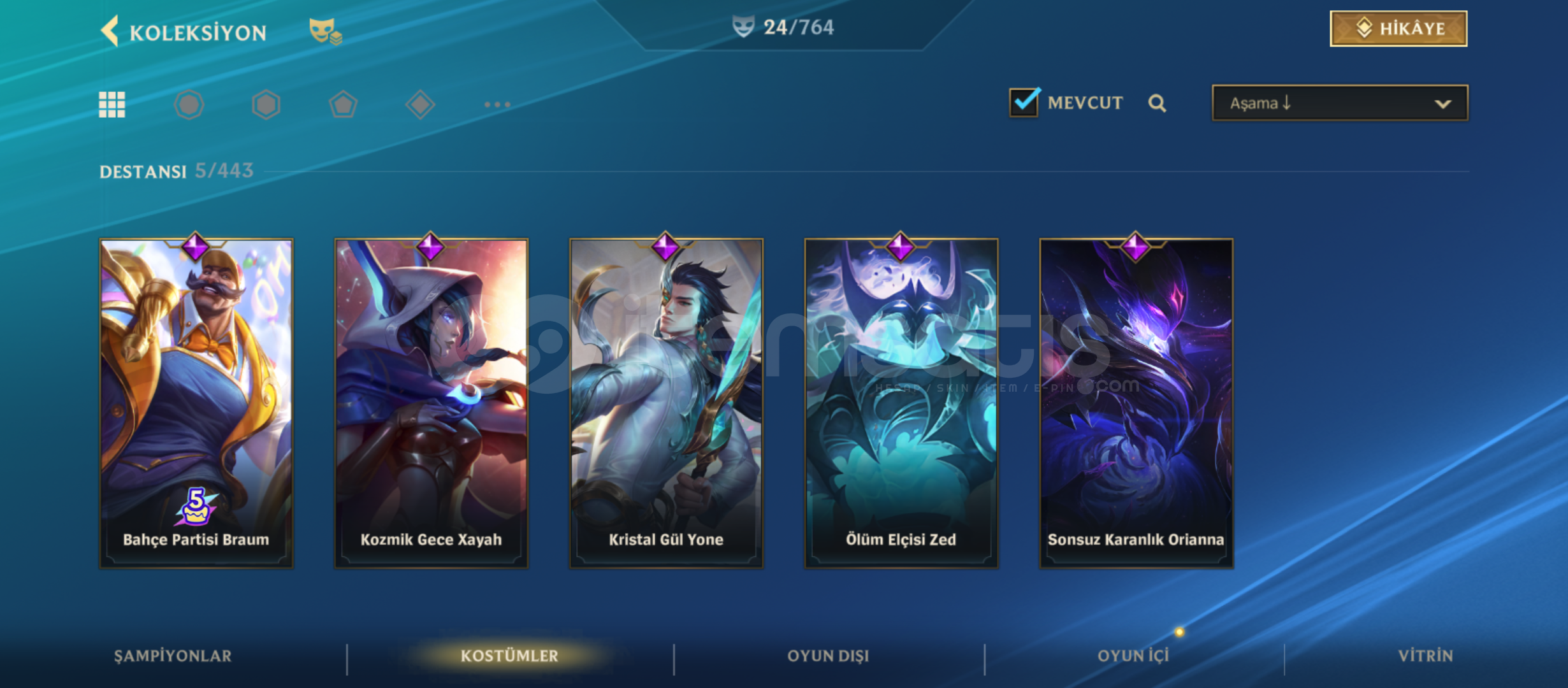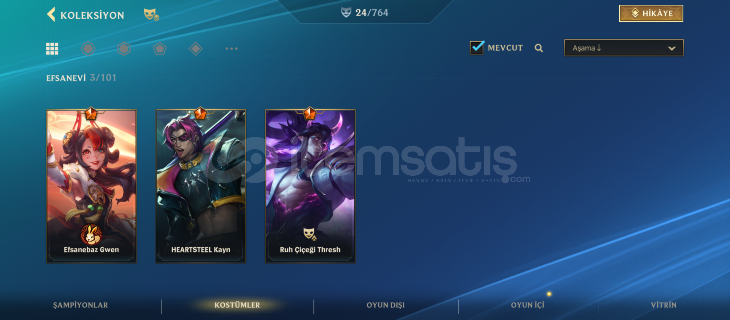 HEARTHSTEEL KAYN-RUH ÇİÇEĞİ THRESH-EFSANEBAZ GWEN -KRİSTAL GÜL YONE-KOZMİK GECE XAYAH- ÖLÜM ELÇİSİ ZED-SONSUZ KARANLİK ORİANNA GİBİ GÜZEL KOSTÜMLER VAR SUİKASTCİ MASTER Yİ DENİZCİ GAREN AZAMETLİ GALİO- TWİSTED-NİLAH GİBİ KOSTUMLERDE VAR KALİGRAF BASE ANİMASYONU VAR