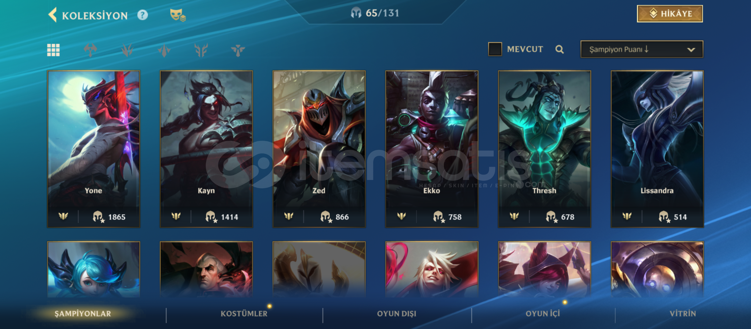HEARTHSTEEL KAYN-RUH ÇİÇEĞİ THRESH-EFSANEBAZ GWEN -KRİSTAL GÜL YONE-KOZMİK GECE XAYAH- ÖLÜM ELÇİSİ ZED-SONSUZ KARANLİK ORİANNA GİBİ GÜZEL KOSTÜMLER VAR SUİKASTCİ MASTER Yİ DENİZCİ GAREN AZAMETLİ GALİO- TWİSTED-NİLAH GİBİ KOSTUMLERDE VAR KALİGRAF BASE ANİMASYONU VAR65 SEVİYE FALAN 1900 YONESİ VAR ZÜMRÜT HESAP --OY...