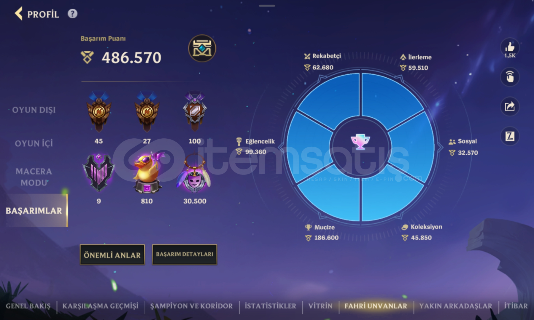 Kendi hesabım oyunu bıraktığım için satıyorum. Değeri neyse onu yazdım. 5 yıllık hesap. Oynadığım sezonlar ustalıkta bitirdim.