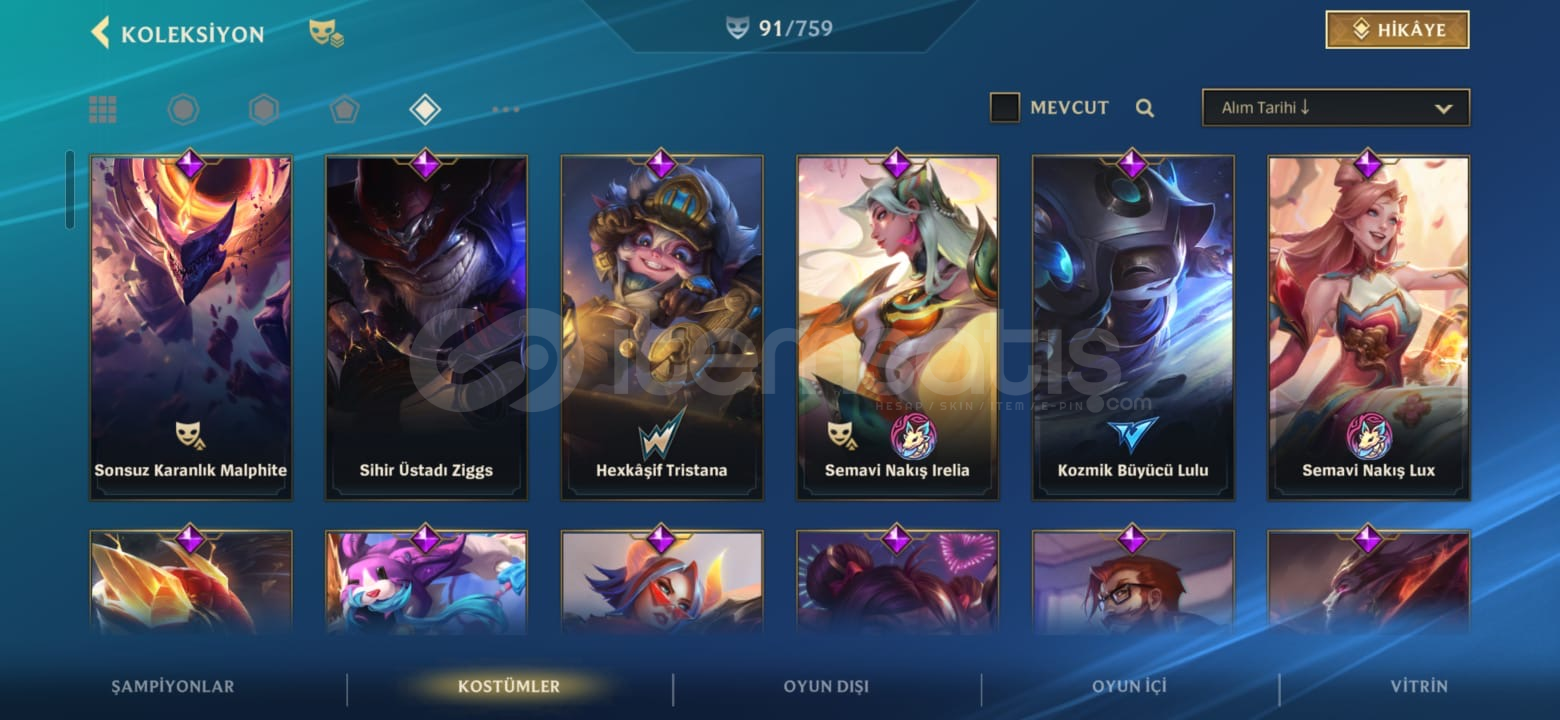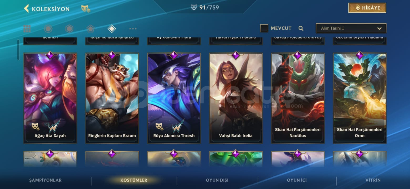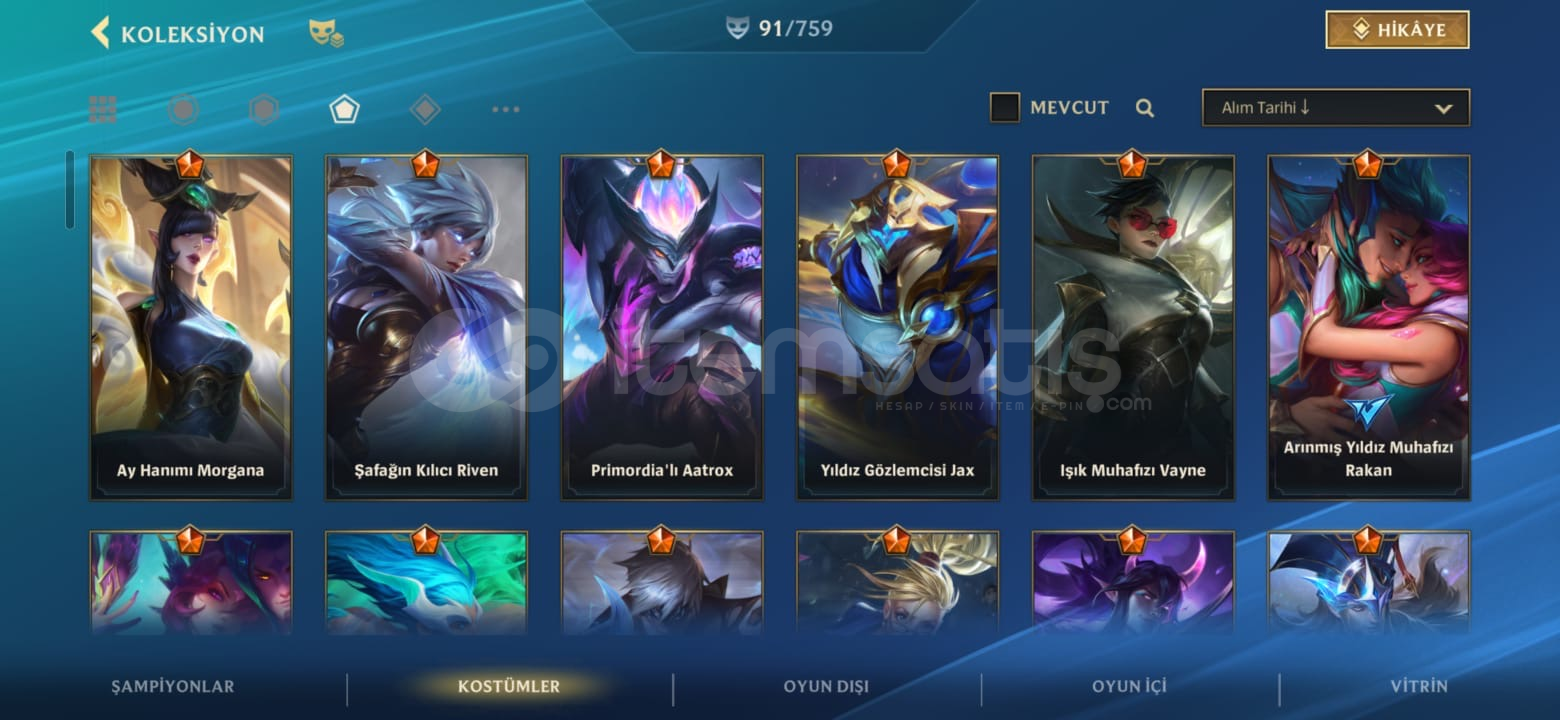 Hesap supportlara özel hataha morgana özeli bir hesaptır.genelde suppoart karakterler barındırır. Yüksek elolarda sabit oyuncular tarafından tanınır.hesapta skil kostümler aktiftir.bir çok kostüm koleksiyonu tamamlanmıştırkül şovalye pyke set animasyonlupresjtij ashe set animasyonluVe oyunda satılmayan bir çok kostümleri mevcuttur hesaba kendim 35.000 tl yatırım gerçekle&...