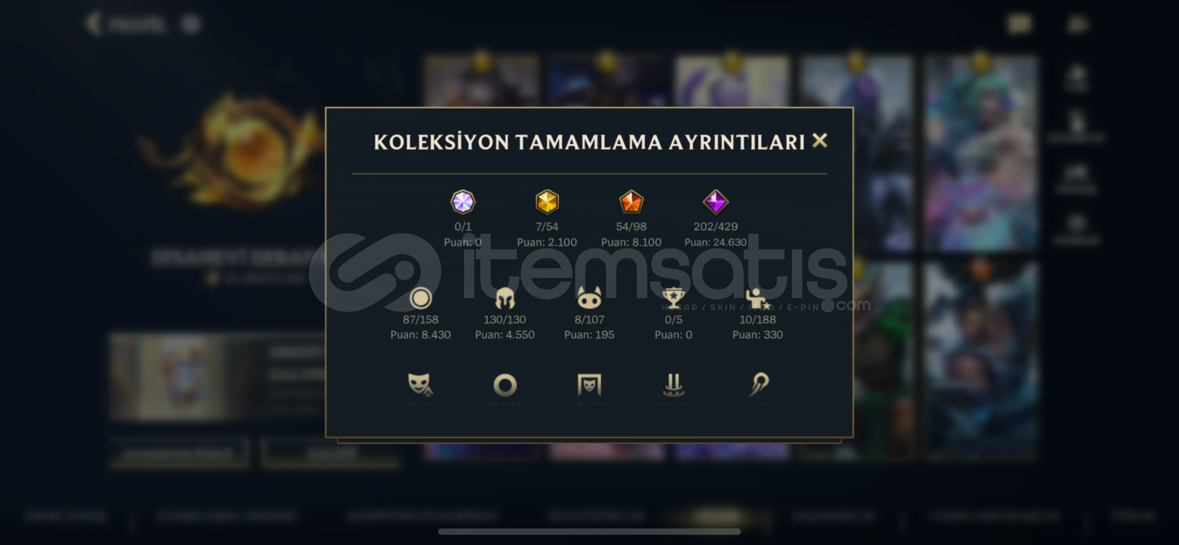 351 kostümlü hesap 56.8 k koleksiyon puanı