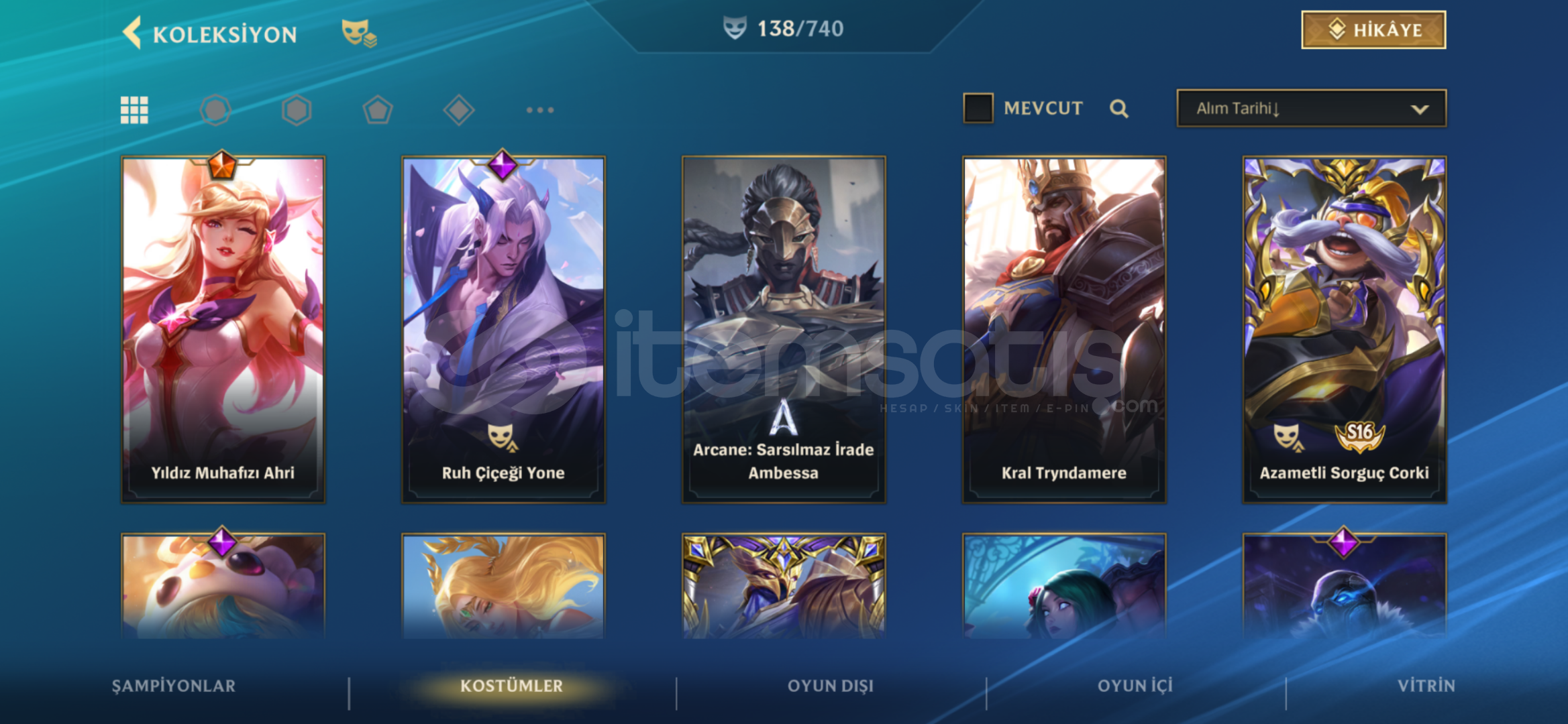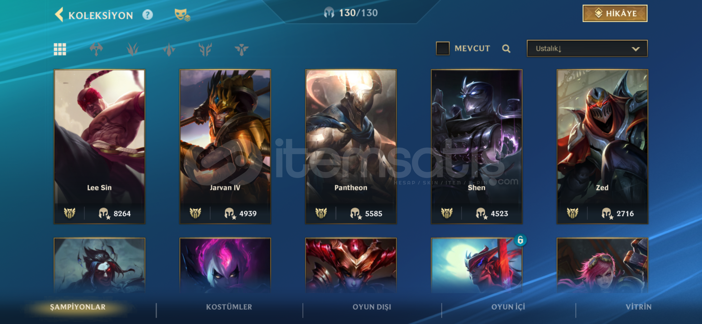 138 ADET KOSTÜM MEVCUT BÜTÜN HEROLAR AÇIKTIR İLK SAHİBİYİM HESABIN GM 50 DAMGADA ŞUAN CİDDİ ALICILAR YAZARSA SEVİNİRİM 5K LEE SİN MEVCUT.