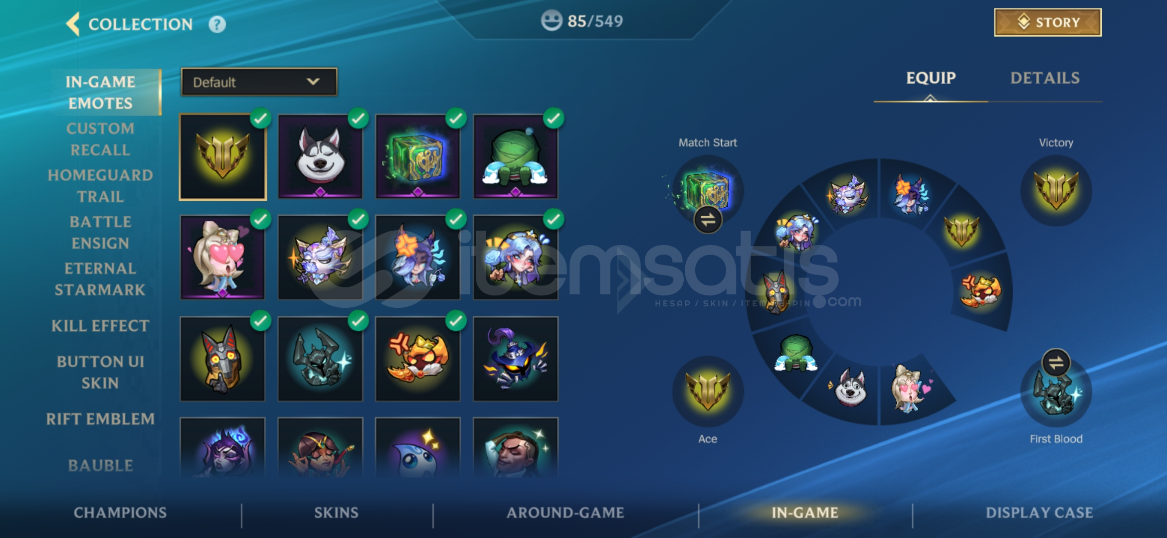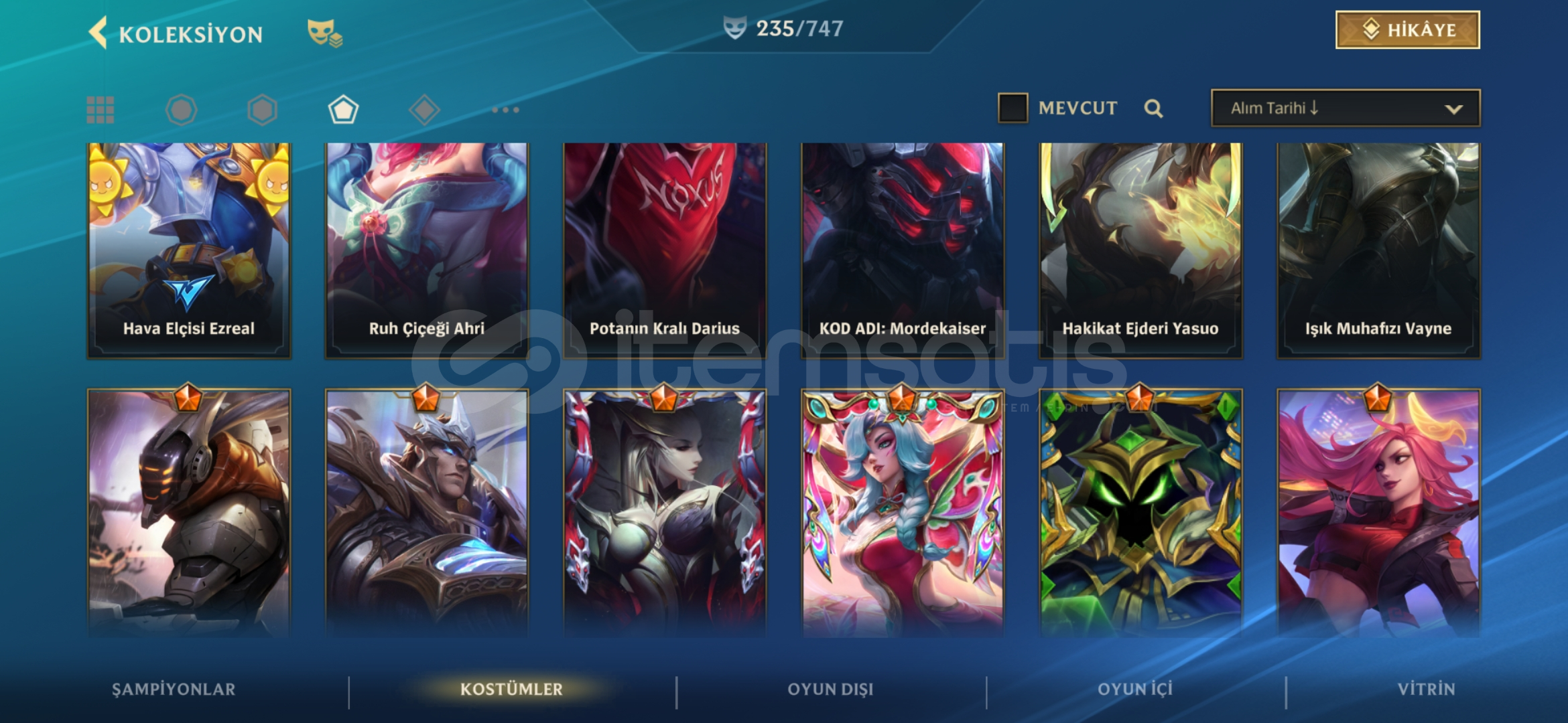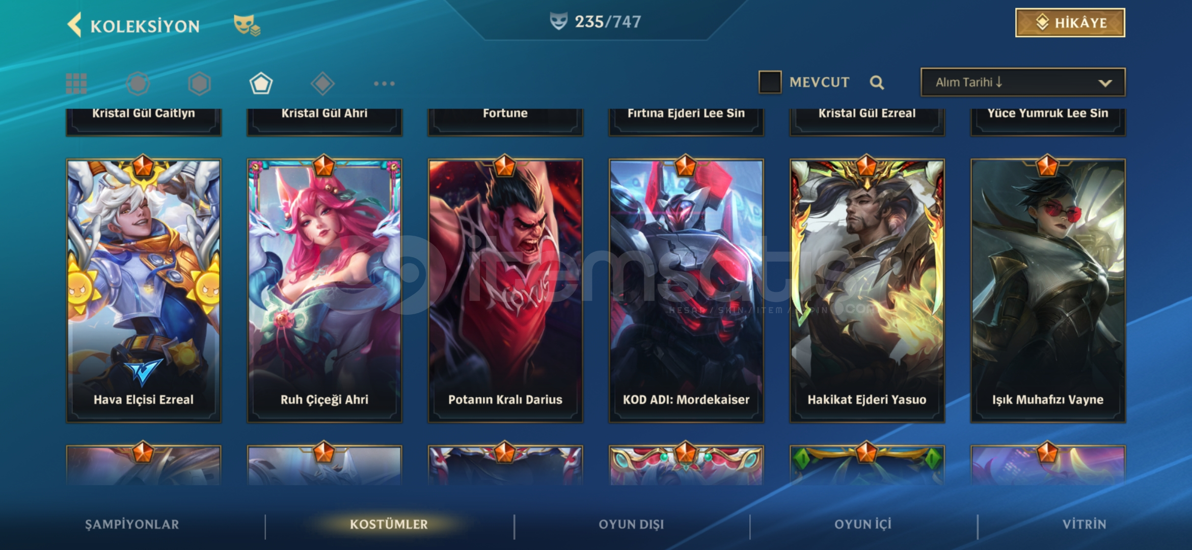 Hesap Şuanda master 2,bir çok skin var dm atarsanız daha da bilgilendiririm.8 tane mitik skin,38 tane efsanevi skin,133 tane epik skin,4 tane hareketli emoji,3 tane savaş arması,DM atarsanız ilgilienirim
