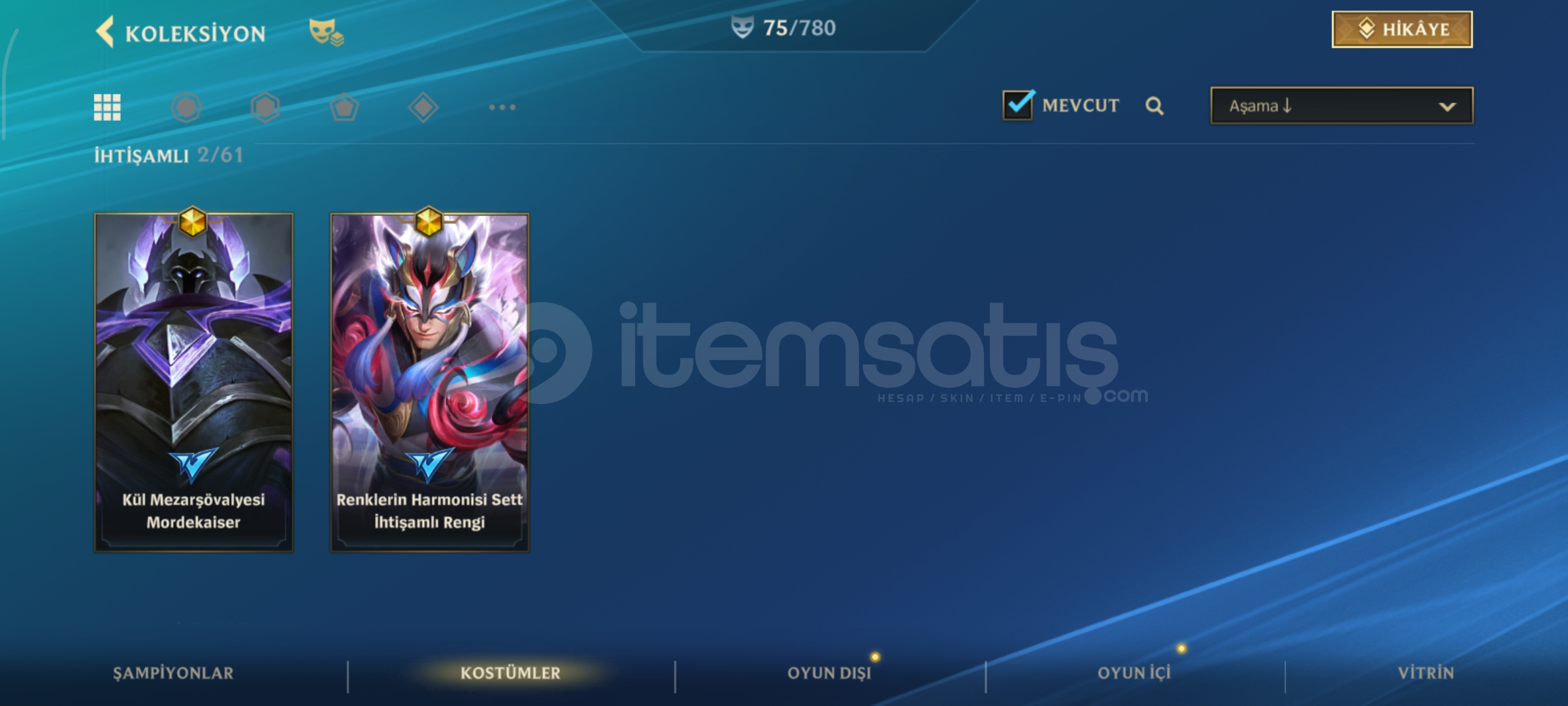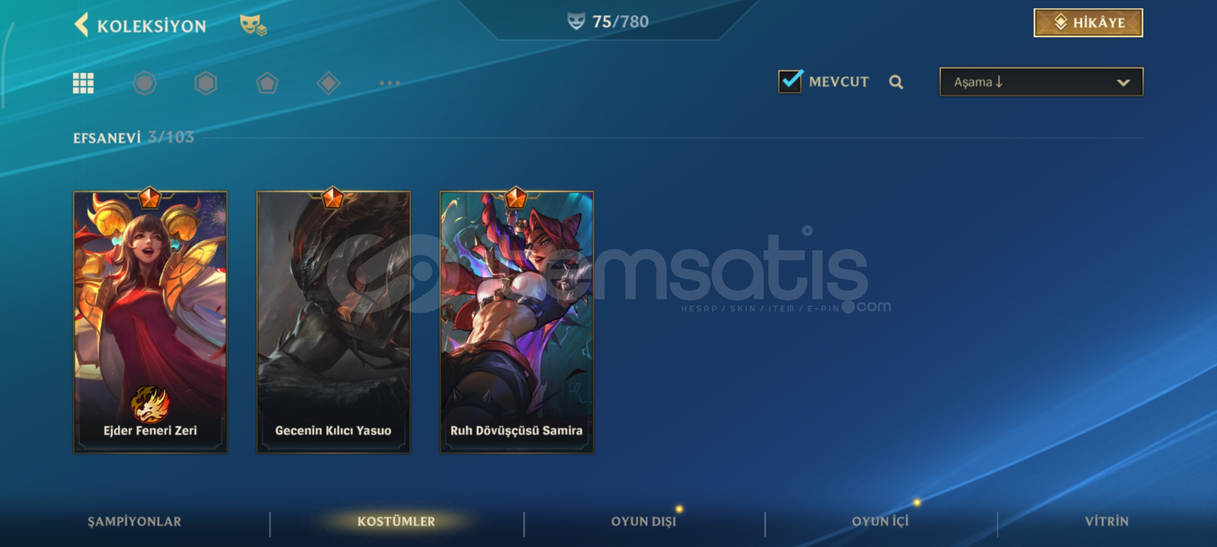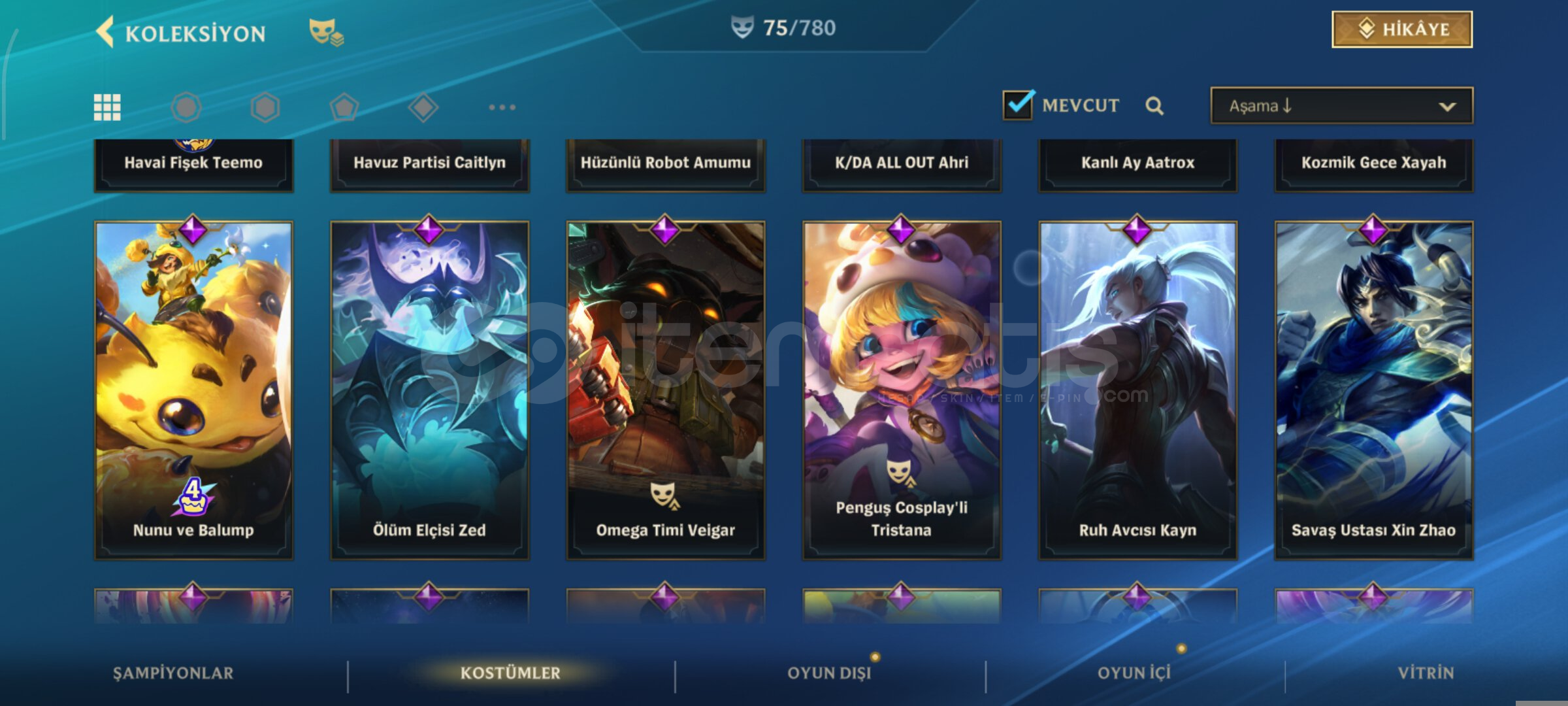 tüm şampiyonlar açıktır etkinlik ile alınabilir kostümler vardır detaylı bilgi için yazabilirsiniz