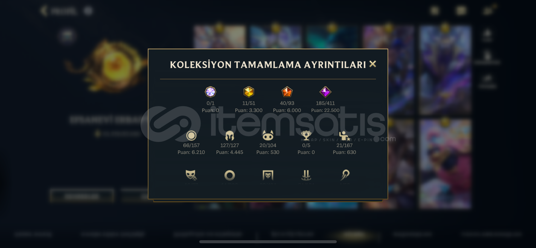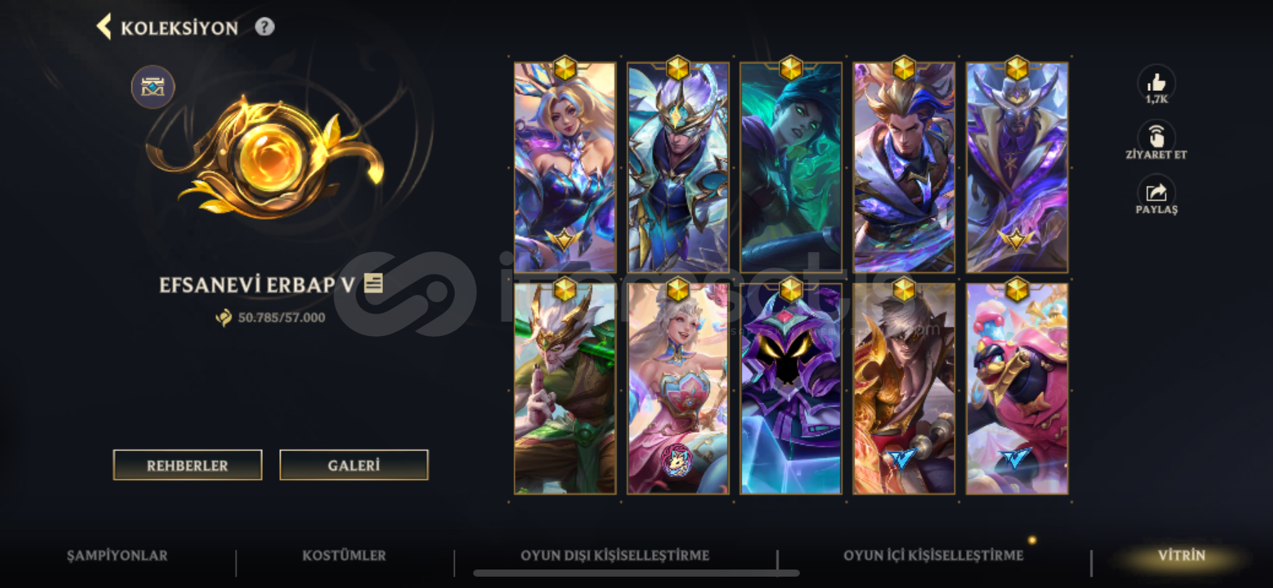 54 k koleksiyon puanı var 795 turuncu öz var full hero 96 k mavi öz 317 kostüm pc lol de bağlı orada da 30 40 kostüm var detaylı bilgi için 05376021222 mesaj atabilirsiniz