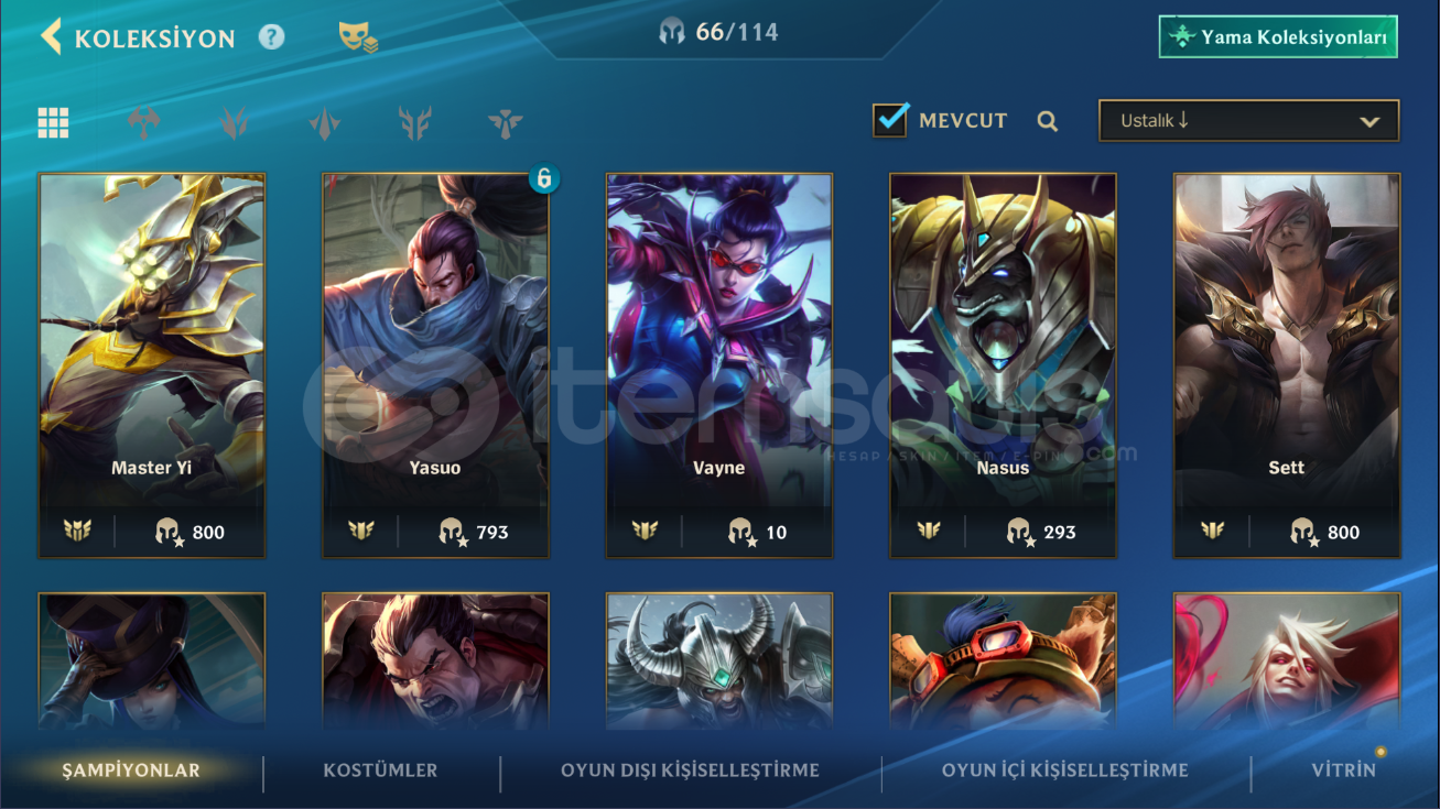 63 LevelZümrüt Düşmesi Altın2k Mavi öz2x Şampiyon Sandığı1x Vadi Rasgele Kostüm Sandığı1x Ay Festivali Rasgele Kostüm Sandığı1x Poro Mağzası Rasgele Kostüm Sandığı66 Şampiyon 16 kostüm2450 Poro Enerjisi7k Dereceli Mağza PuanıEposta Şifre Değiştirebilirsiniz