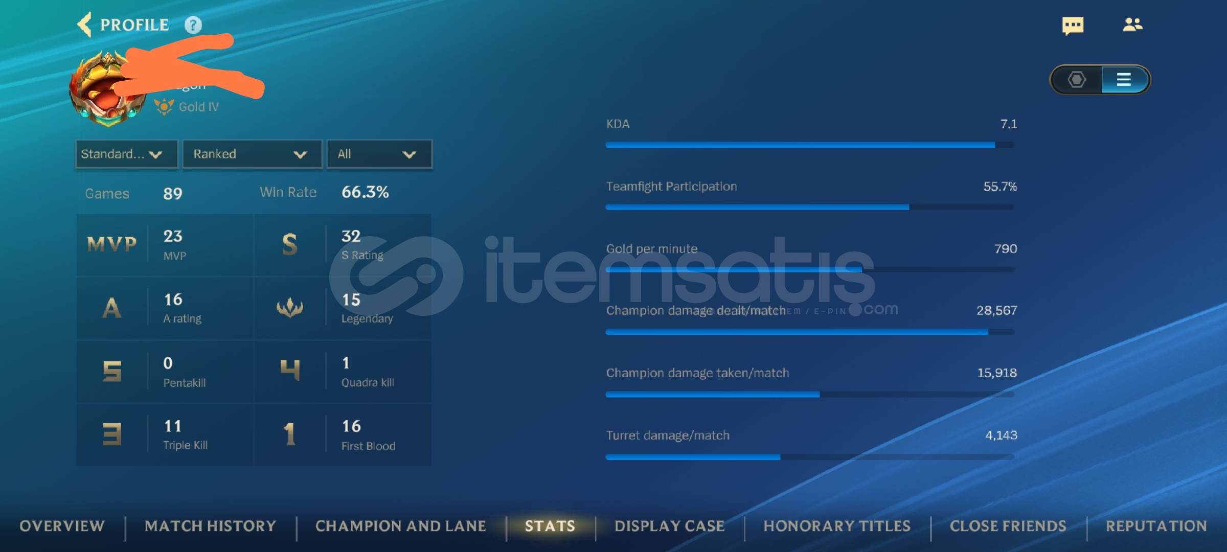 %66 WR 7.1 KDA ALTIN 4 KASMALIK KOSTÜMLÜ HESAP