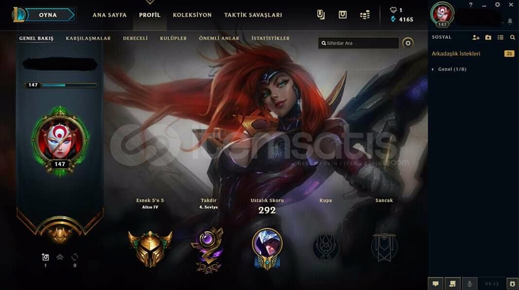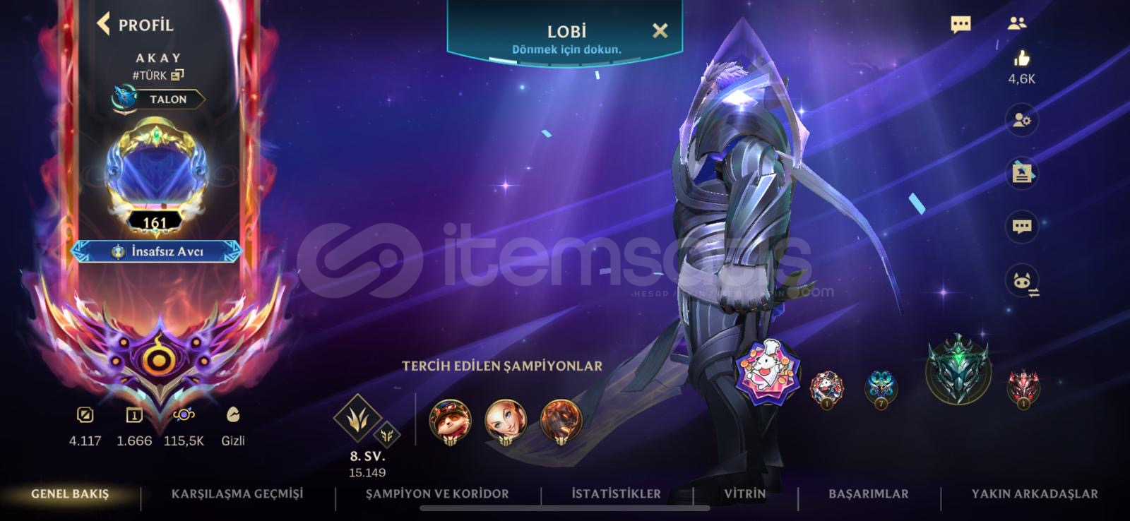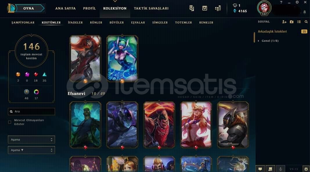 664 kostüm 120000 koleksiyon puanıhareketli profil simgeleri hareketli çerçeveler bütün ifadeler açık ayrıca league of Legends PC hesabı da bağlı