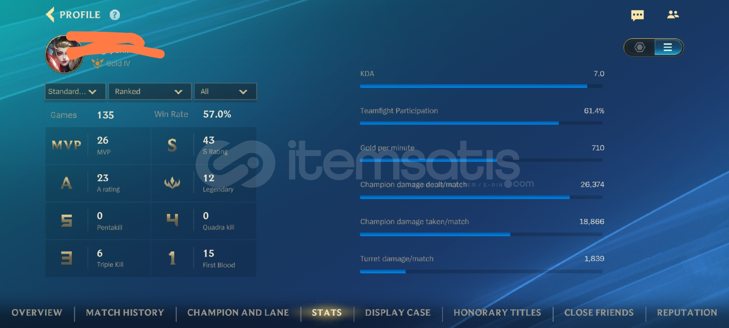 7 KDA 1100+ GÜNLÜK SMURF ALTIN 4 HESAP KOSTÜMLÙ