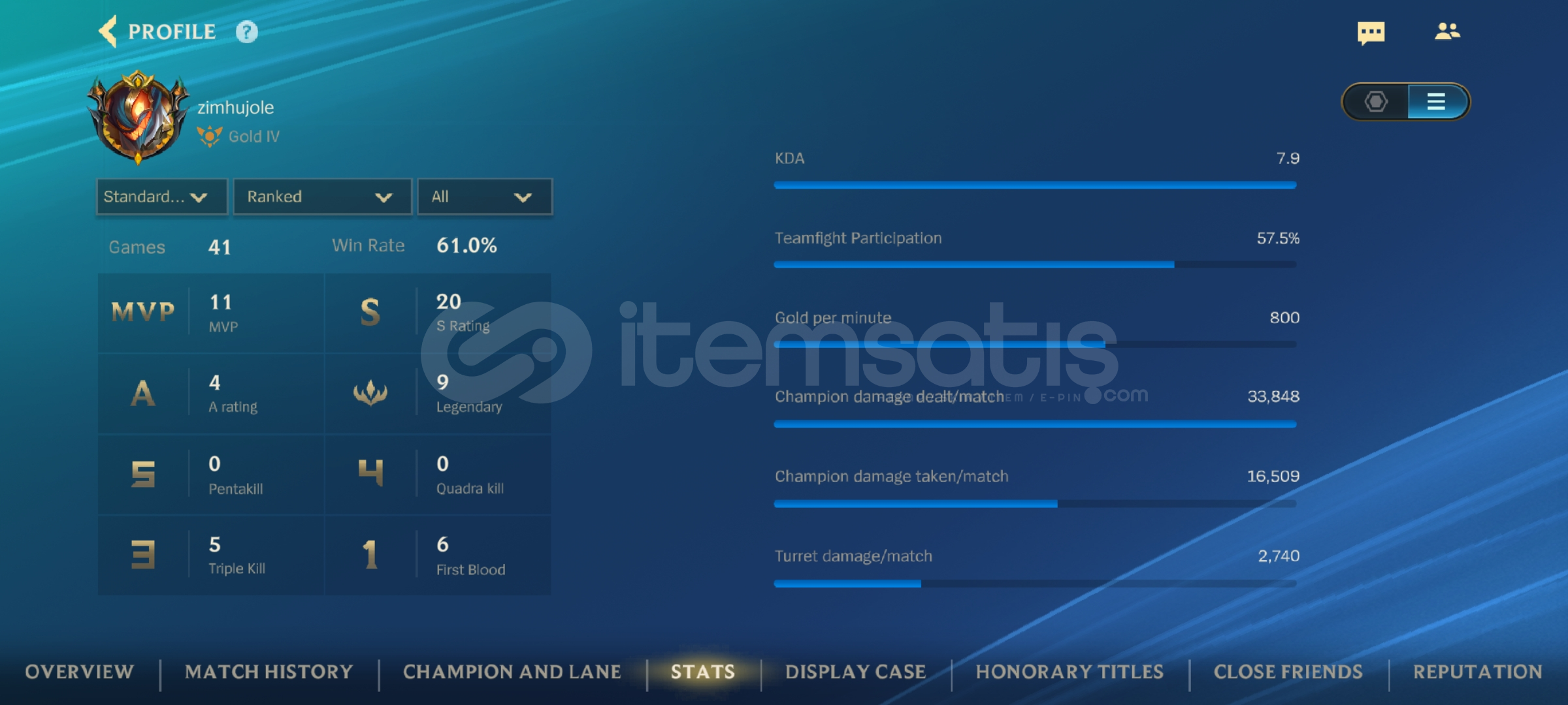 7.9 KDA %61 WR Altın 4 SMURF KASMALIK HESAP