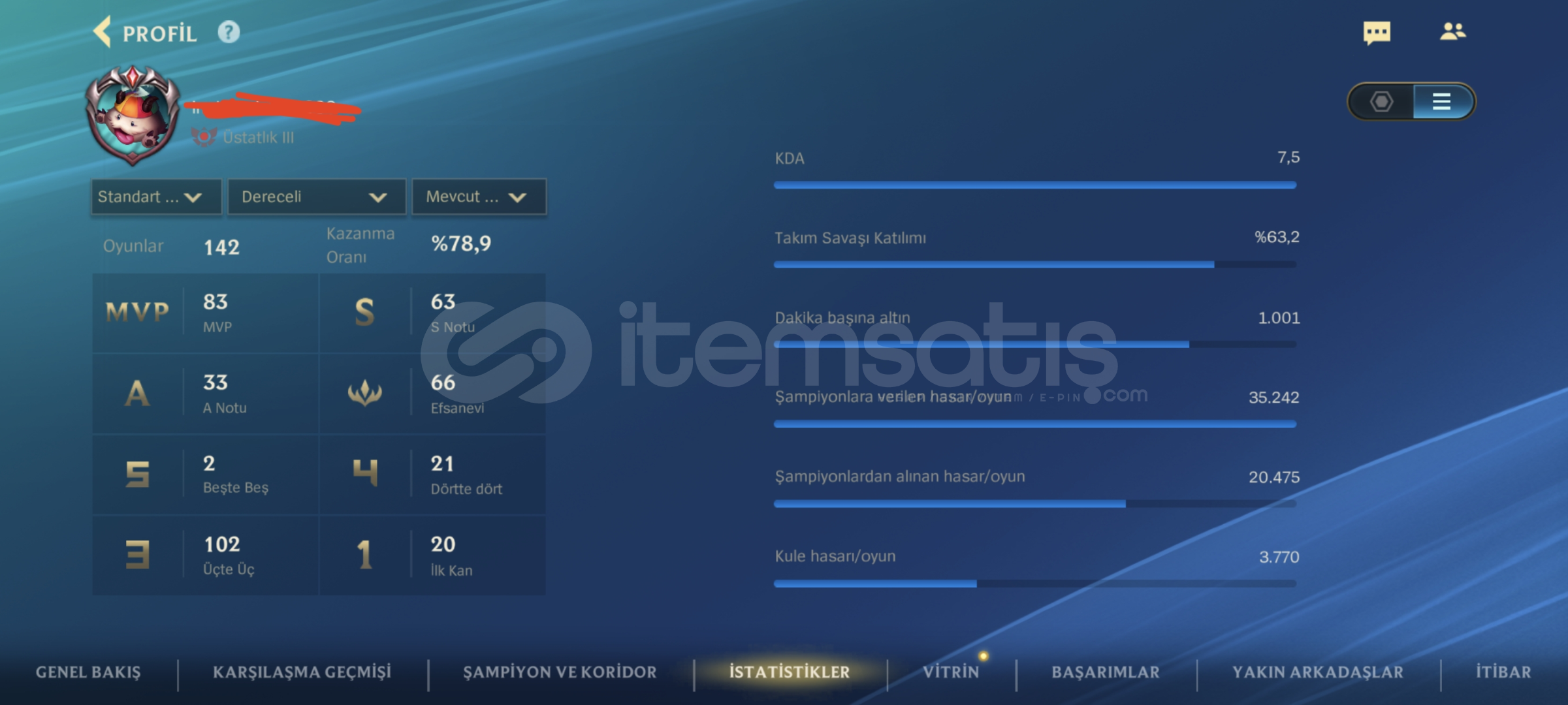 Hesap 79wr 7.5kda 33 damga gmdir acil satılık olduğu için fiyatı düşürdüm yinede cüzi miktarda indirim olur