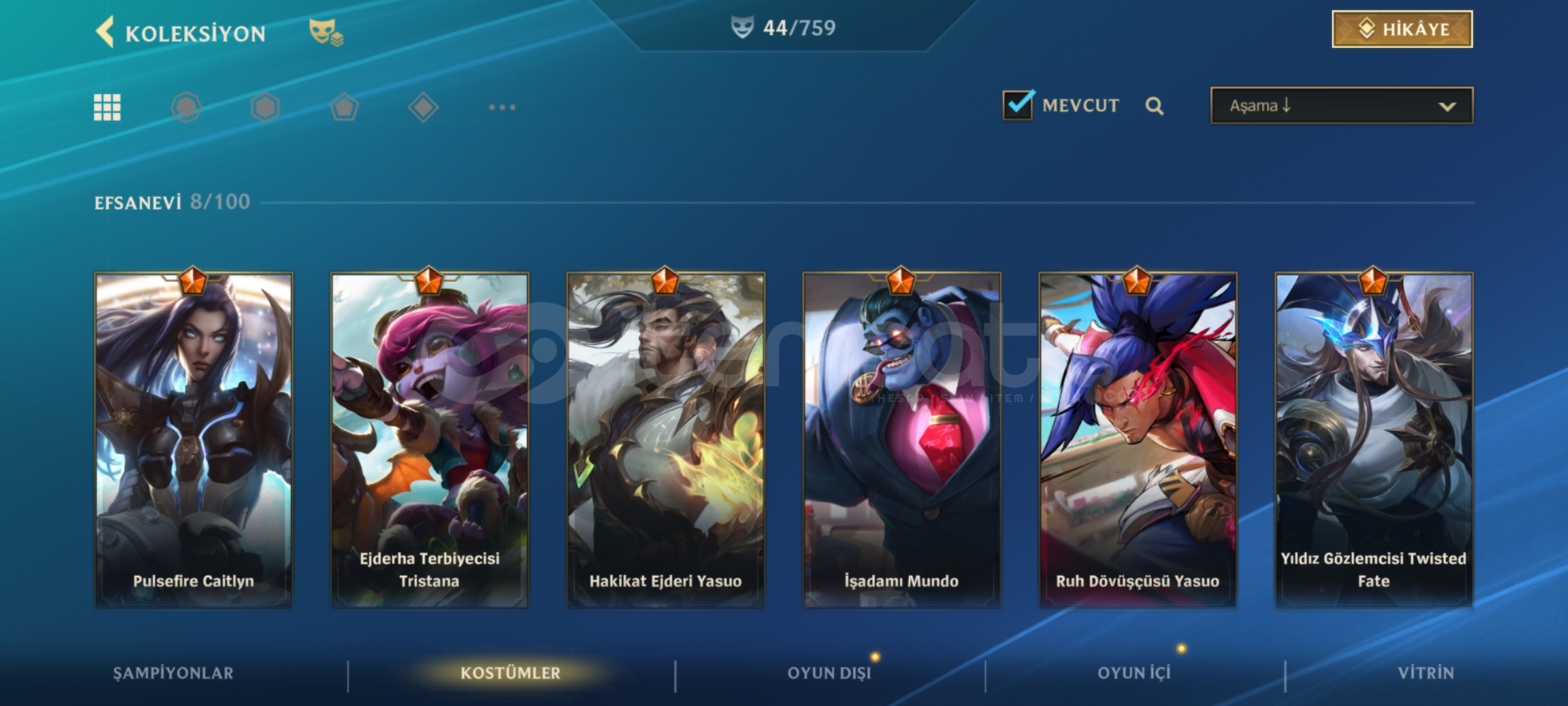 • 8 i Efsanevi Kostüm Olmak Üzere 44 Kostüm Vardır