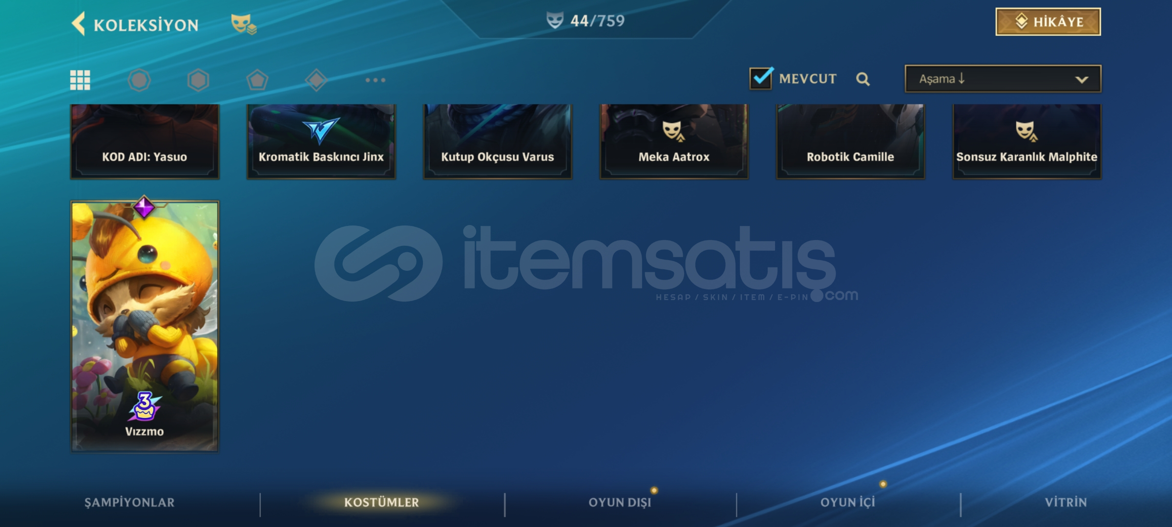 Hesapta 8 i Efsanevi Kostüm Olmak Üzere 44 Kostüm Vardır75 Hero Mevcuttur38 K Mavi Öz MevcutturYanında 1 Sezon Bilet Açılmış Valorant Başlangıç Hesabı da Hediyedir