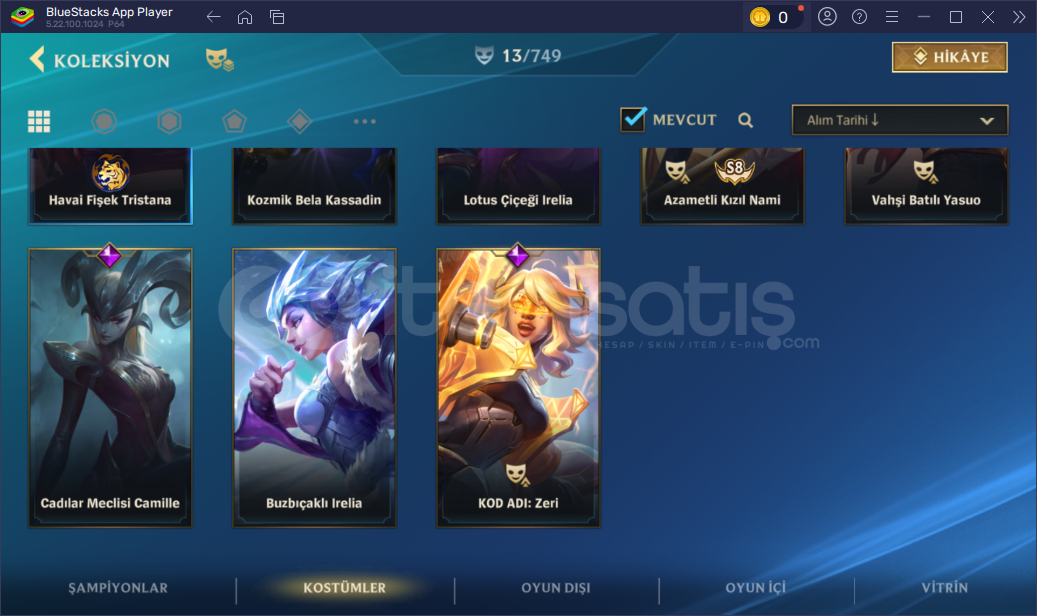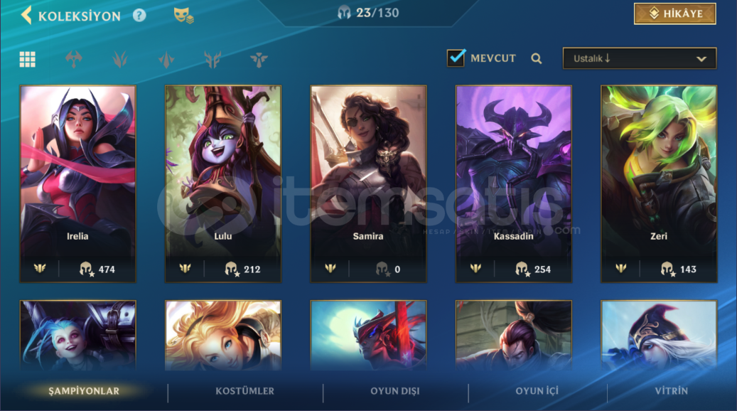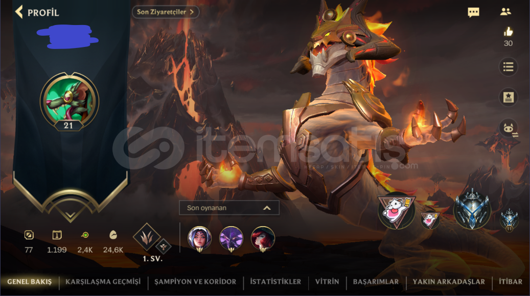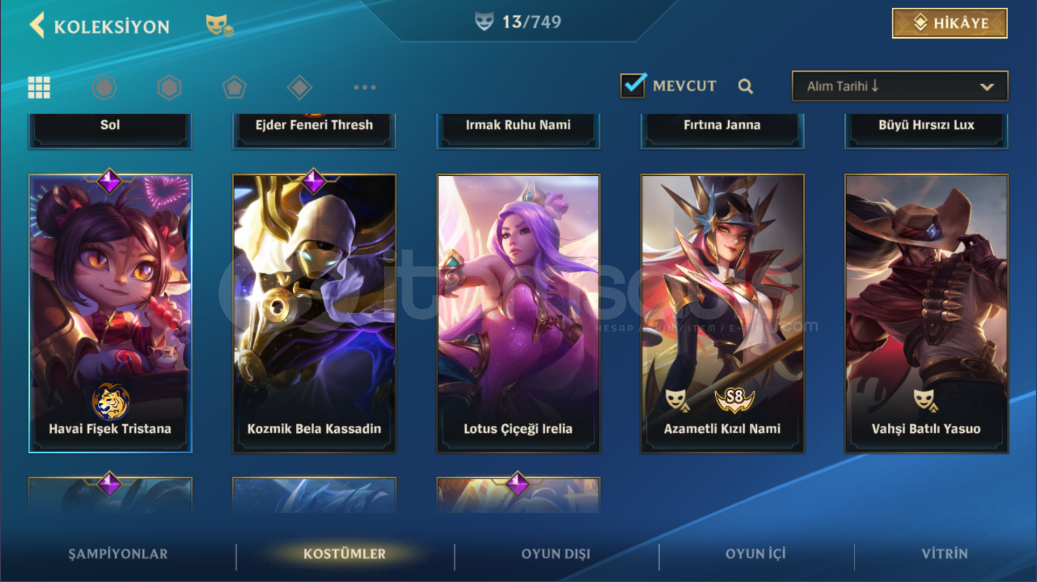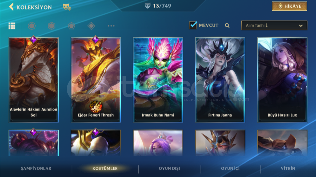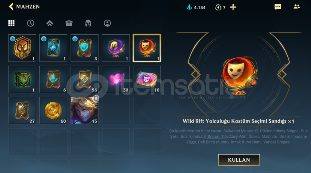 21 level Gümüş4134 mavi öz 7 vahşi çekirdekEposta Onaysız23 şampiyon 13 kostüm730 Poro Enerjisi1x Kostüm Sandığı1x Şampiyon Sandığı