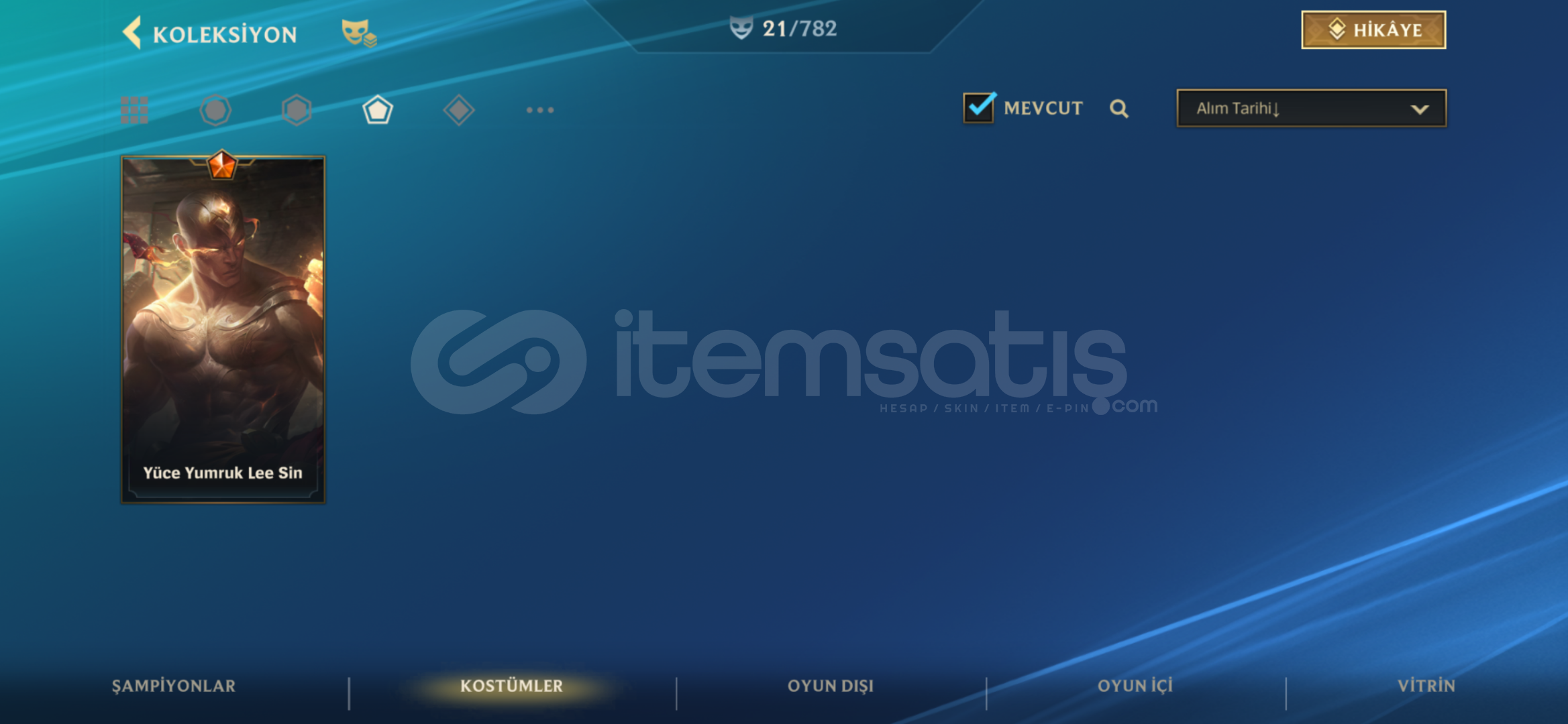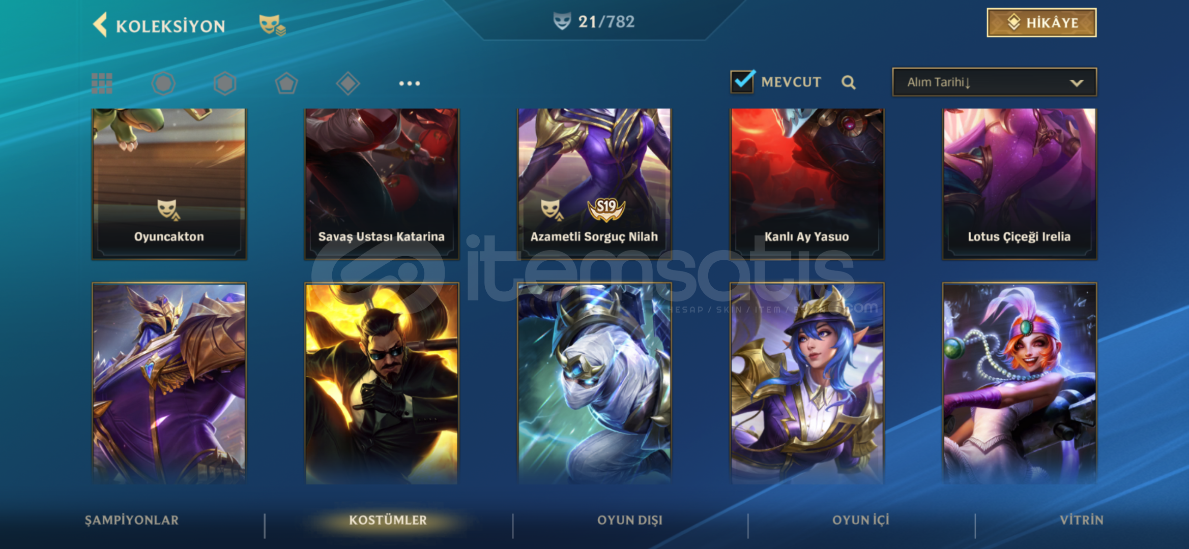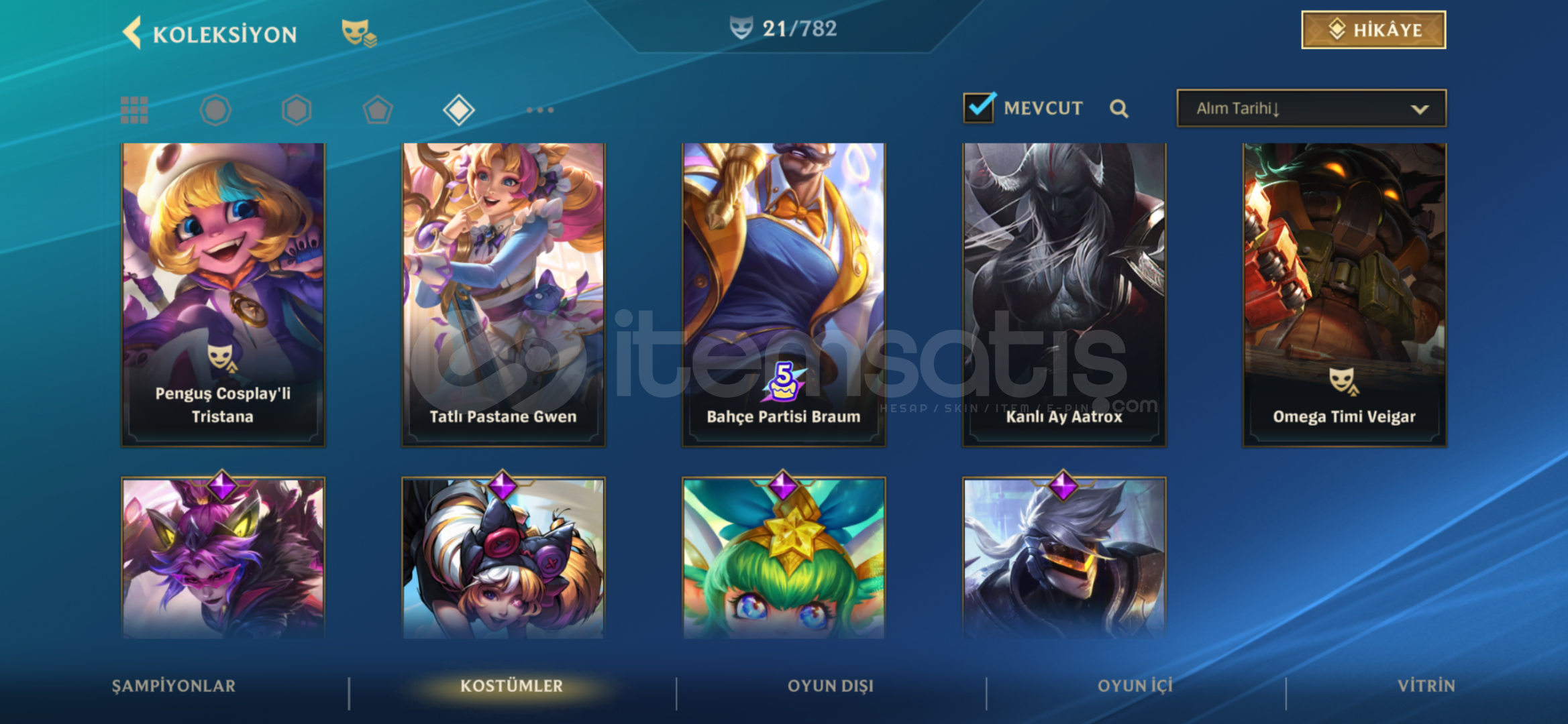 Smurf niteliğinde az maçlı hesap.. Güncel olarak challenger, 21 kostümü var pek tatmin edici düzeyde olmayabilir ama hemen hemen her lanede iyi kostümler var efsanevi destansı olarak.. Fotoğraf olarak ekliyorum. Nicki hesap satımı yasak olduğundan sansürlüyorum alan kişiye sorun olmasın, Sorunsuz temiz bir hesap. ALICISINA ŞİMDİDEN HAYIRLI OLSUN..