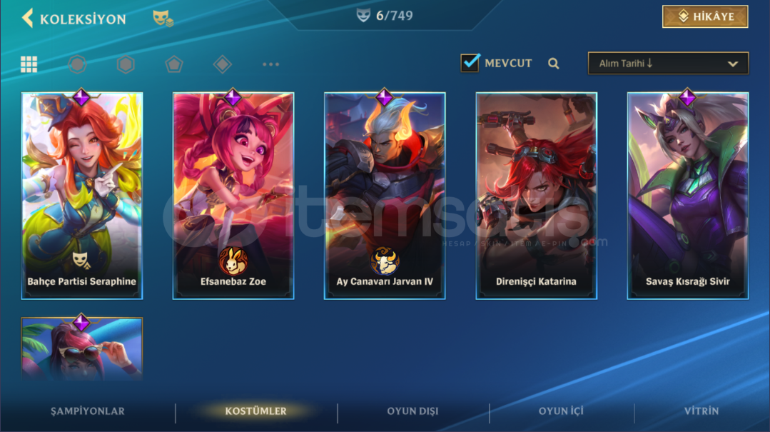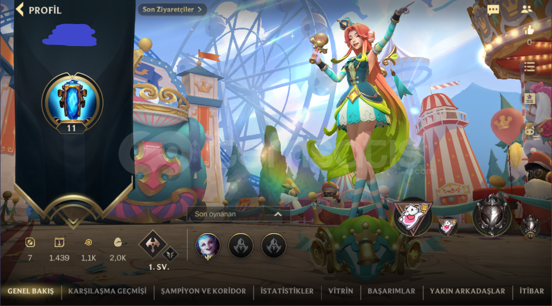 11 level10k mavi öz3x Şampiyon Sandığı1x Kostüm Sandığıdereceli açık oynanmamıştır1500 poro enerjisi6 kostüm 10 ŞampiyonEposta Şifre Değiştirebilirsiniz