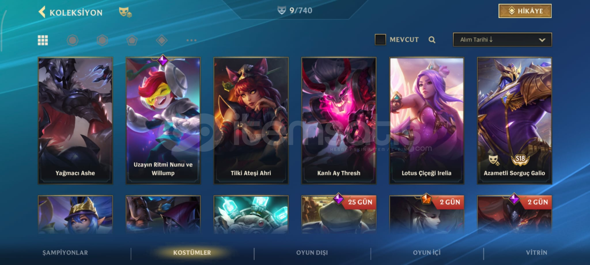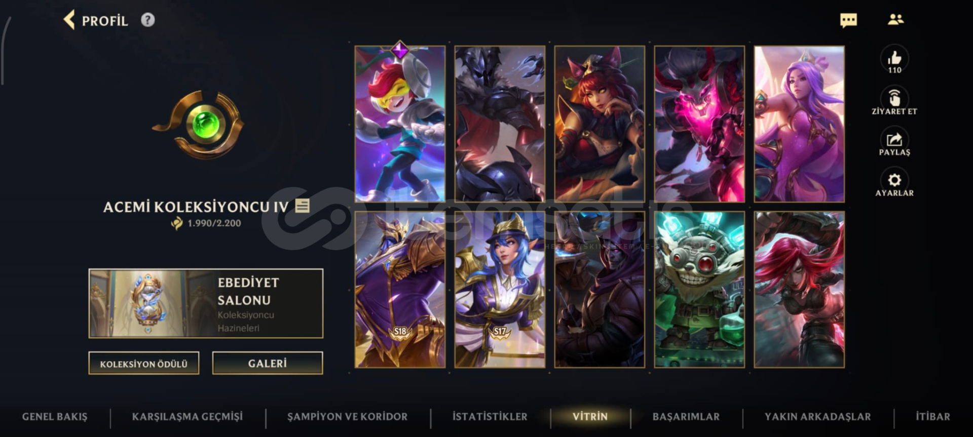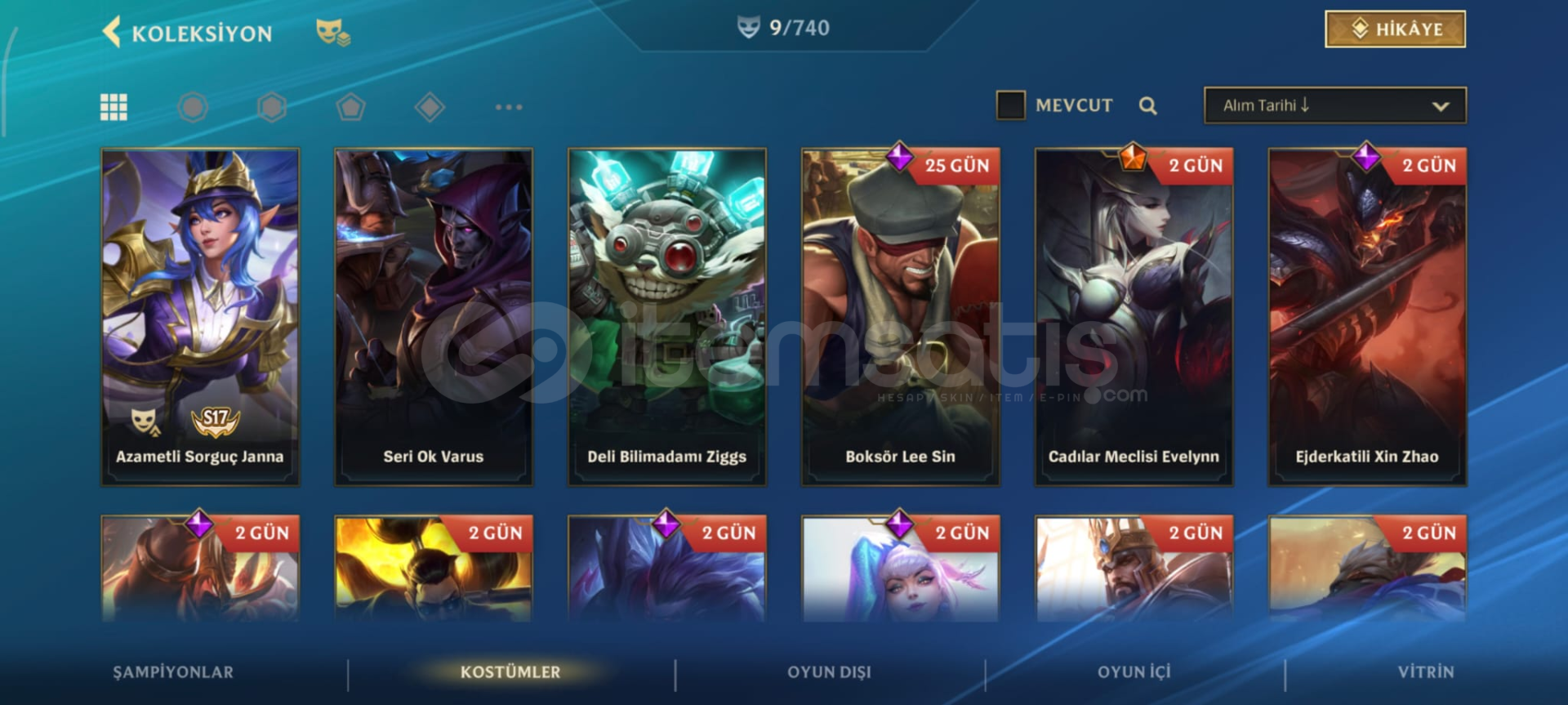Rezil olan karşılaşma sistemi sebebiyle Master olmam gereken eloda random eşleşme ile plat stuck kaldım toplam 217 oyun oynanan hesapta oyunda geçirilen gün 225 diğer detaylar için ilan fotoğraflarına bakıp, yetmediği yerde yazabilirsiniz 11-12 skin ve birçok deneme skini var