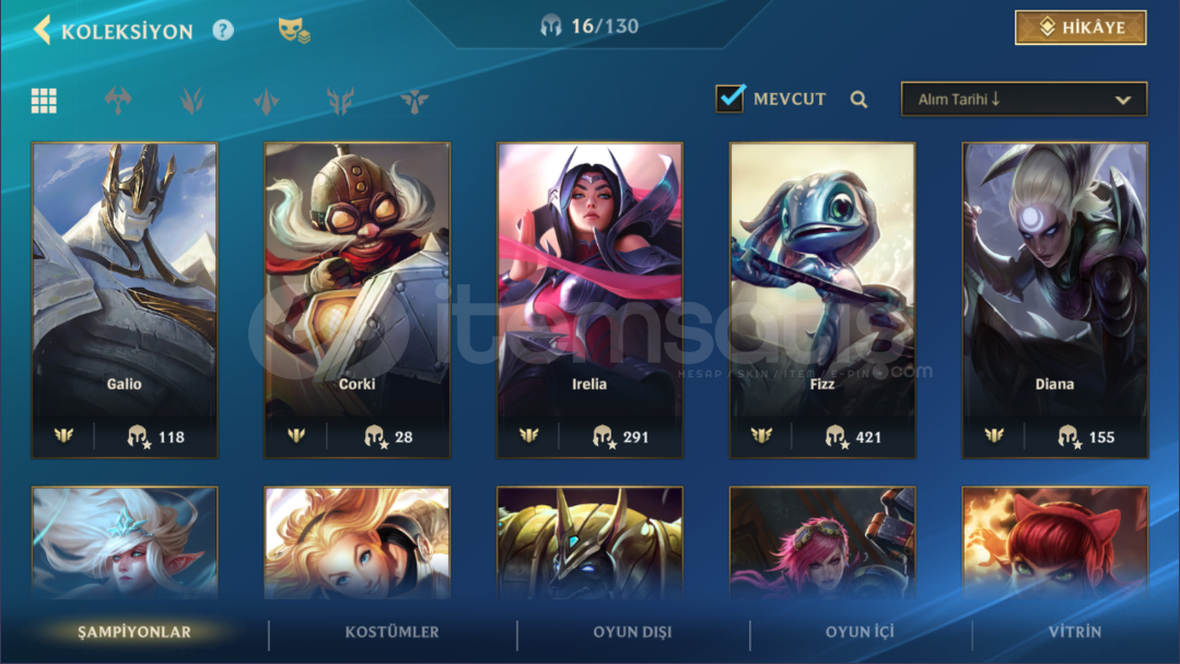 19 LevelZümrüt Düşmesi Altın7k Dereceli Jetonu8x Şampiyon Sandığı1x kostüm sandığı37k mavi öz 60 vahşi çekirdek16 Şampiyon 7 kostüm2200 Poro EnerjisiEposta Şifre Değiştirebilirsiniz