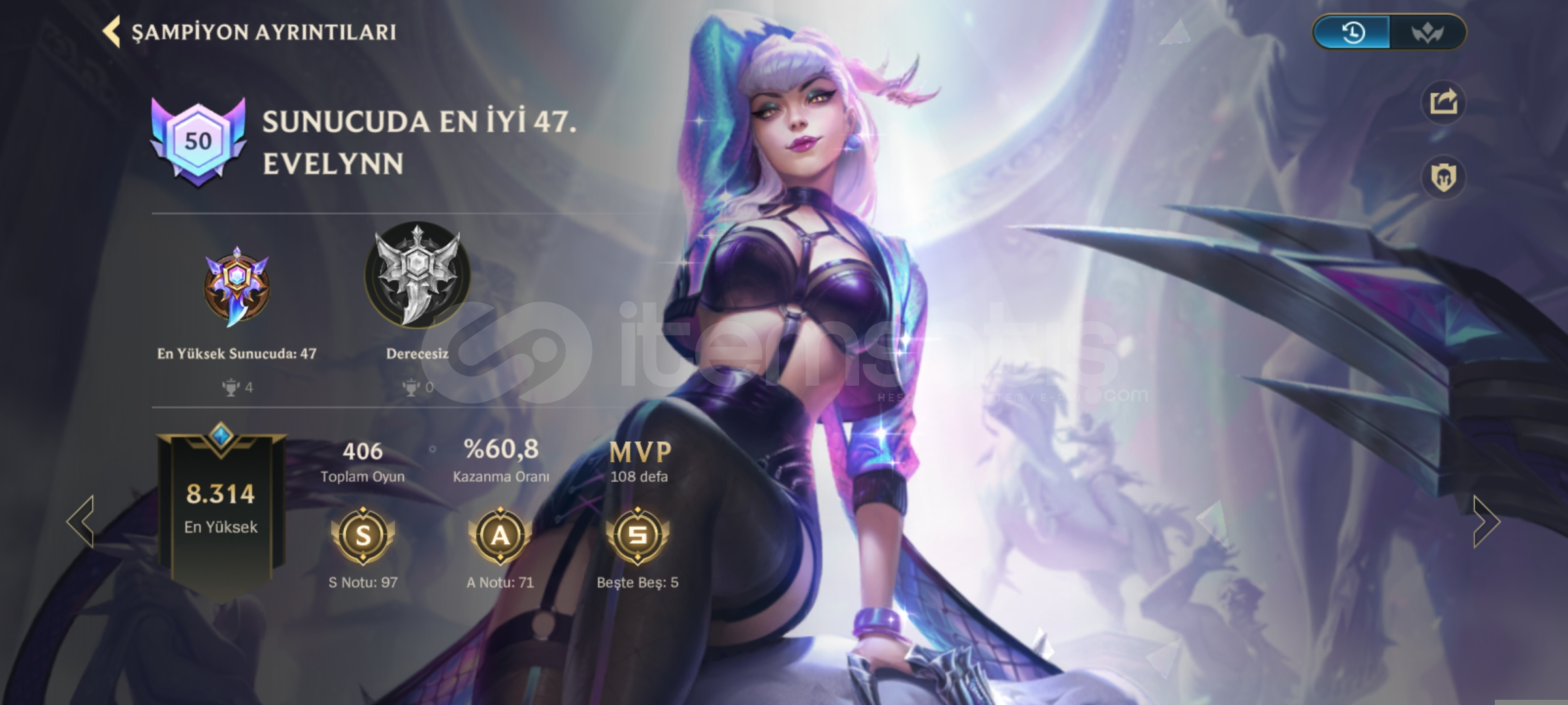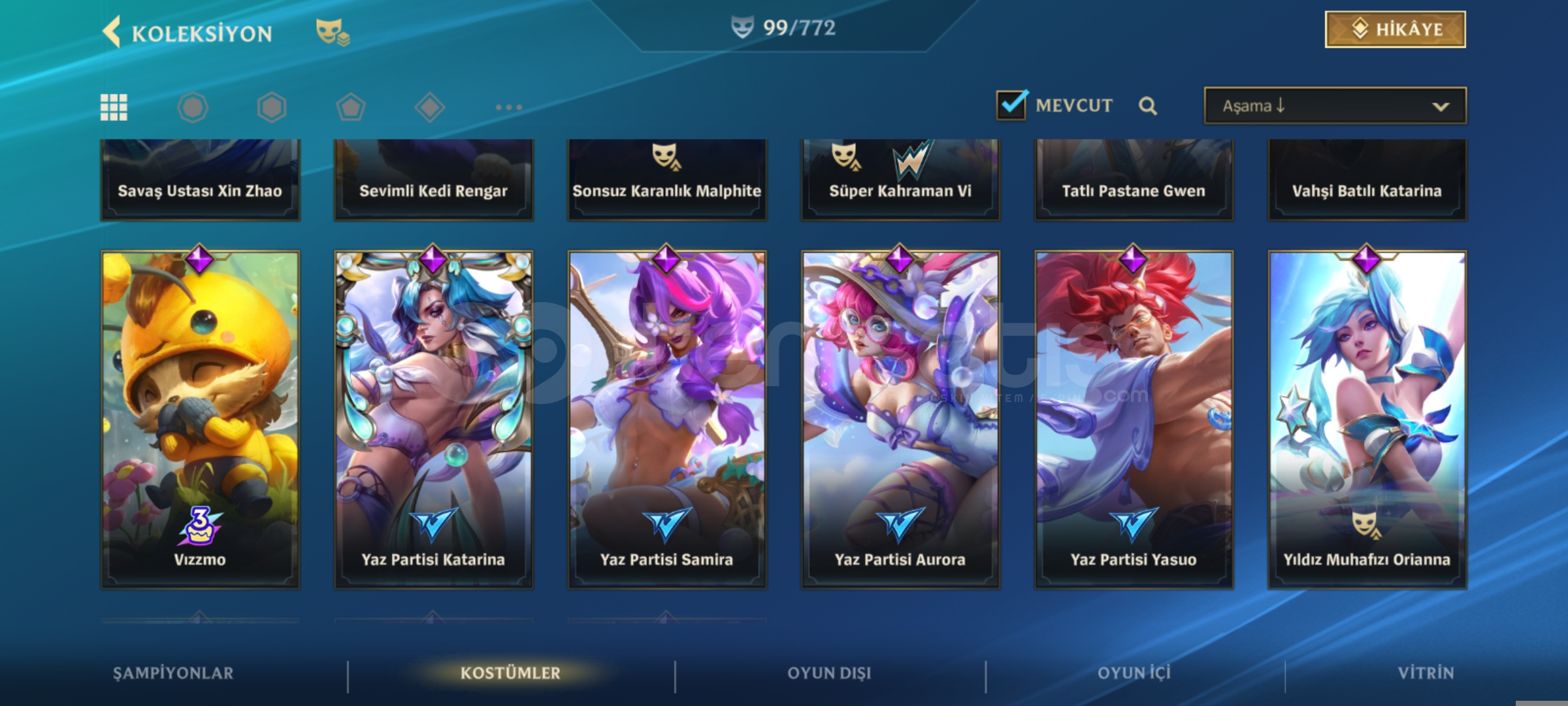 Challenger Görmüş.Aktif Master 17 Damga.Kata Tüm Kostümler Açık.Yaz Partisi Tüm Kostümler Açık.21,1K Koleksiyon Puanı.Toplam 99 Kostüm.Evelynn Aktif Olarak Sıralamada.Merak Ettiğiniz Şeyleri Sorabilirsiniz Keyifli Alışverişler.