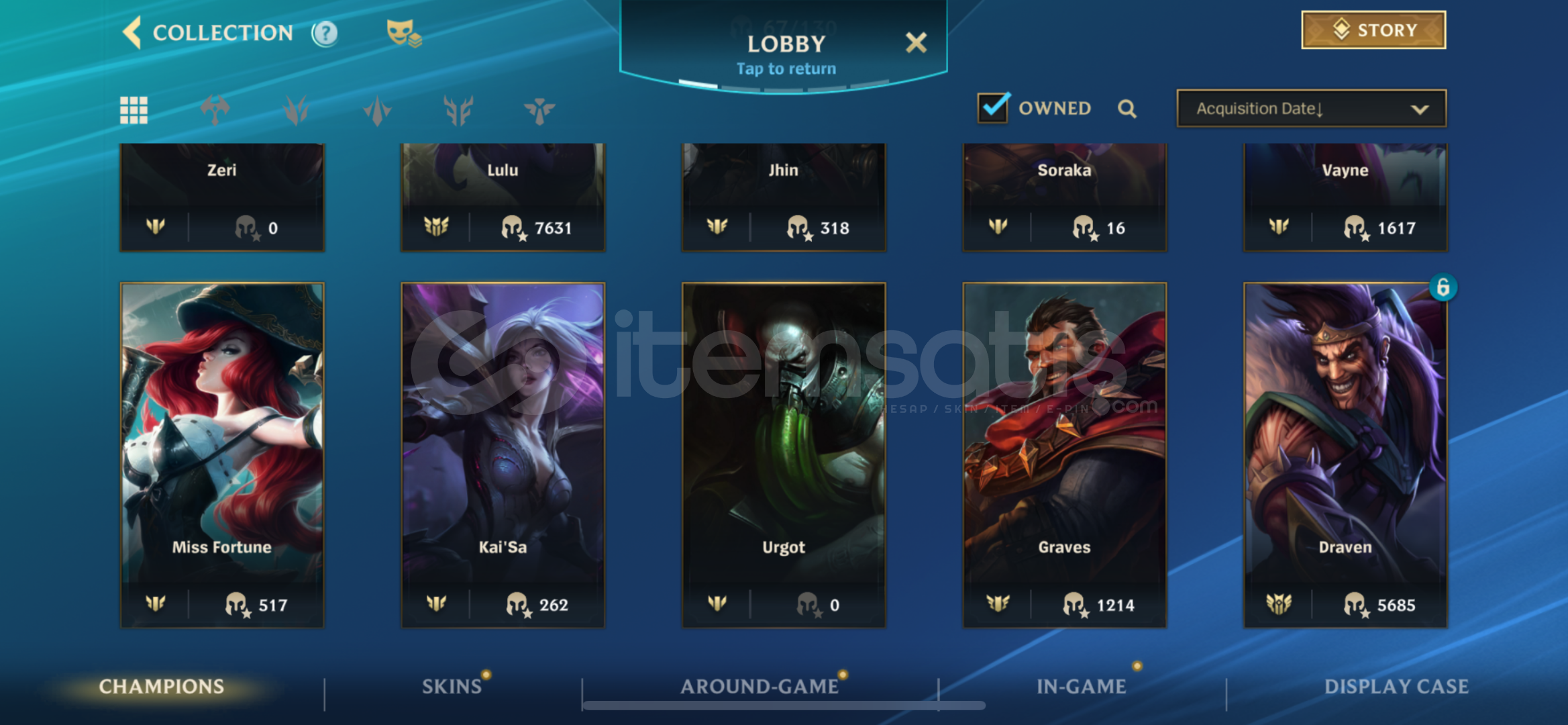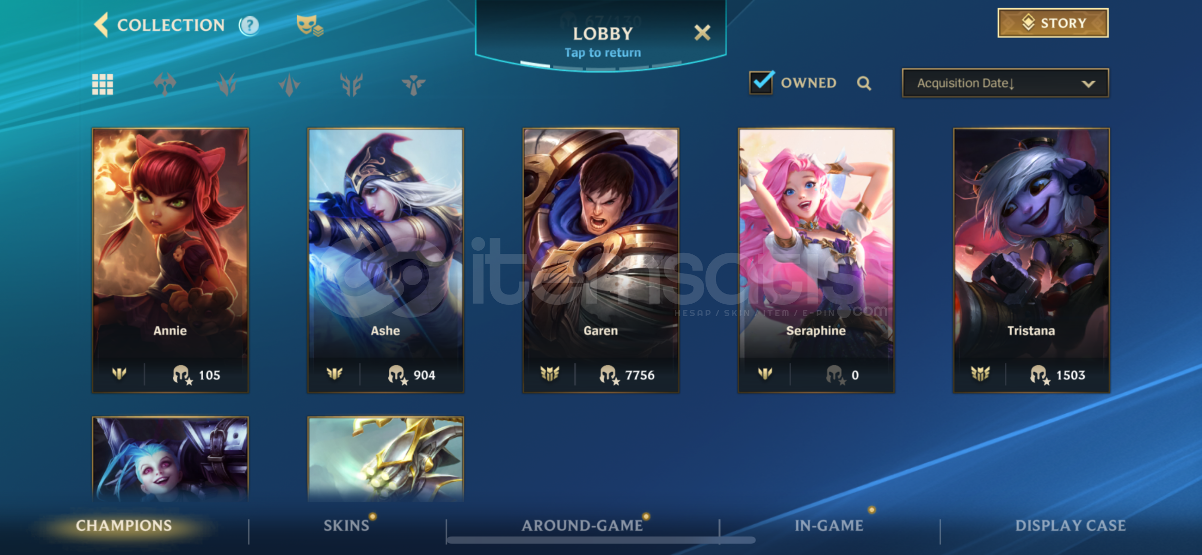 lootda 2 legendary 1 epic skin (ashe vayne legendary, fizz epic)