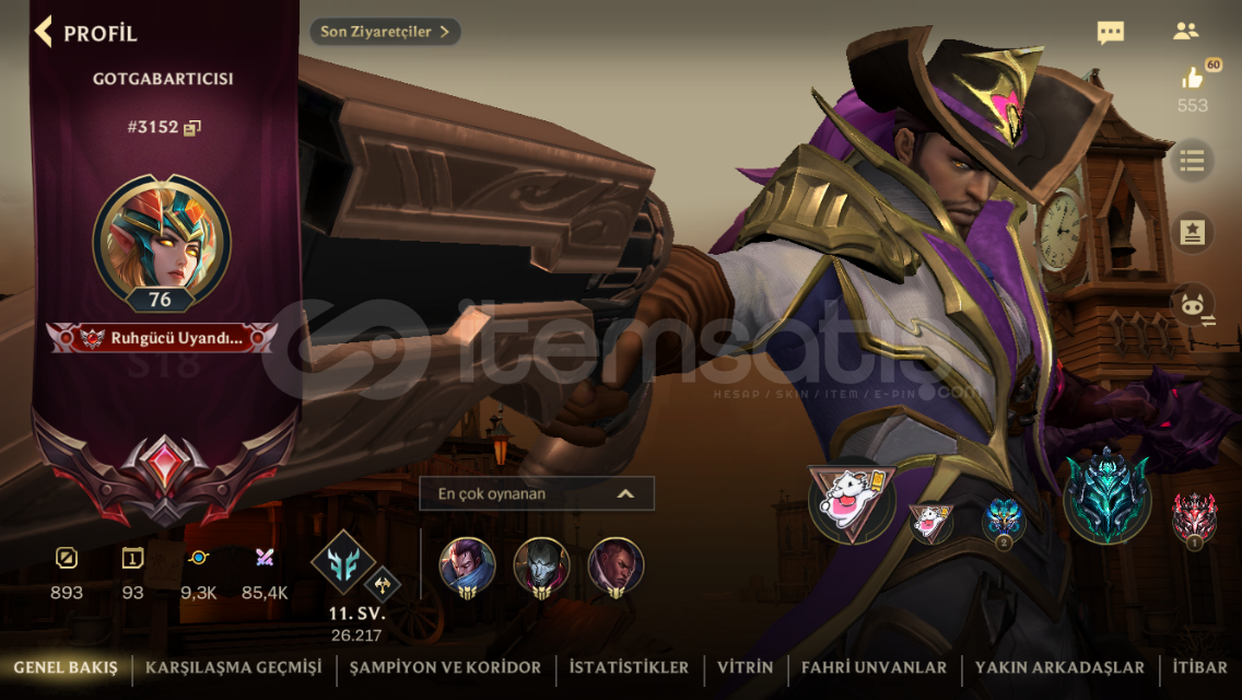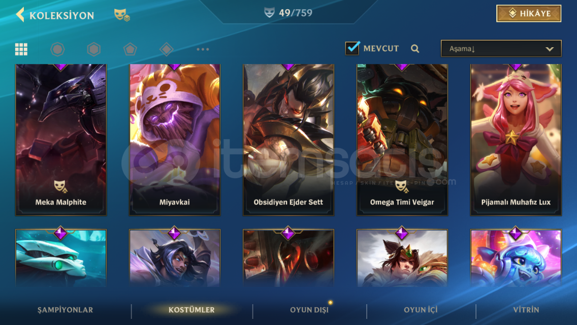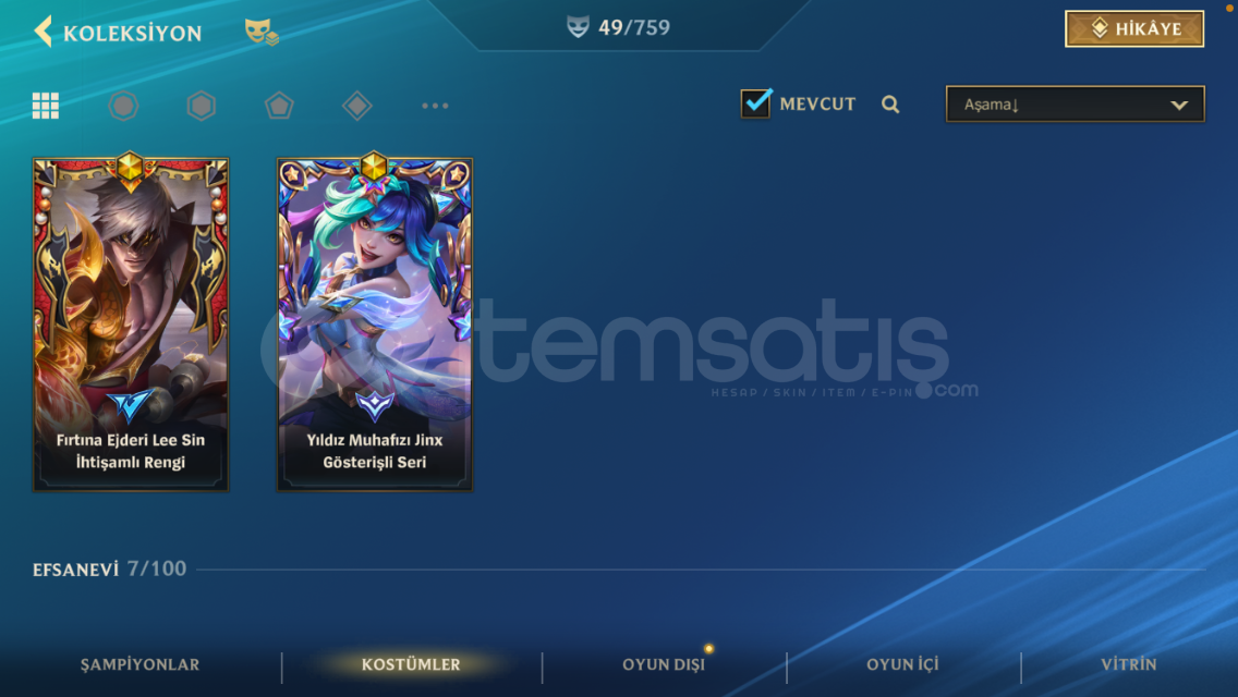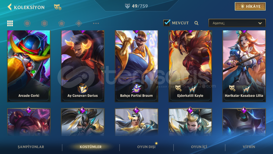 40 tane skin geçen sezon gm , 800 vahşi çekirdek