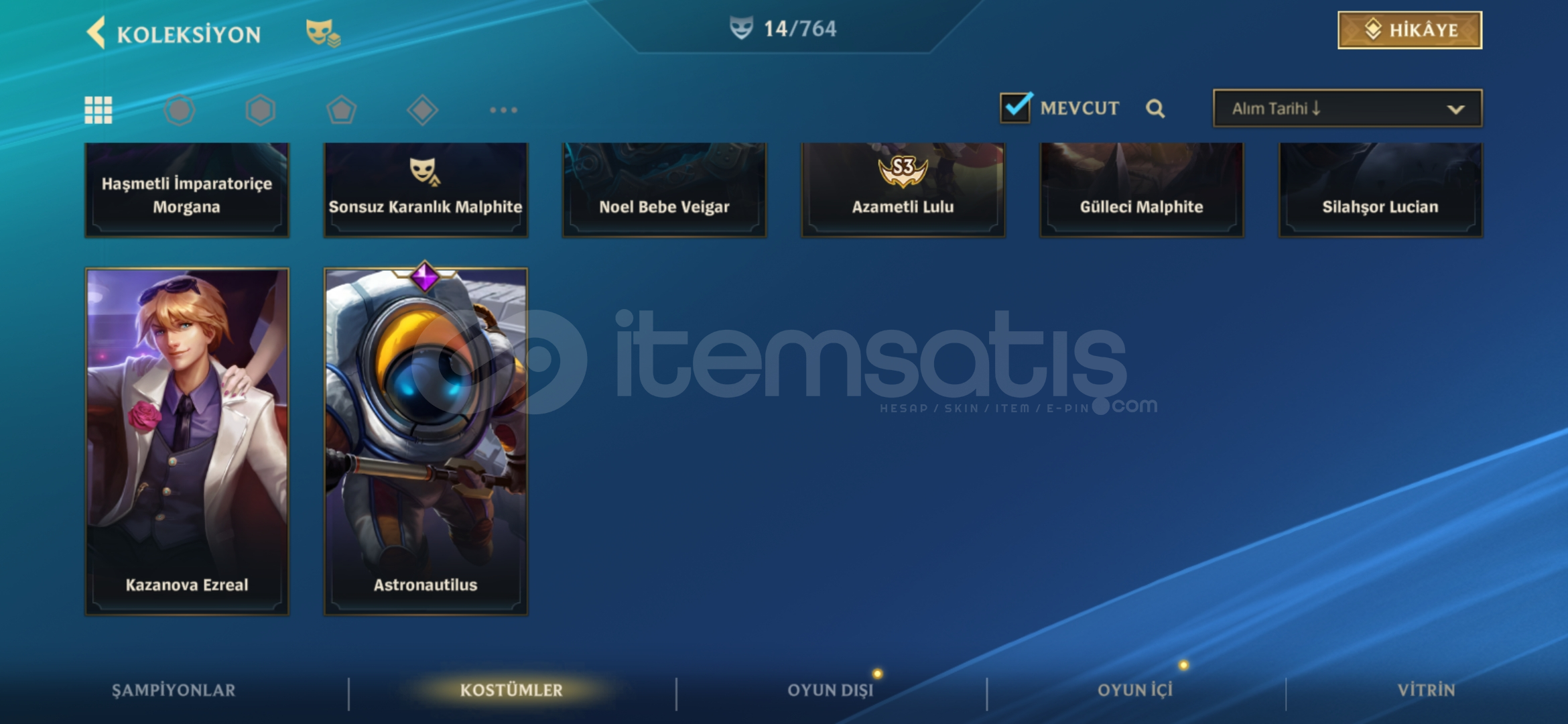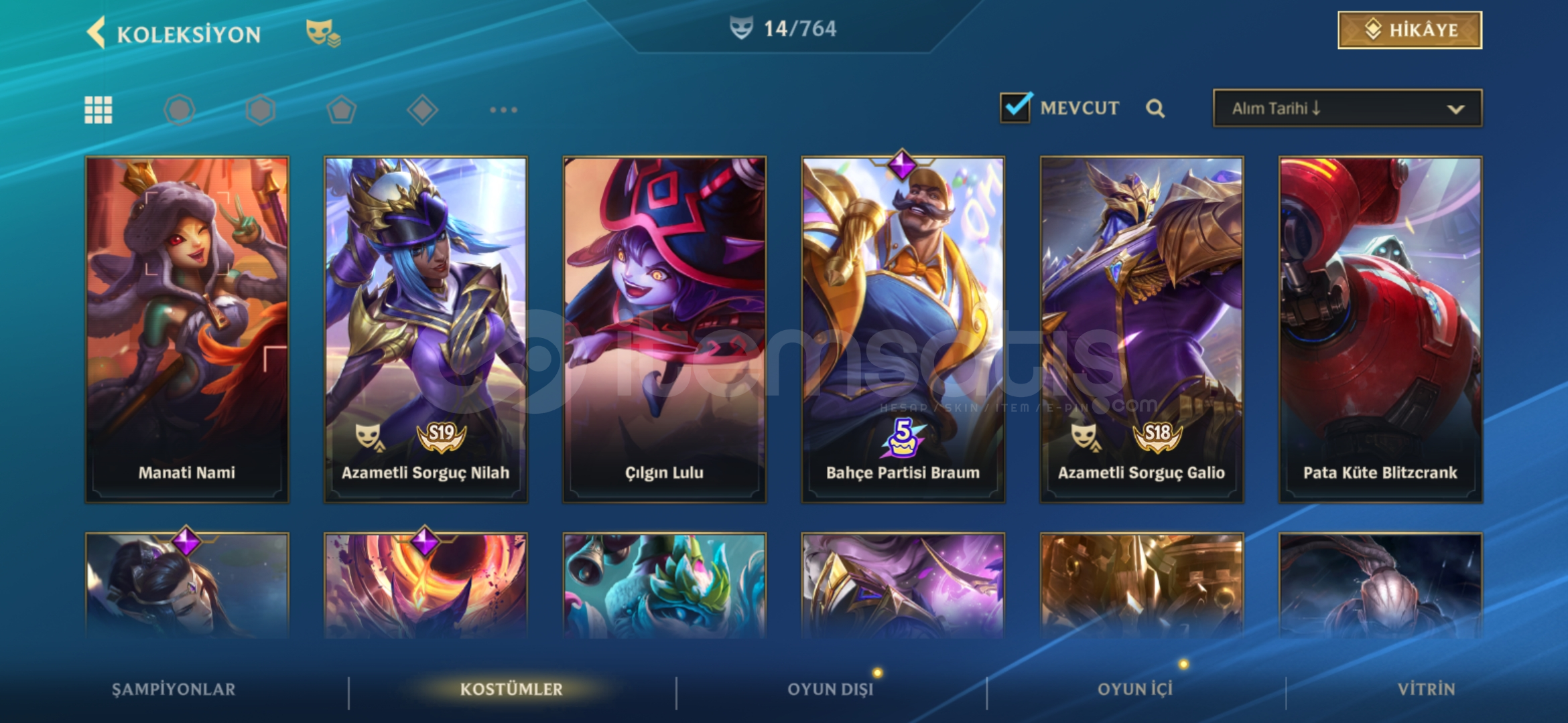 45 level29500 mavi öz31 şampiyon14 kostüm %65 win rate
