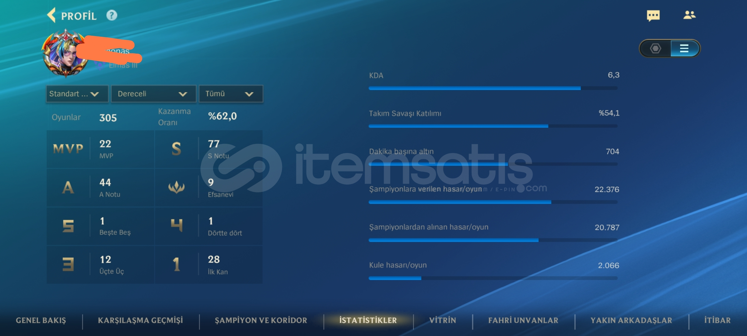 Yüksek KDA, WinRate ve gösterişli profil ile lobilerin aranan adamı olun.