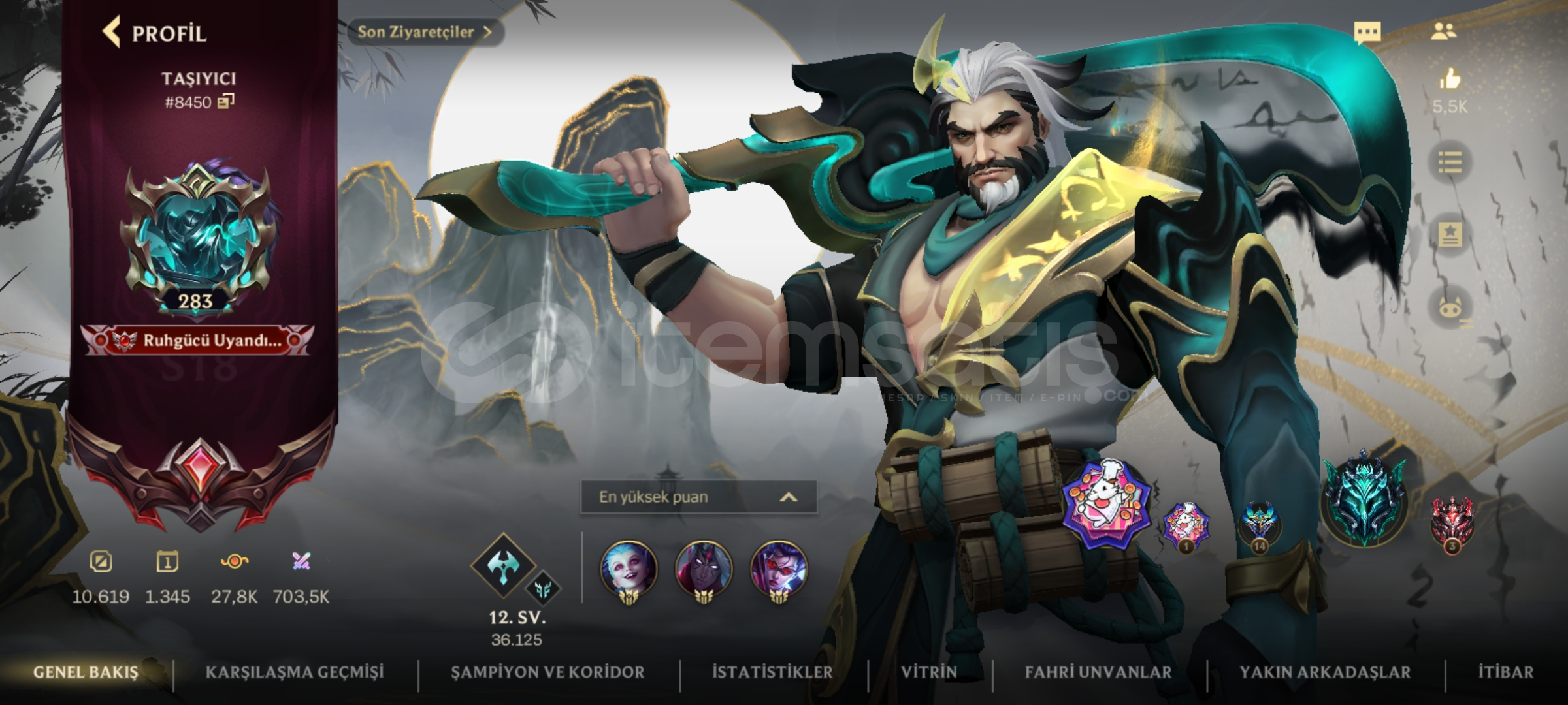 283 lvlBütün hero'lar açıktır. (143k öz vardır)130 kostüm vardır. (kapalı kostümler mevcut)1 ihtişamlı.19 efsanevi.57 destansı.53 sıradan.GM 49 damga düşmesi.Birçok hero da ustalık mevcut.Riot hesabına bağlıdır.