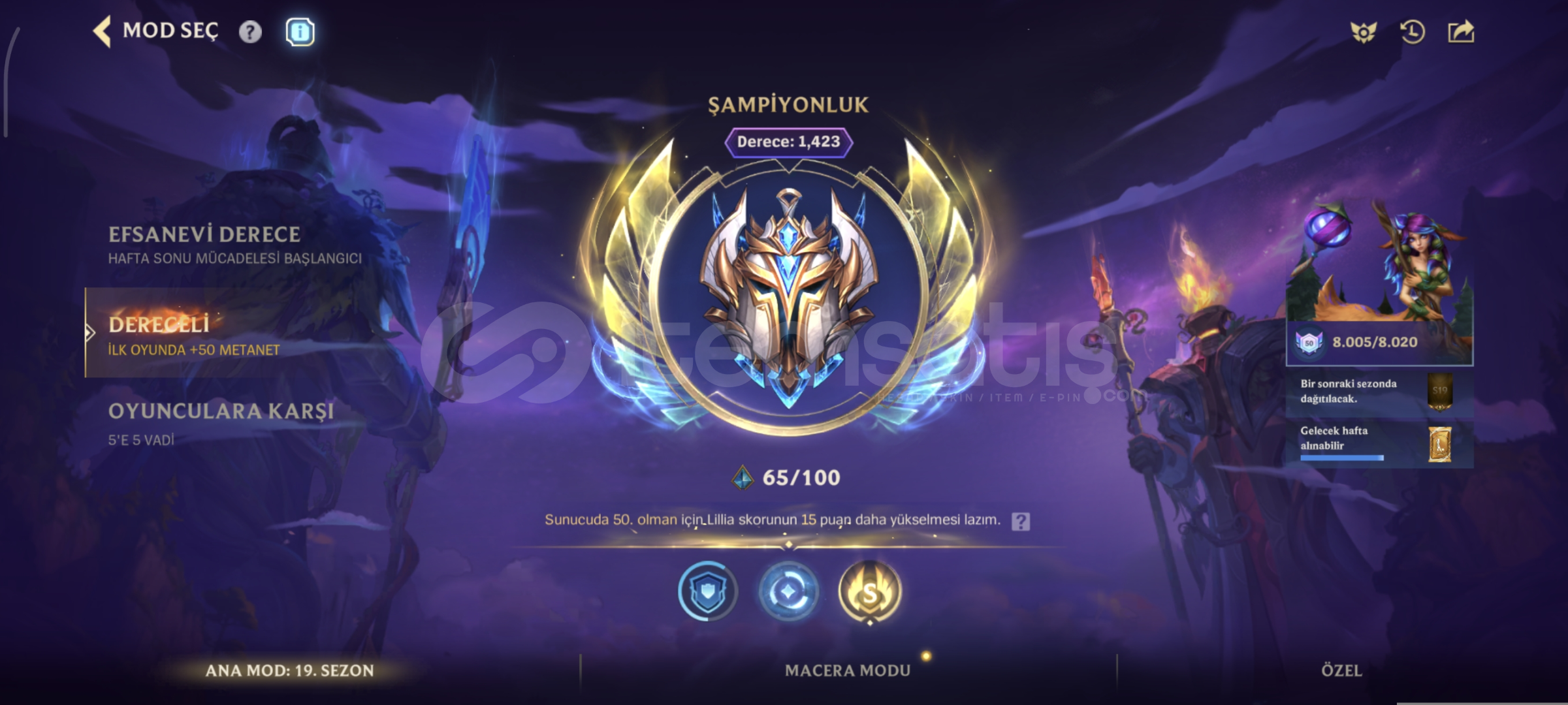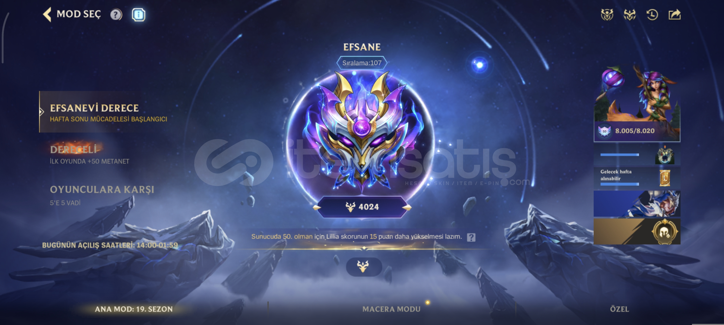 3 sezon imparator 130 peak 5 sezon challenger 3 sezon legend ve güncel olarak legend ve challdir sunucu orman 80. sıra 20 sv orman 2 heroda top5 5-6 heroda top50 emsalsiz lillia mevcuttur