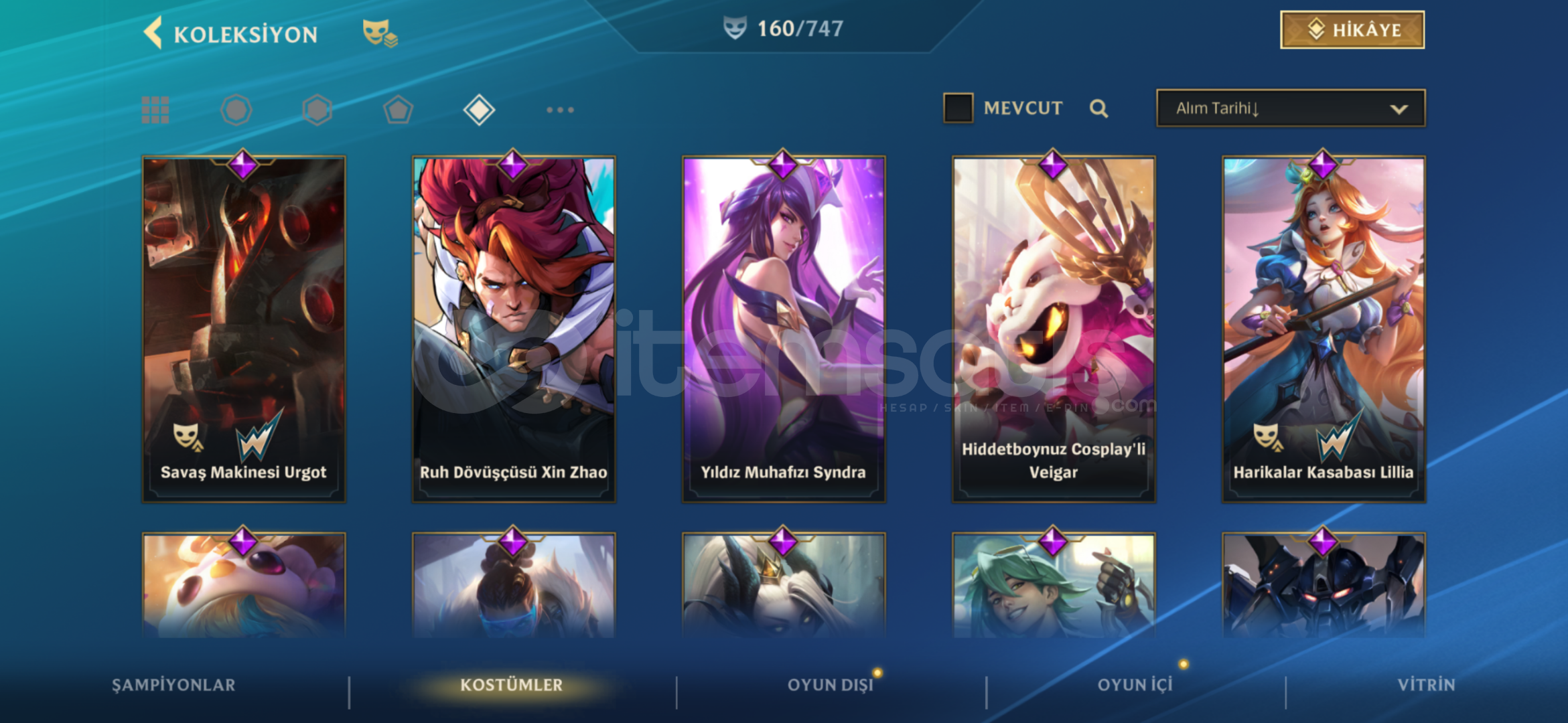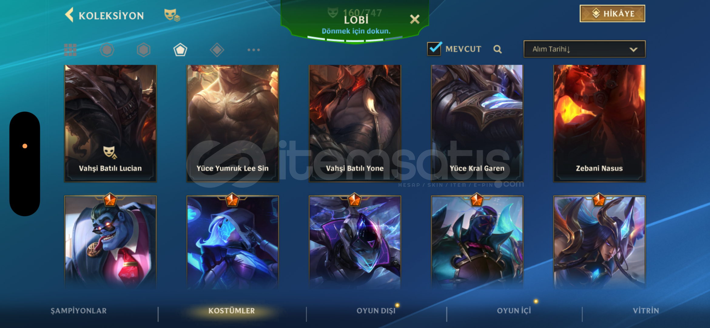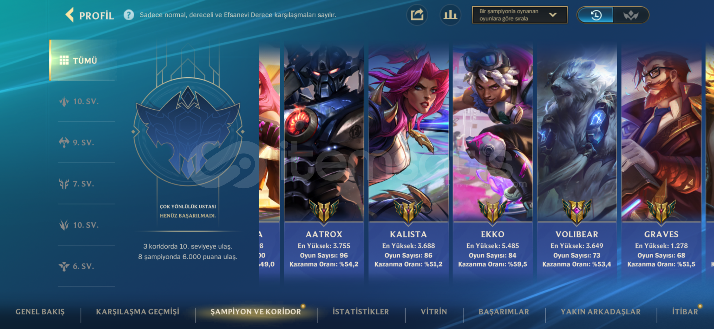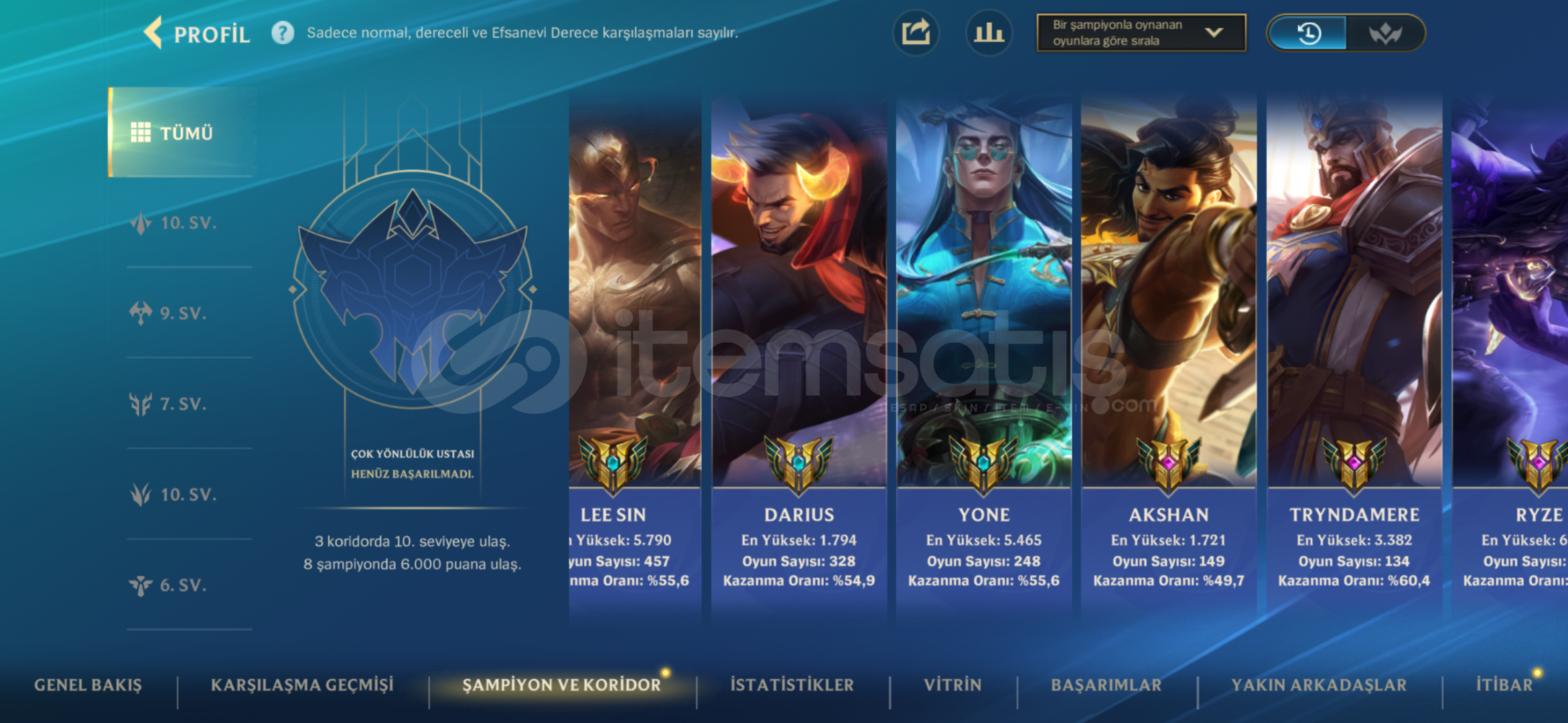 bütün şampiyonlar açık kostüm bol grandmaster elo güzel hesap yone bütün skinler açık