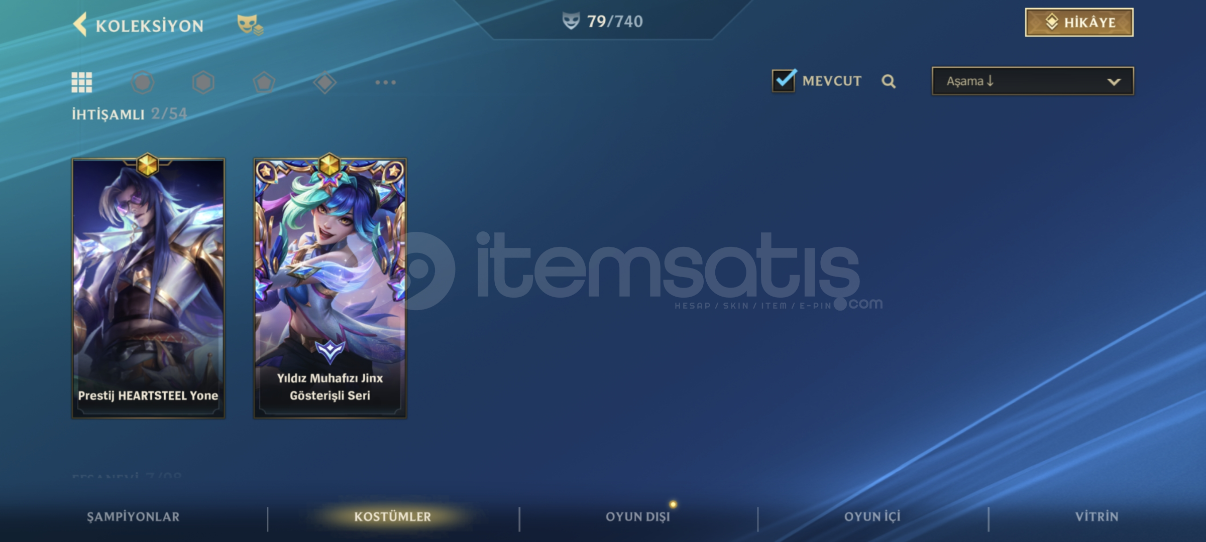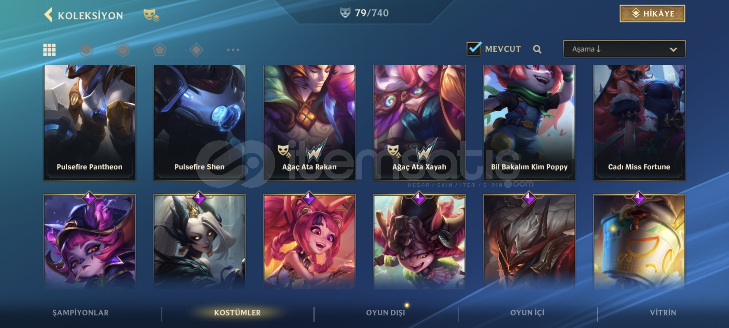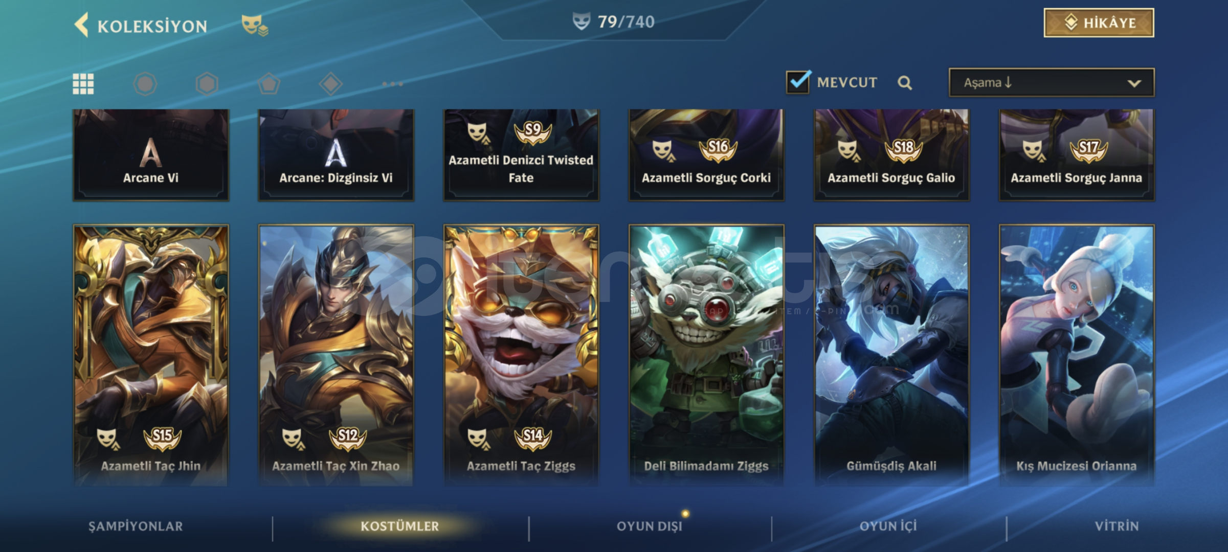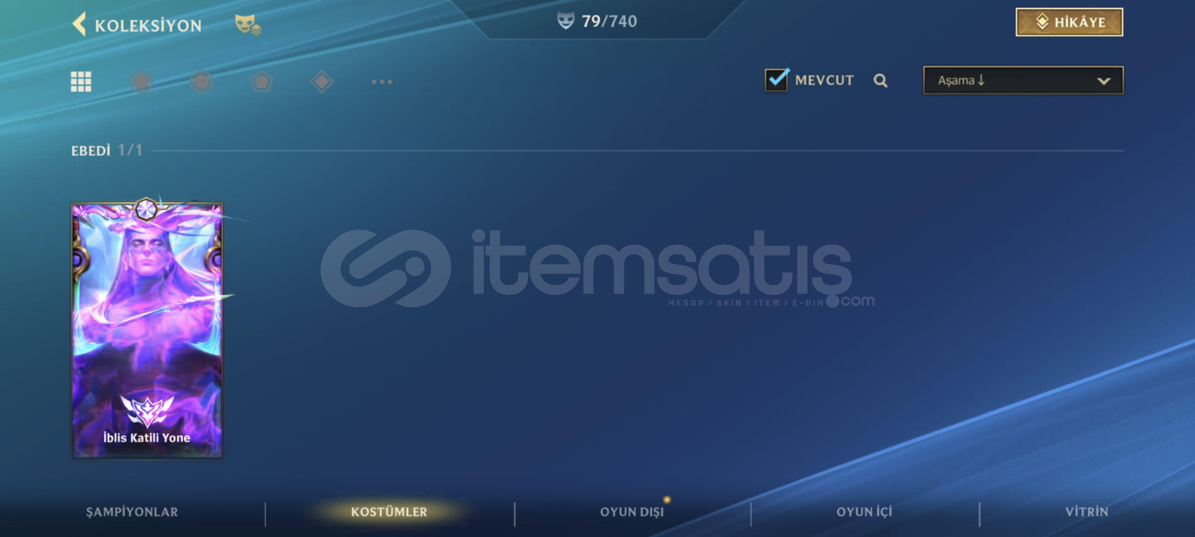 Hesapta anlık 79 kostüm vardır1 kez cha görmüştürAnlık 67 damgadırEn değerli skin iblis katili yonedirCiddi alıcılar yazabilir