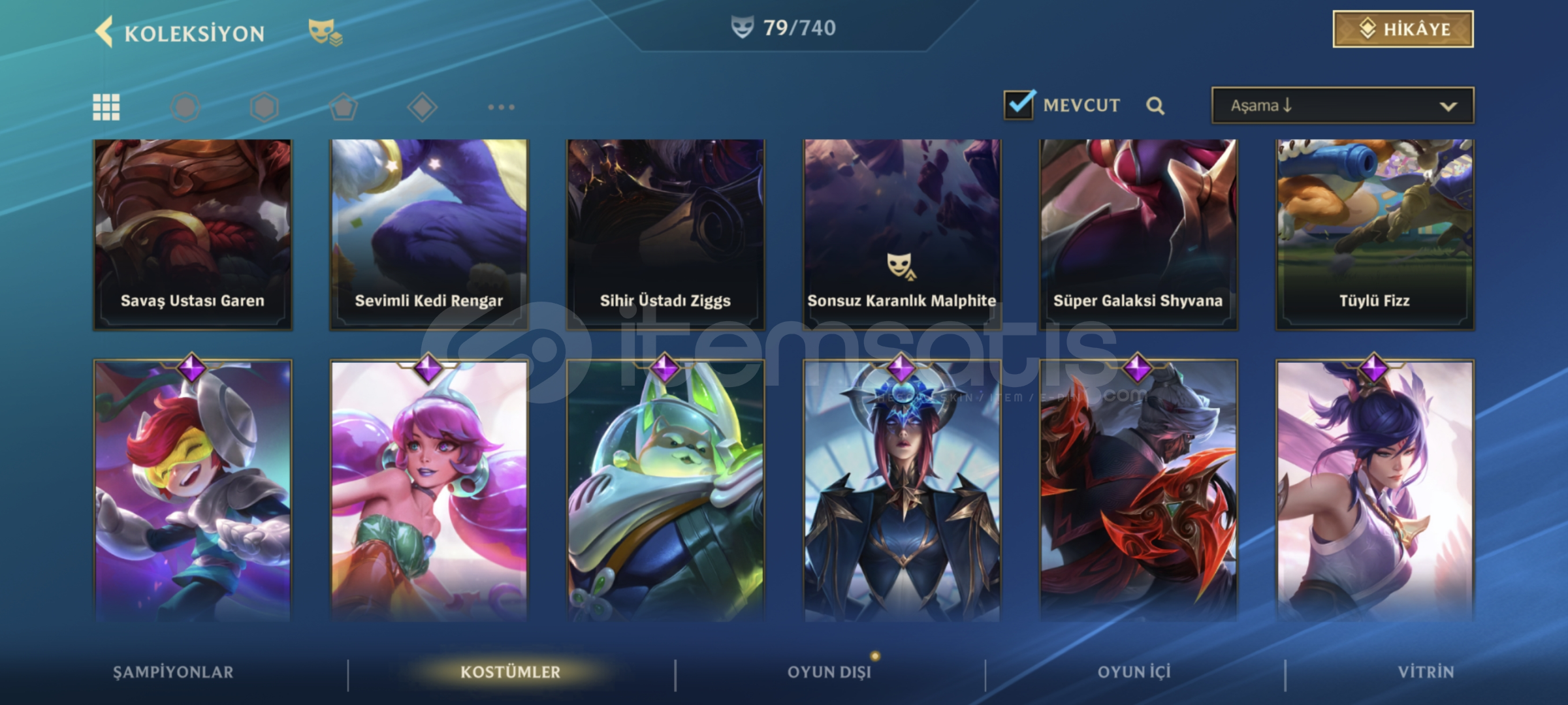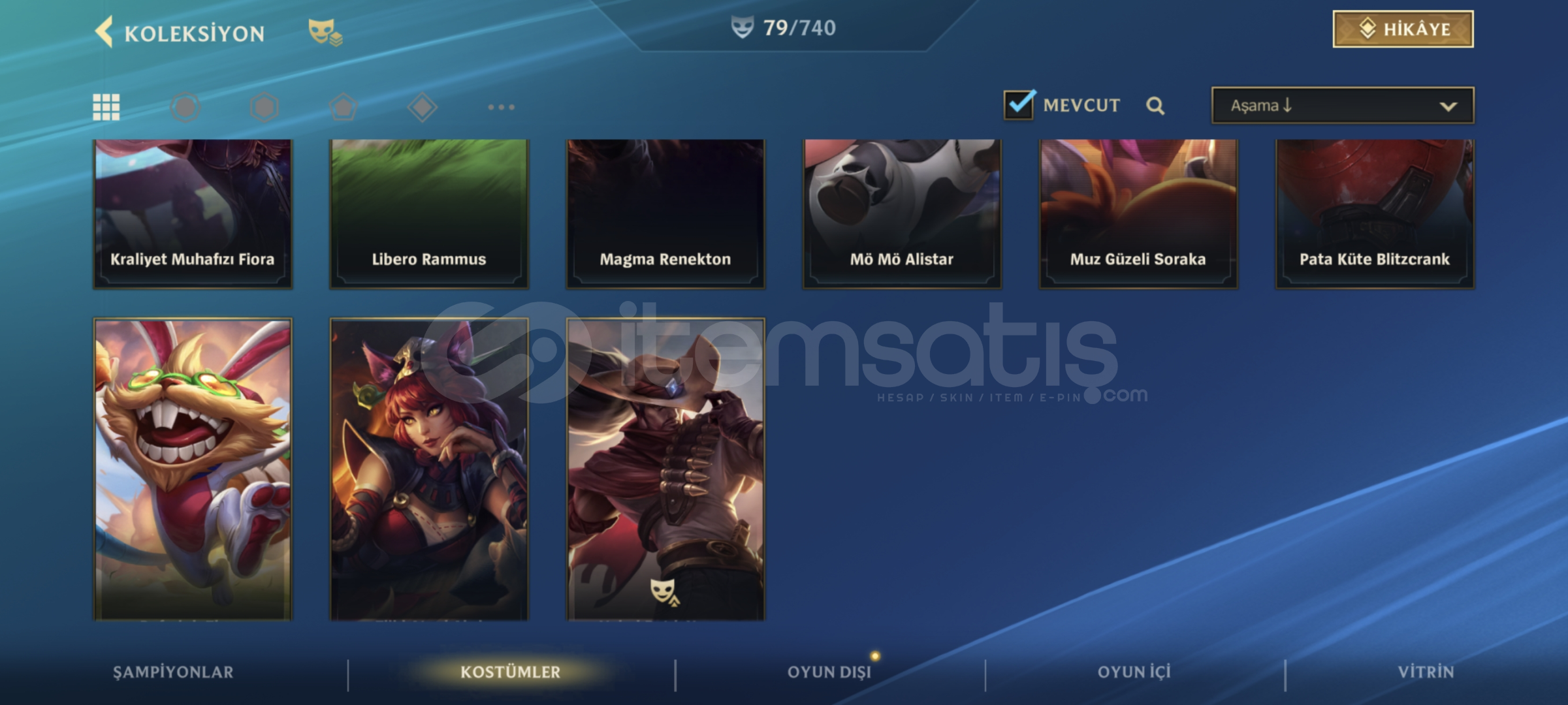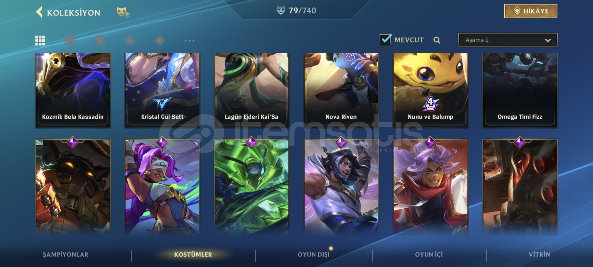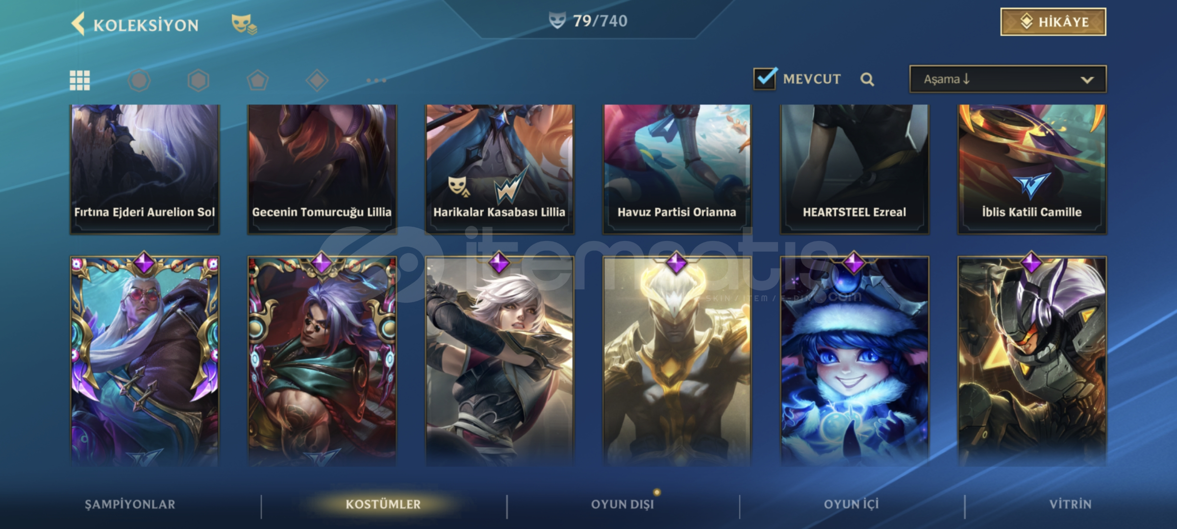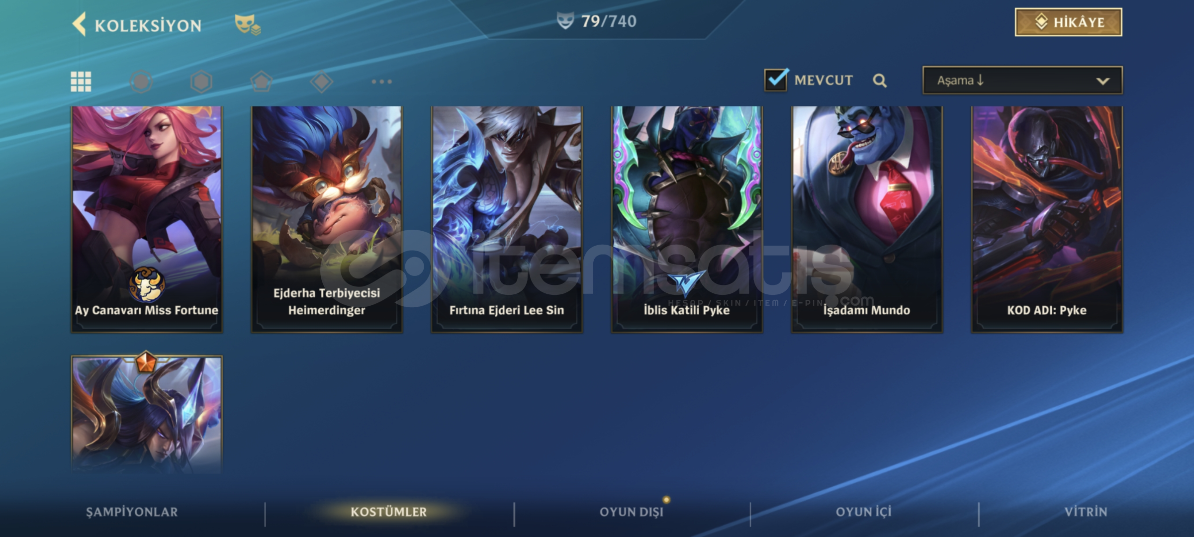 Hesapta anlık 79 kostüm vardır1 kez cha görmüştürAnlık 67 damgadırEn değerli skin iblis katili yonedirCiddi alıcılar yazabilir
