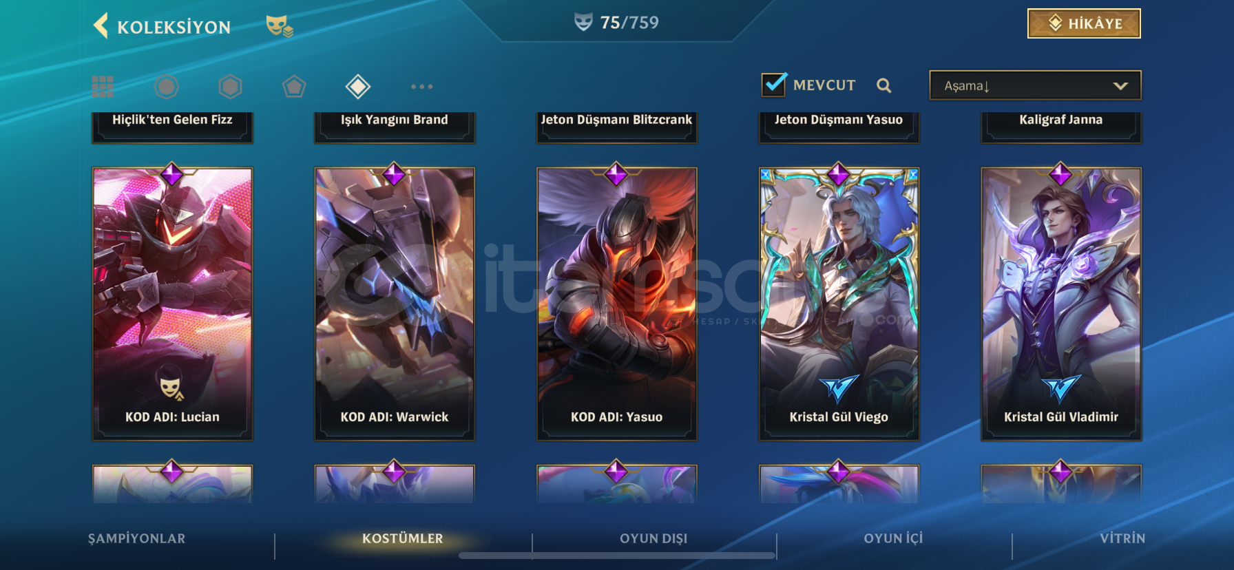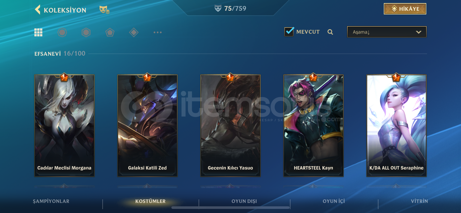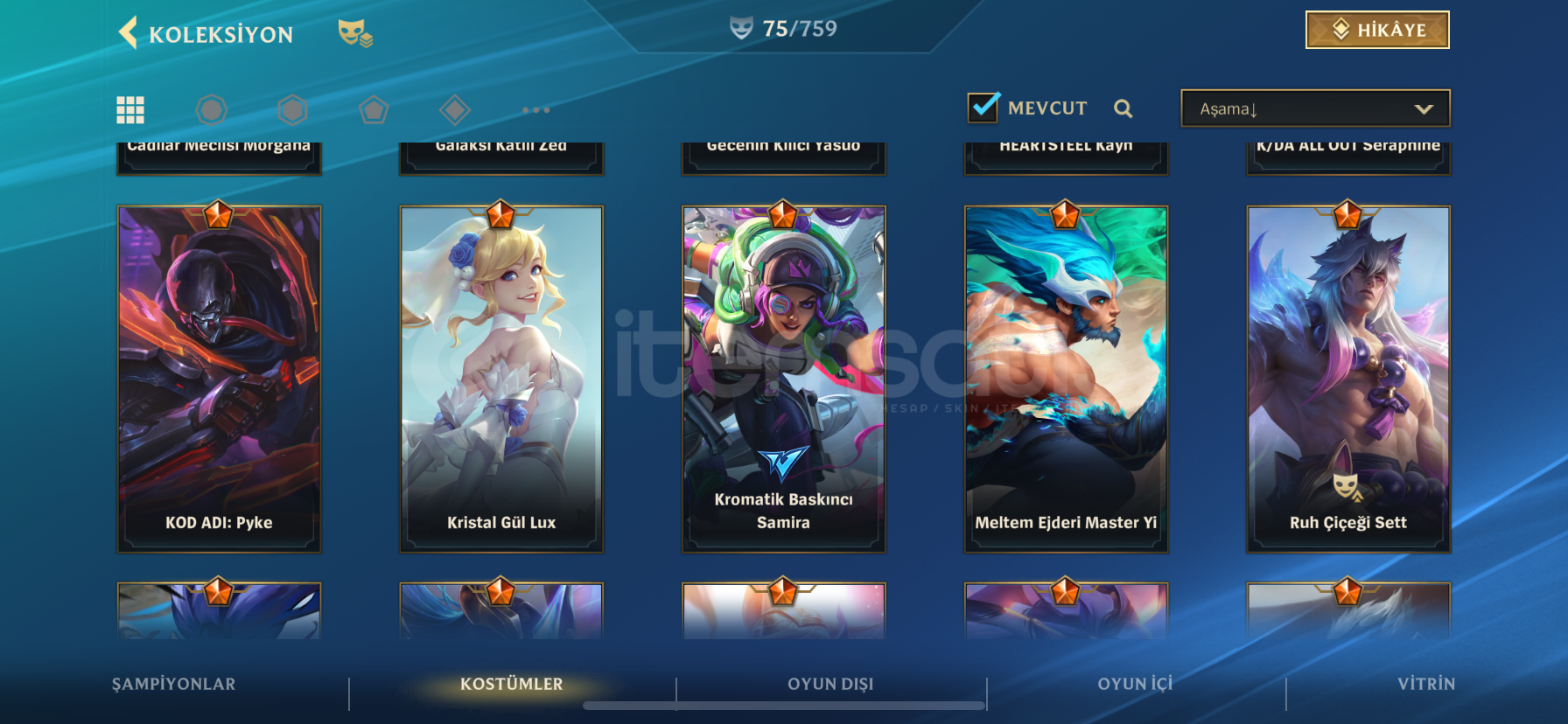 1 ihtişamlı16 efsanevi38 destansıruh çiçeği settgalaksi katili zedgecenin kılıcı yasuoheartsteel kaynyıldız muhafızı akalişafağın ruhu yoneruh dövüşçüsü yasuokod adı pykekristal gül lux kristal gül viego kristal gül vlad kristal gül yuumi kristal gül xayah kostümler mükemmel daha bir sürü vsr çoğu parayla direkt alı...