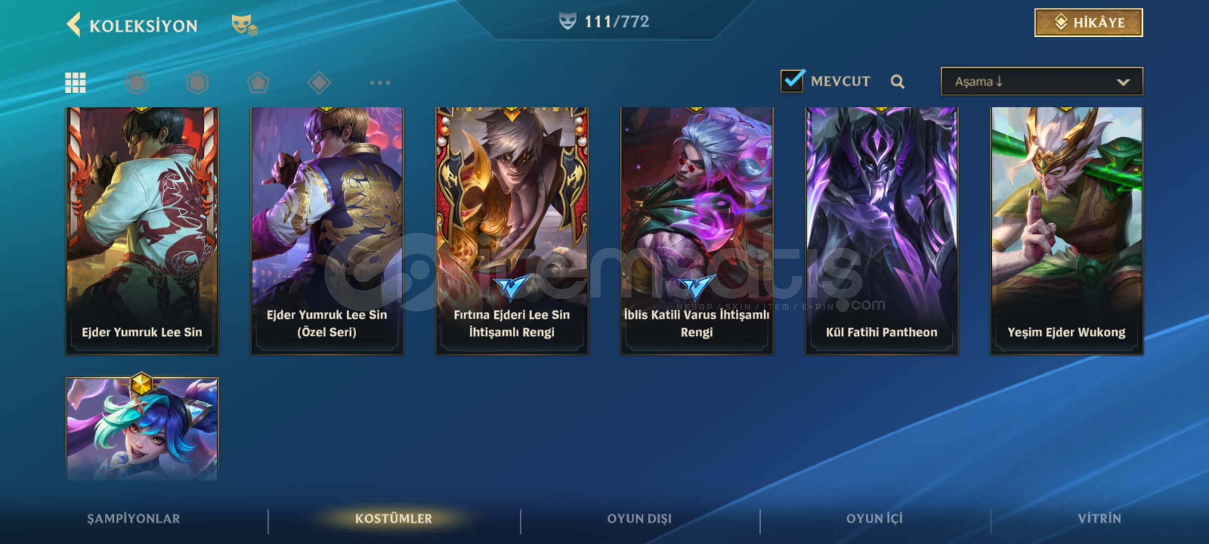 Sadece lee sine 25k para yatırdım pozları ve kostümlerin hepsi açık aynı sekil pant ta öyle köstüm ve pozları açıktır ihtiyaçtan satıyorumHesap güncel olarak master 3türPant rank 1 Lee rank 100 dür