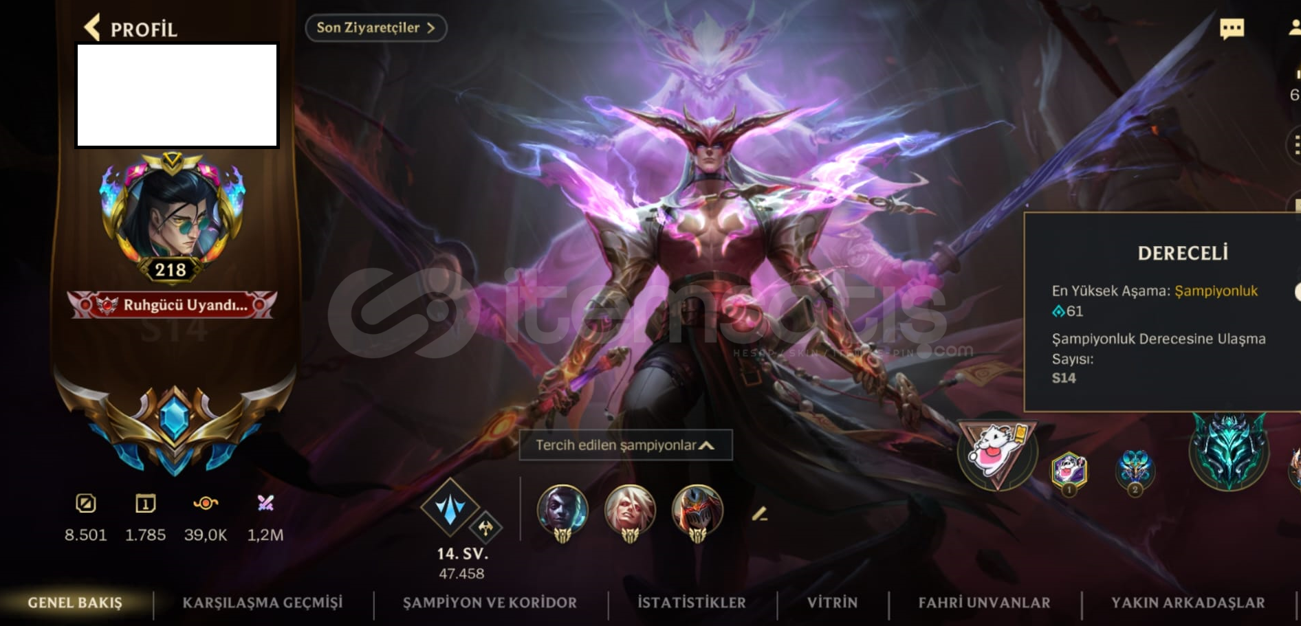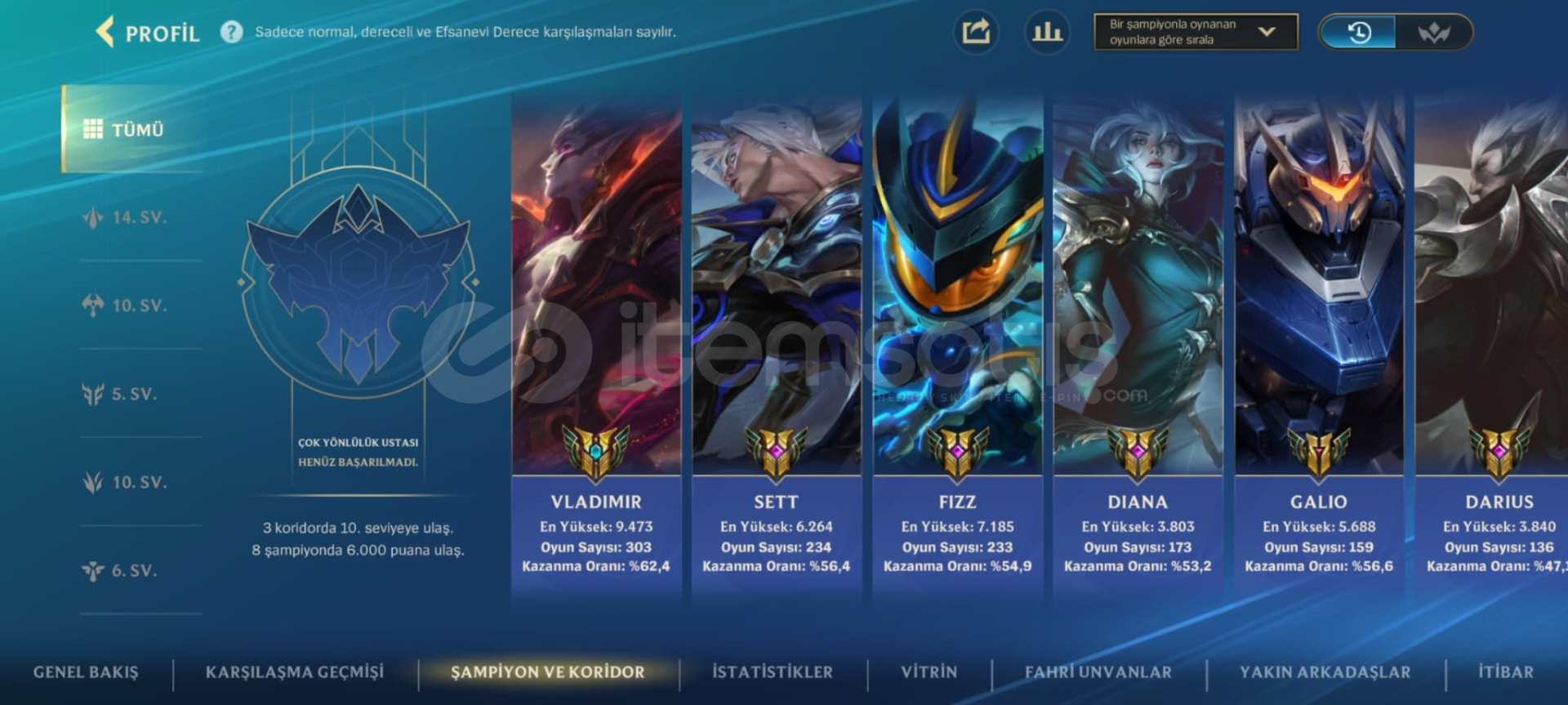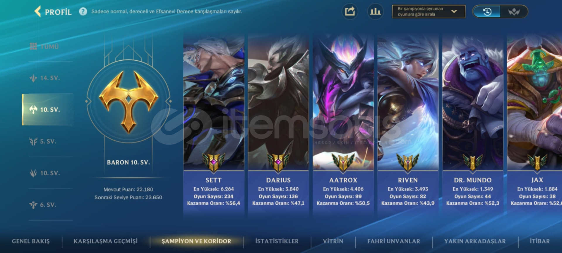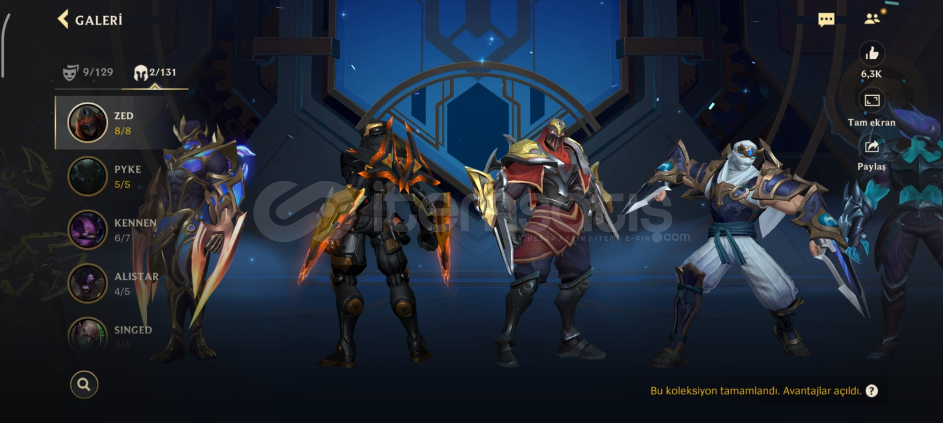 5 yıllık hesabımı satıyorum. içerisinde 208 adet kostüm vardır. bunların içerisinde;İBLİS KATİLİ YONE EBEDİKÜL ŞOVALYESİ PYKEKALİGRAF YASUOÜSTÜN BİRLİK: SETT, ZED(zed kostümleri full'dür)gibi koleksiyonluk kostümler mevcuttur. diğer kostümler; 27 LEGENDERY99 DESTANSIhesap şampiyonluk derecesini görmüş olup, çoğu sezonda da...