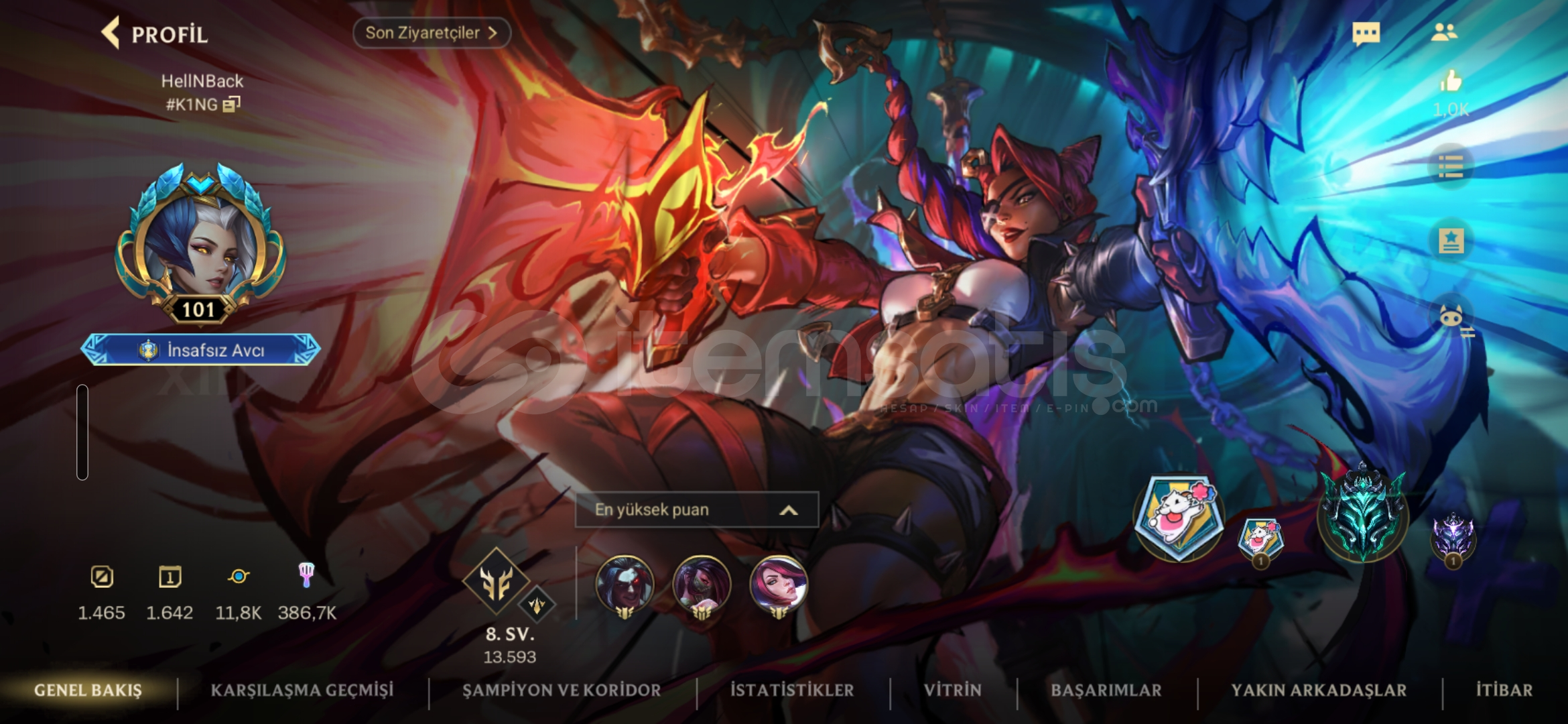 Adc main hesaptırZümrüt 2Toplam da hesaba 7 bin tl yatırılmıştır7 seviye vlad kostüm+çerçeve54 kostüm77 şampiyon açıktırHiç ban yememiş tertemiz hesap
