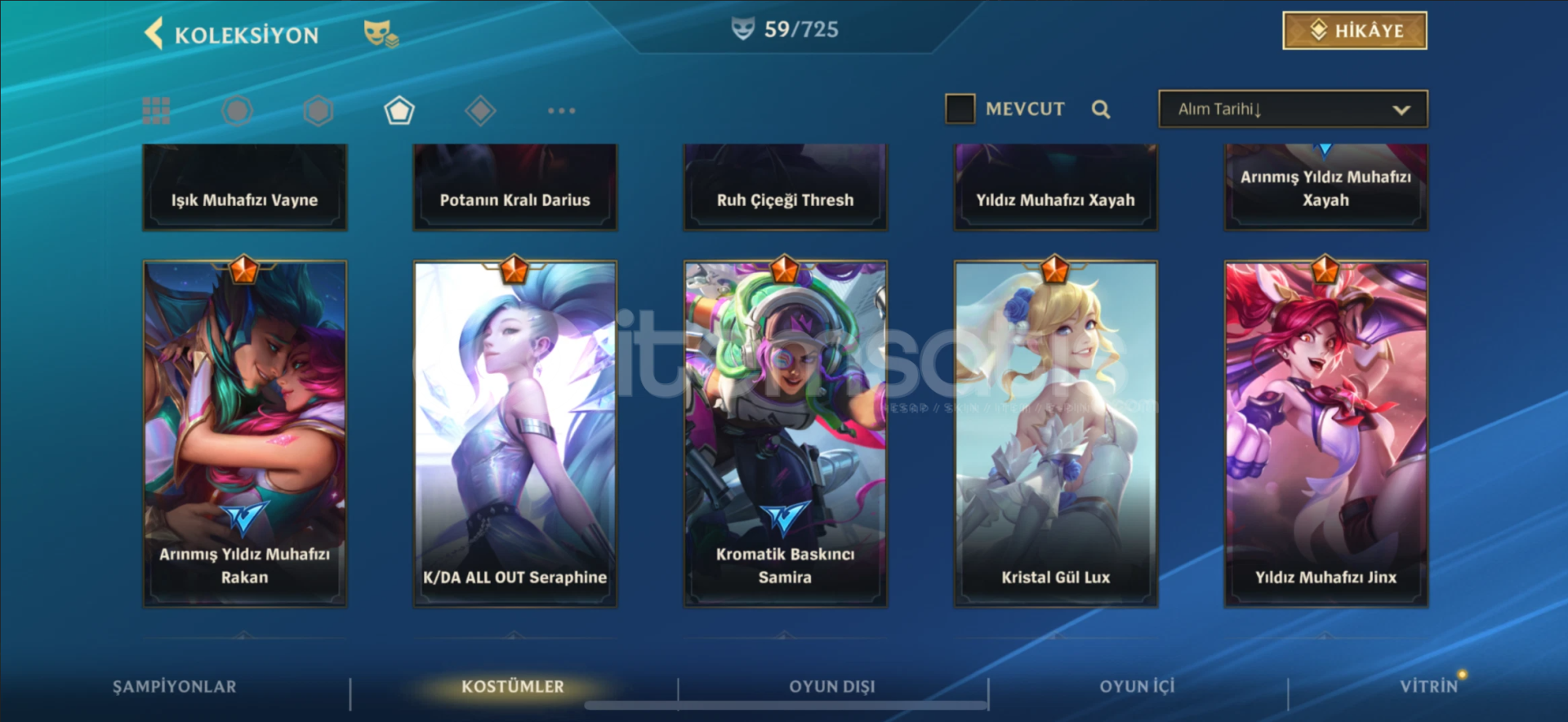 Toplamda 10.000tl üzerinde harçama yapılmıştır.Bu fiyattan ucuzunum bulamazsınız 1 İhtişamlı kostüm bile daha pahalı8 İhtişamlı Kostüm mevcuttur Toplam 61 kostüm.EK OLARAK İHTİŞAMLI VARUS KOSTÜMÜ DE ALINMIŞTIR TOPLAMJ 8 İHTİŞAMLI KOSTÜM VAR2.353 GÜMÜŞ YILDIZ TOZU31.000 MAVİ ÖZ BULUNMAKTADIR.------Hesabı geçen sezon (S17...