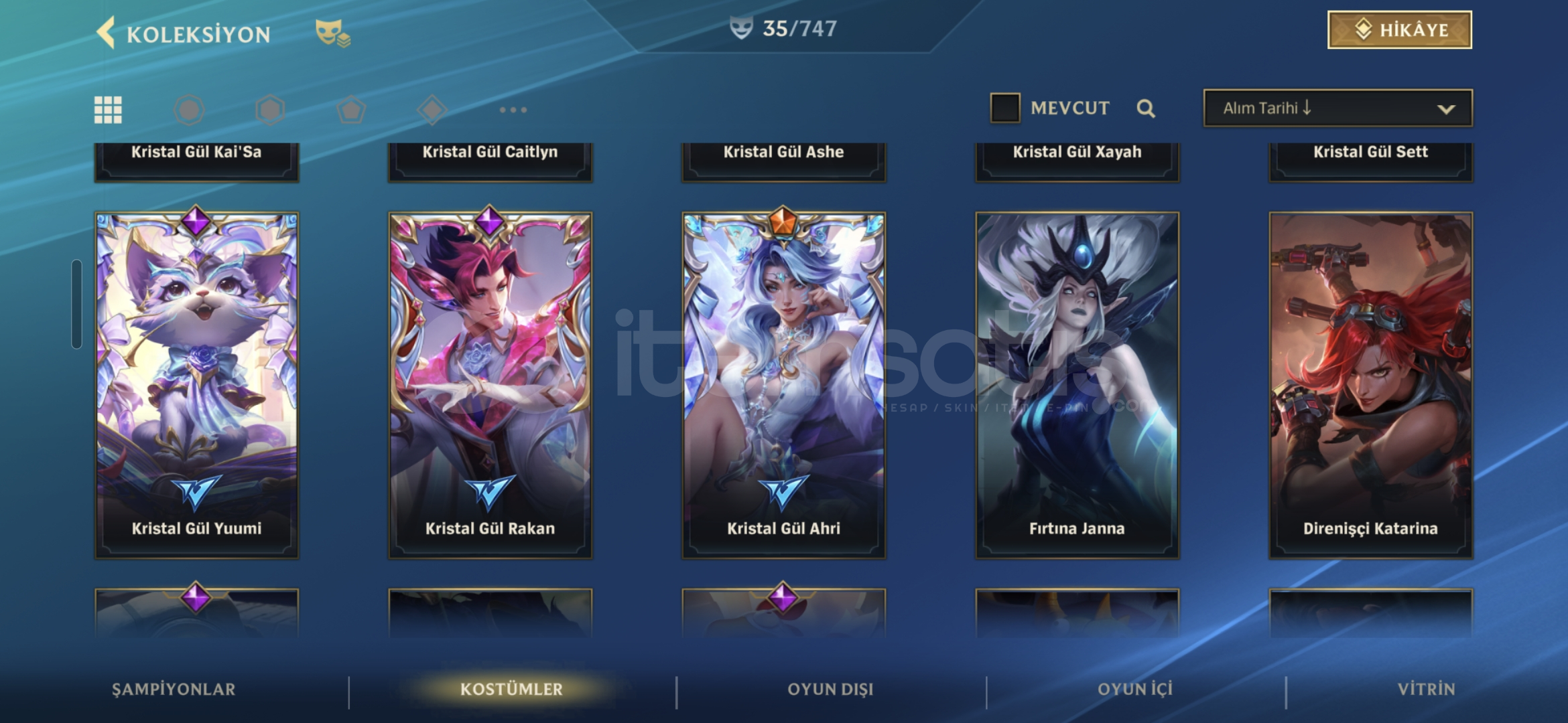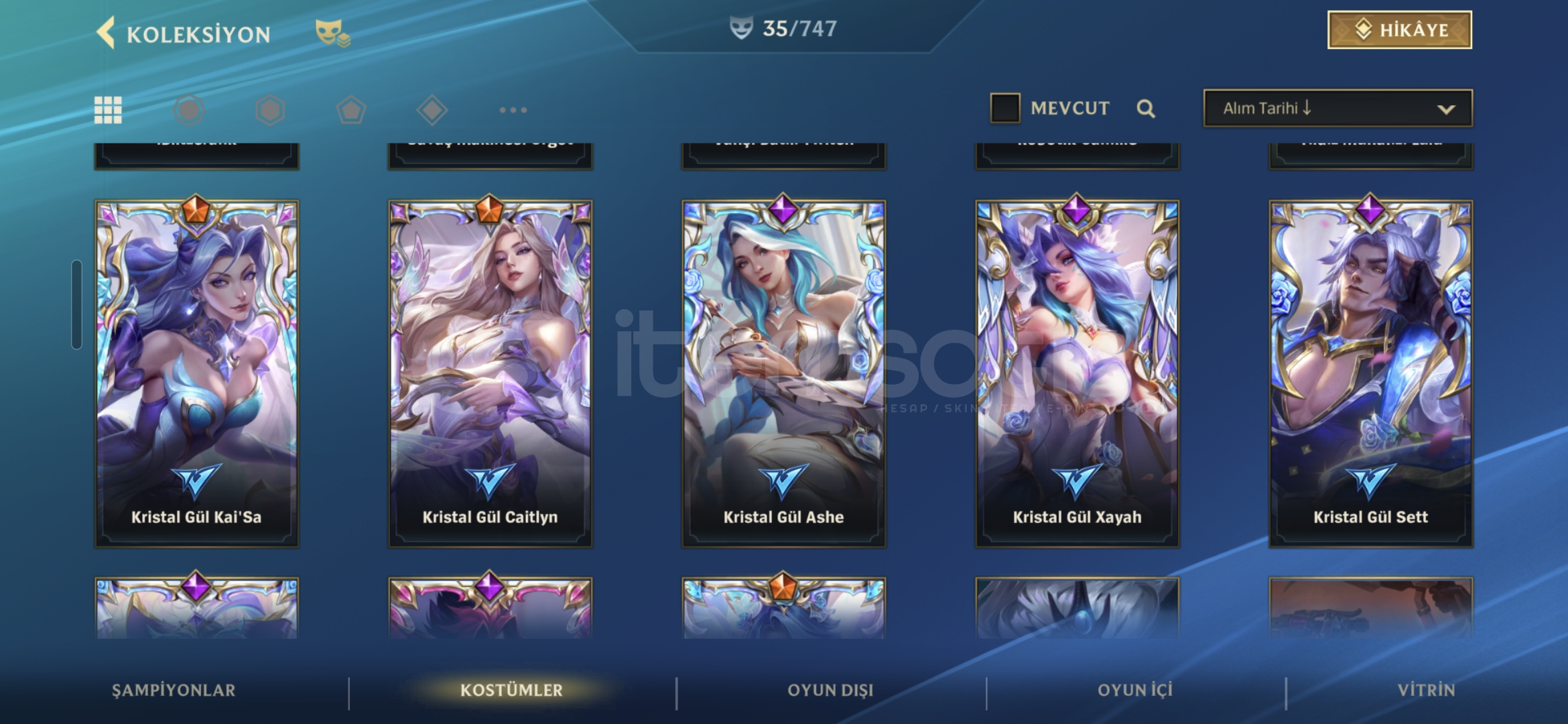 Kristal gül kostümleri olan hesabım satılıktırRiot hesabı ile verilecektir