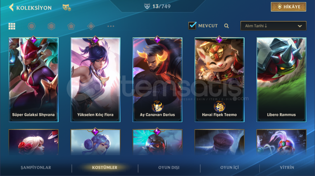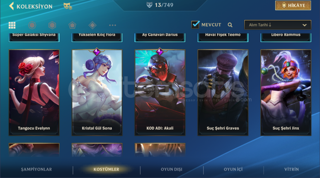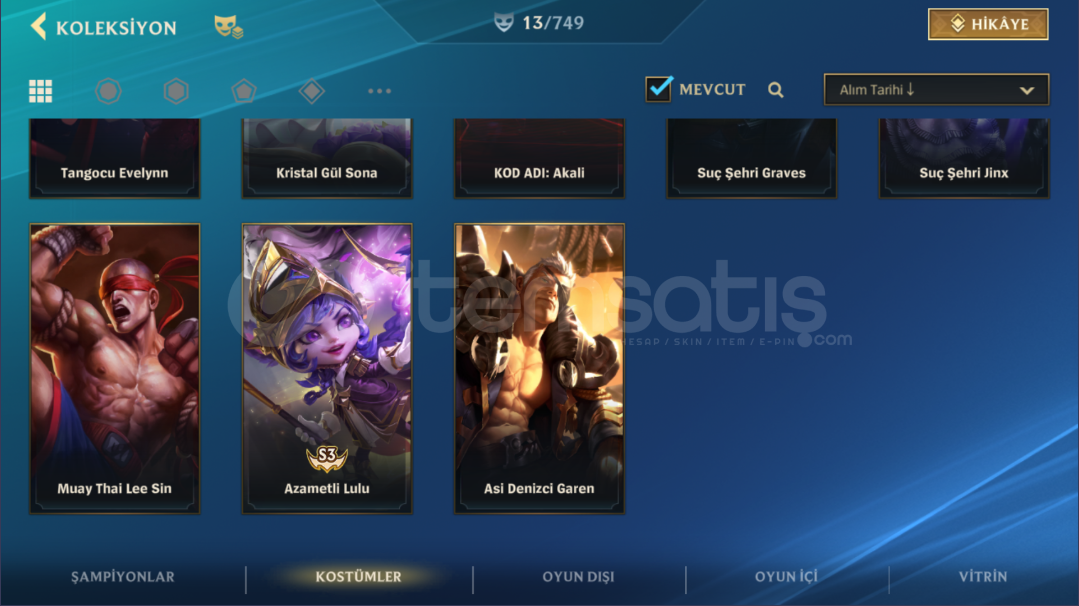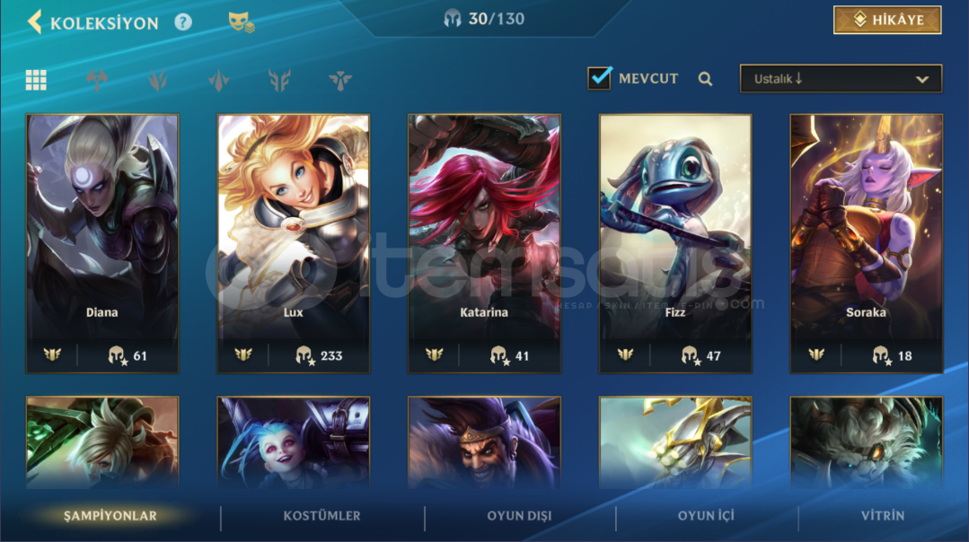 33 levelZümrüt Düşmesi Altın3517 poro enerji2x Şampiyon Sandığı30 Şampiyon 13 Kostüm13k mavi öz12k dereceli mağza puanıEposta Şifre Değiştirebilirsiniz